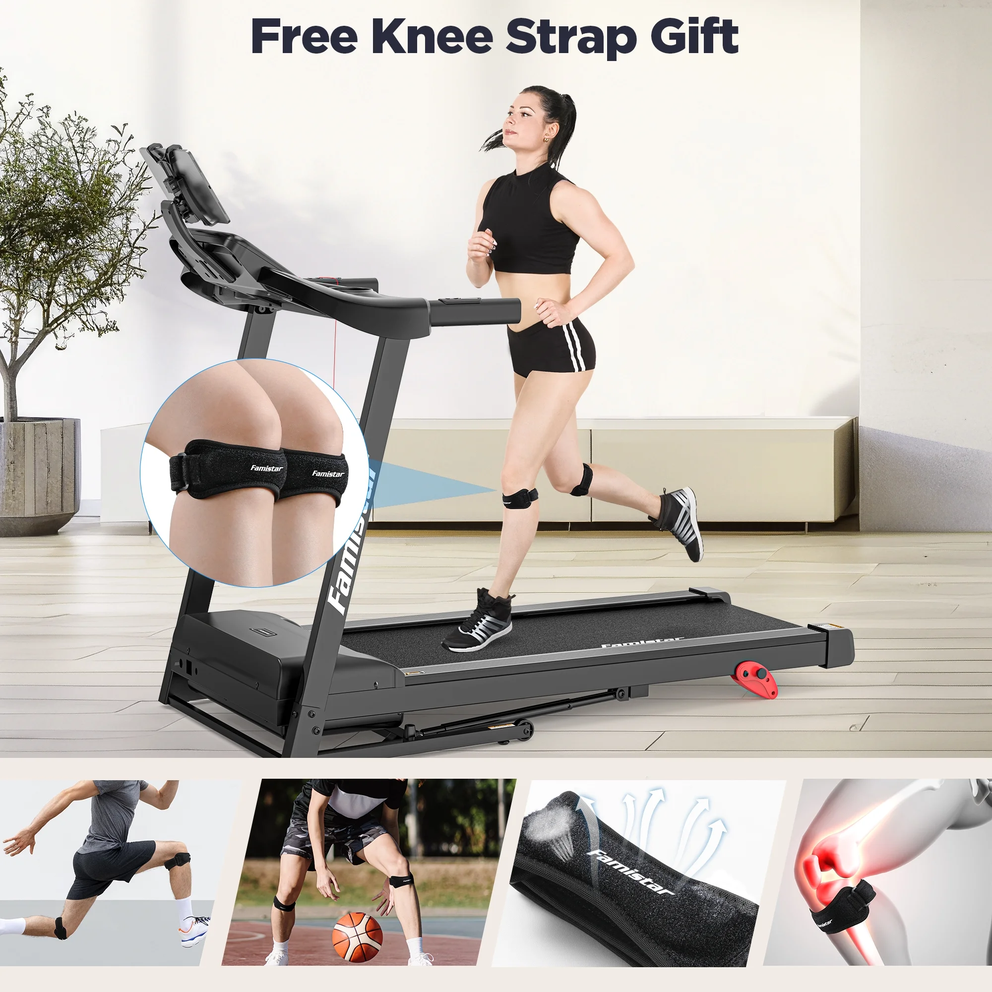 - 🚀 Adaptable to Your Needs: Equipped with a sturdy rack and a 3.5HP brushless large torque motor, this treadmill easily supports up to 330lb, ensuring quiet, smooth, and durable operation. It features three levels of incline and adjustable speeds ranging from 0.6 to 7.5MPH, making it ideal for running, jogging, interval training, and brisk walking safely and conveniently.🏋️♂️ Intelligent Design: The APP allows you to control the treadmill and track exercise data, offering primary, intermediate, and advanced multi-scene virtual sports courses that simulate outdoor environments for an immersive workout experience. With one-click exercise data tracking, you can plan your workouts reasonably and scientifically.🎶 Joint-Friendly Cushioning: Featuring a 5-layer composite buffer running belt and 6 shock-absorbing air cushion decks with rear roller buffers, this treadmill effectively absorbs leg impact to prevent joint damage. Compared to hard cement surfaces, it reduces fatigue, allowing for longer exercise sessions.🛋️ Comprehensive Workout: The multi-functional LCD provides clear data visibility, allowing for direct monitoring. With 64 built-in presets, users can range from beginners to high-intensity workouts. 3 distinct user modes and 3 countdown modes cater to different exercise needs. The treadmill also supports body fat measurement and pause memory, eliminating the need for tedious resets during short interruptions.🛠️ Enhanced Convenience and Safety: This treadmill integrates various features, including high-fidelity Bluetooth speakers, USB charging, and a 360° adjustable device holder for a seamless blend of exercise and entertainment. Multi-functional handrail buttons and a real-time heart rate sensor ensure comprehensive control and safety during high-intensity workouts. Additionally, the foldable automatic tilt treadmill includes a safety key for immediate shutdown in emergencies.