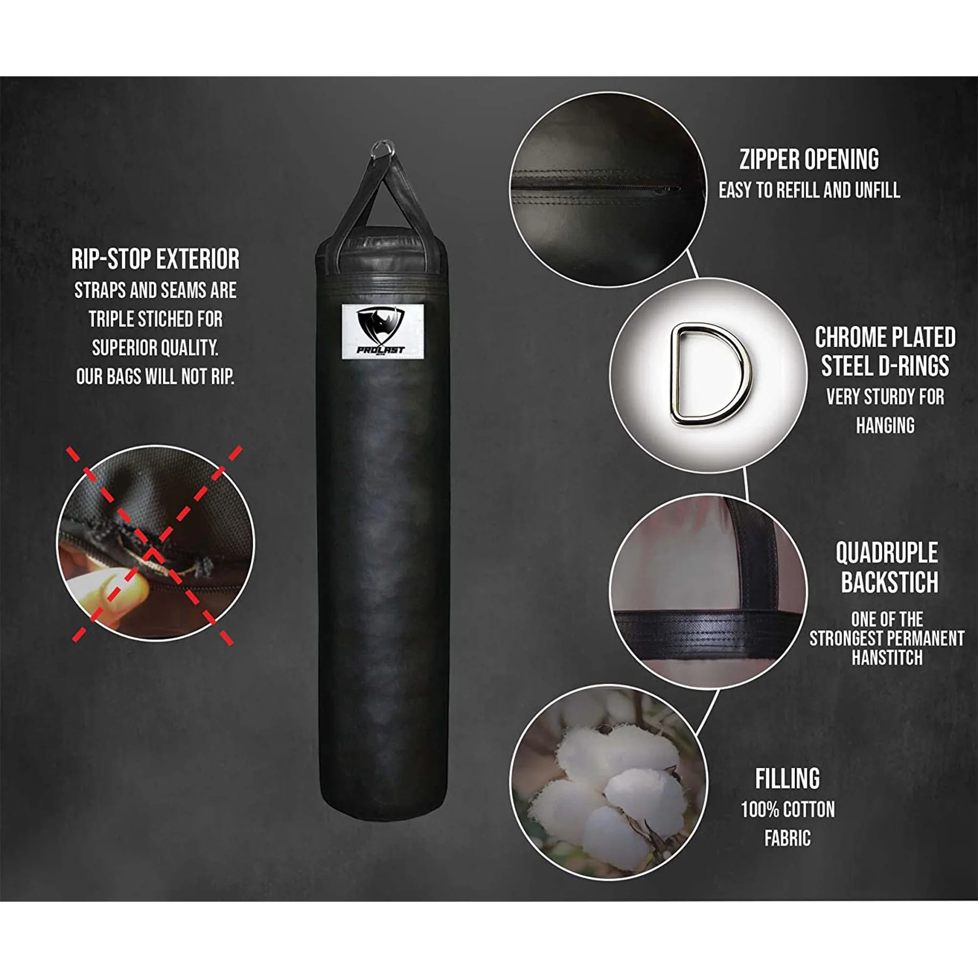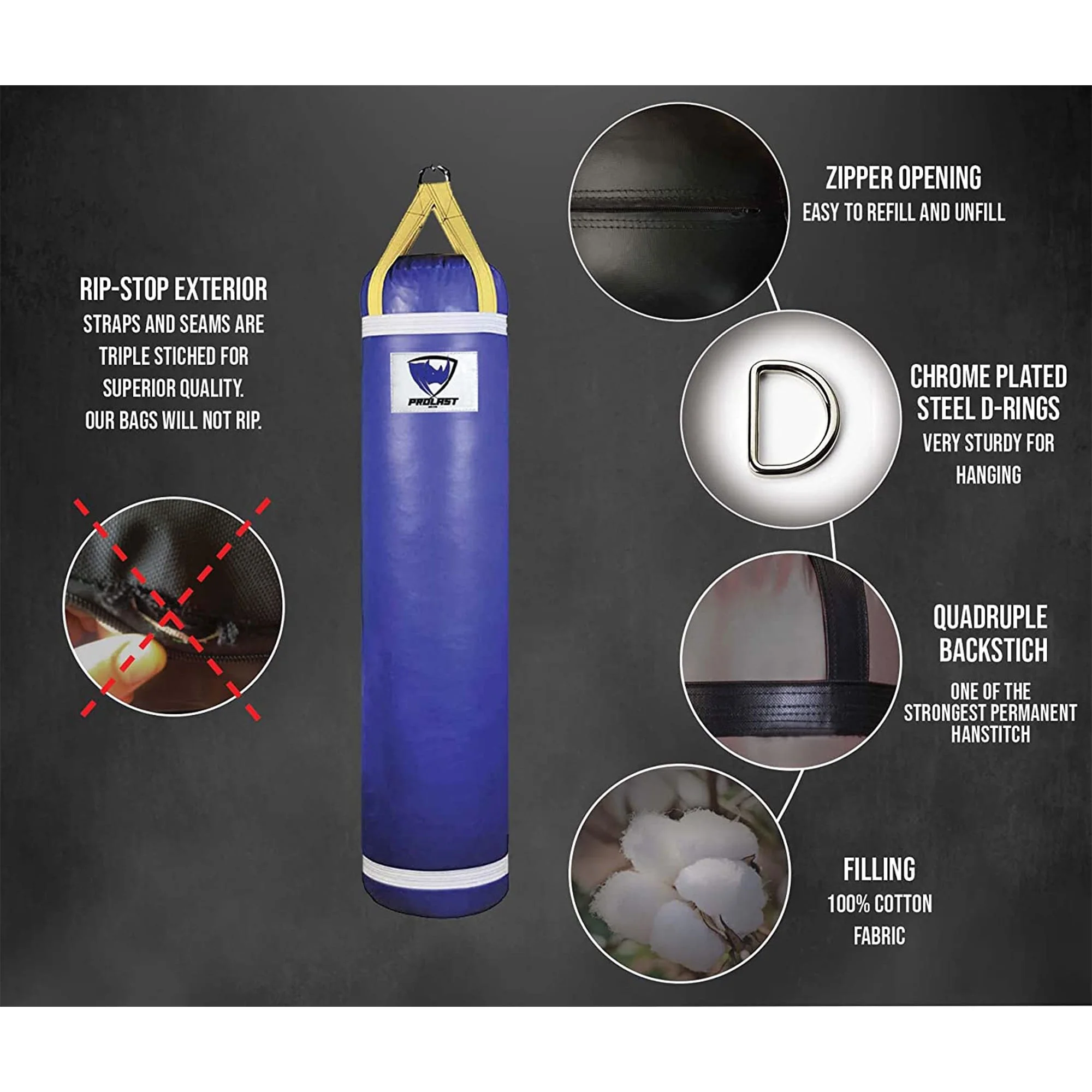 - Heavy-duty weatherproof punching bag with a triple backstitched reinforced exterior that can handle a beating at home or the gym