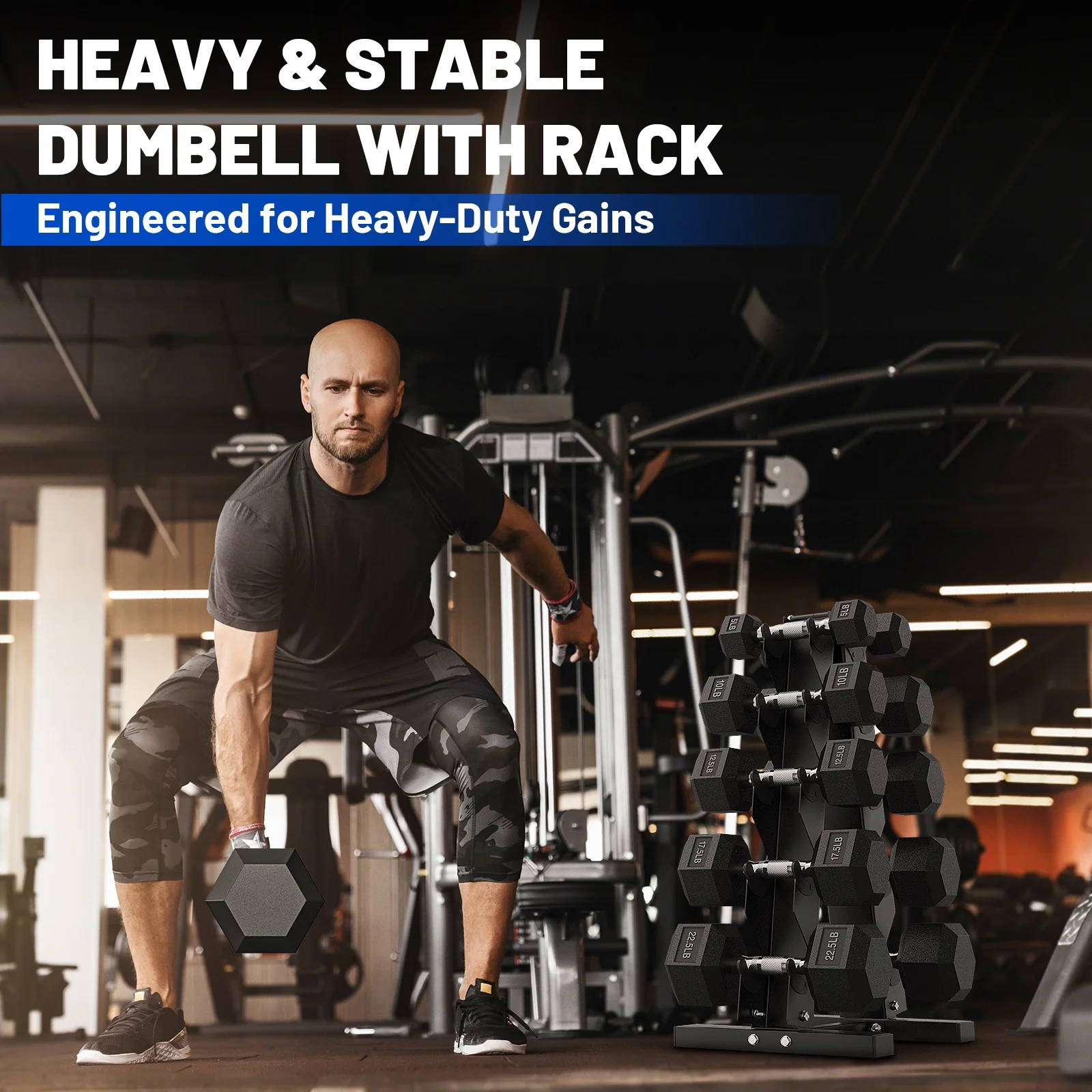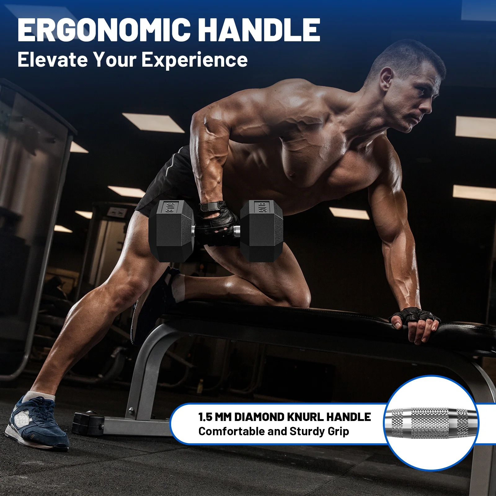 - Stable Hex Shape & Anti-Roll Design: Hexagonal heads prevent rolling during exercise for added safety and allow compact storage to save space.