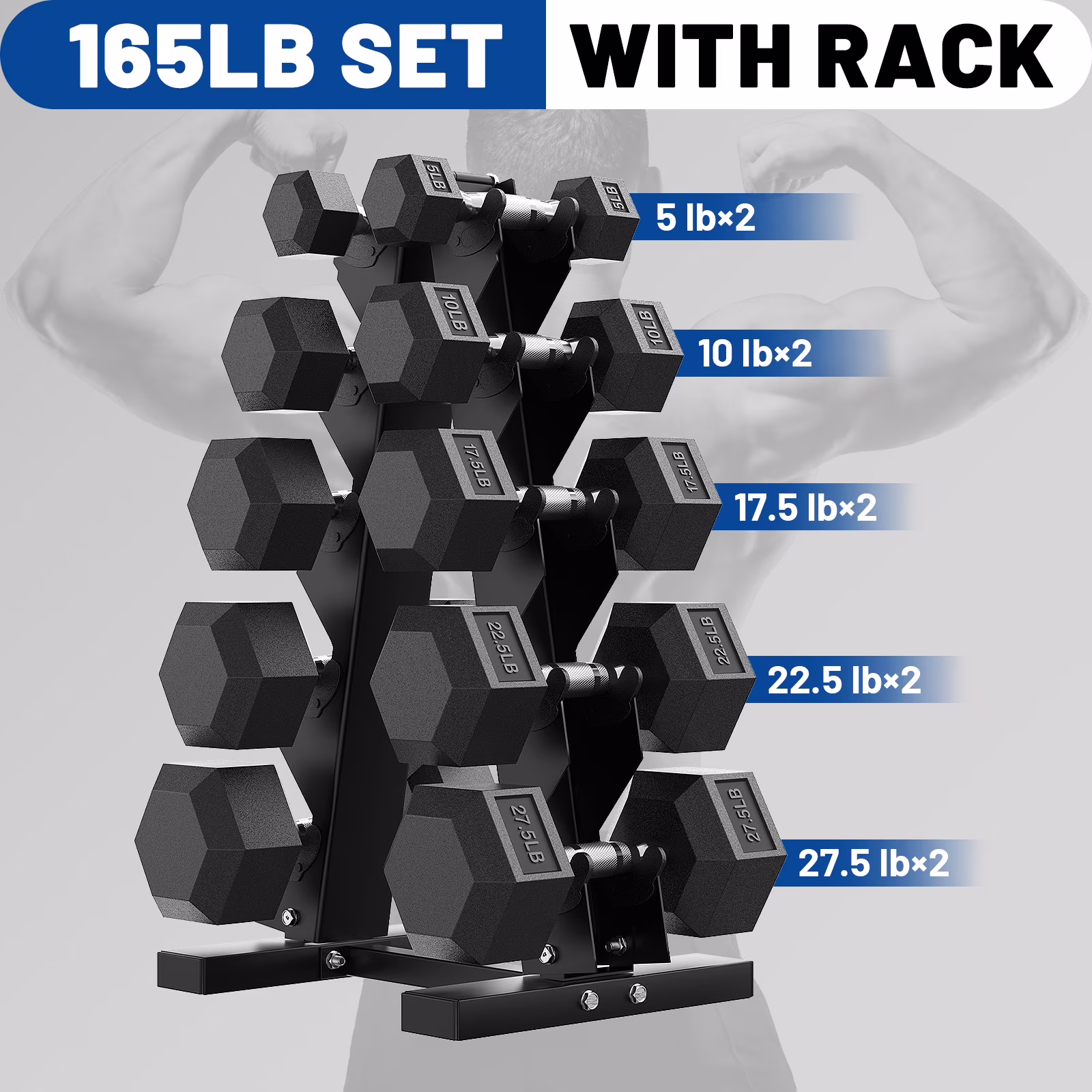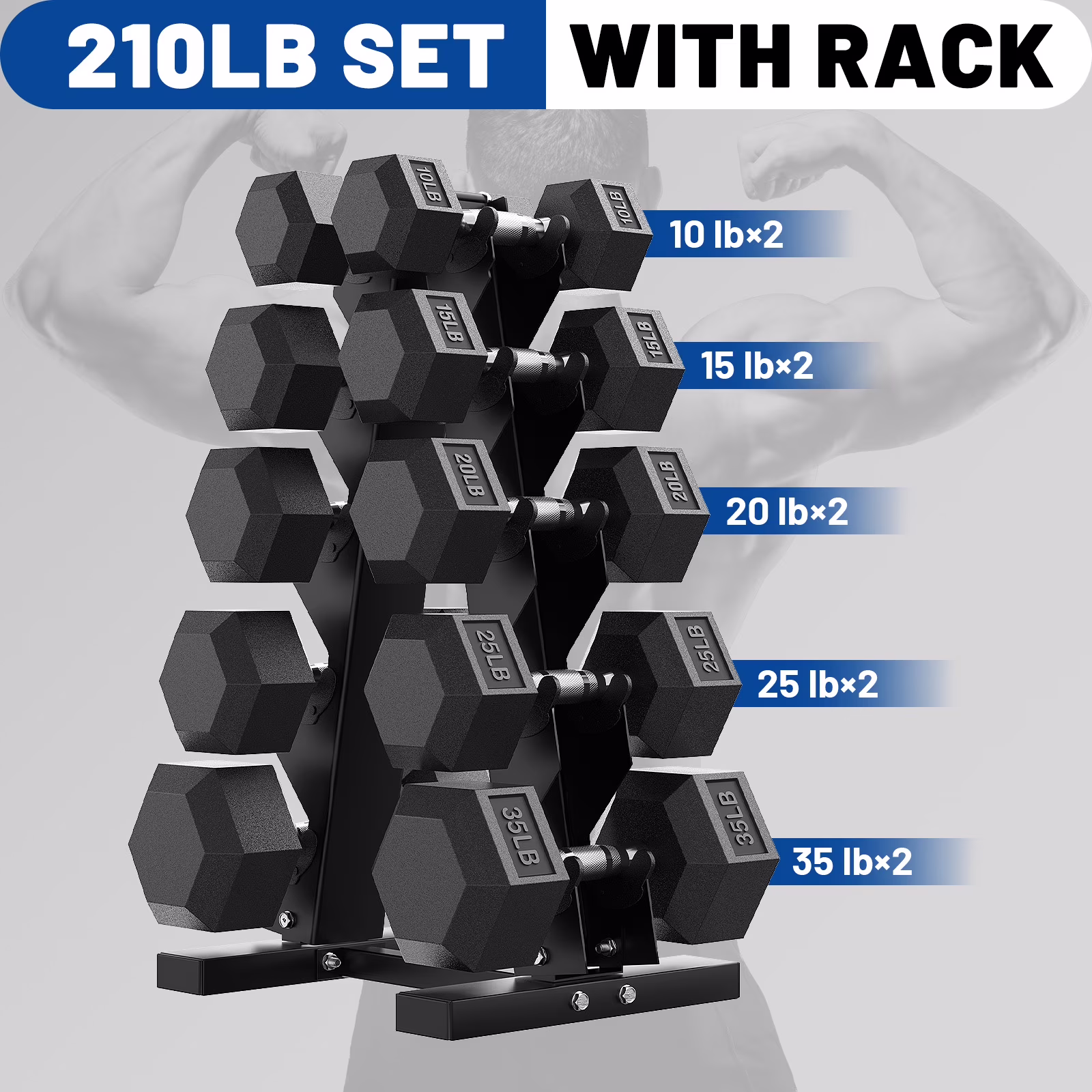 - Complete Weight Set with Storage Rack: Includes 5 matching pairs (5/10/15/20/25 lb) of hex dumbbells and a sturdy weight rack for organized storage and easy access.