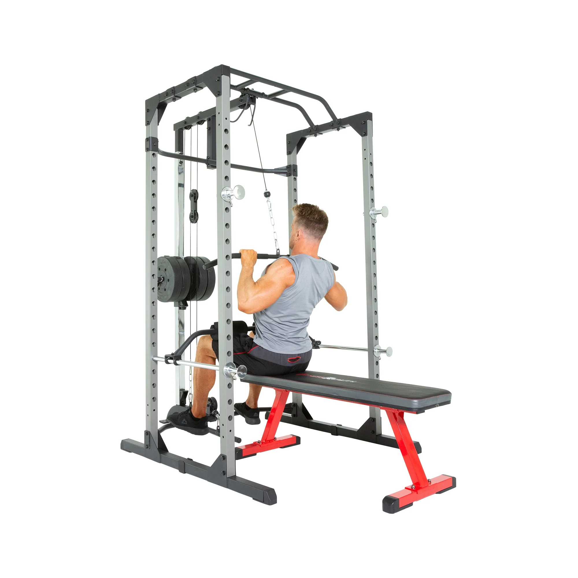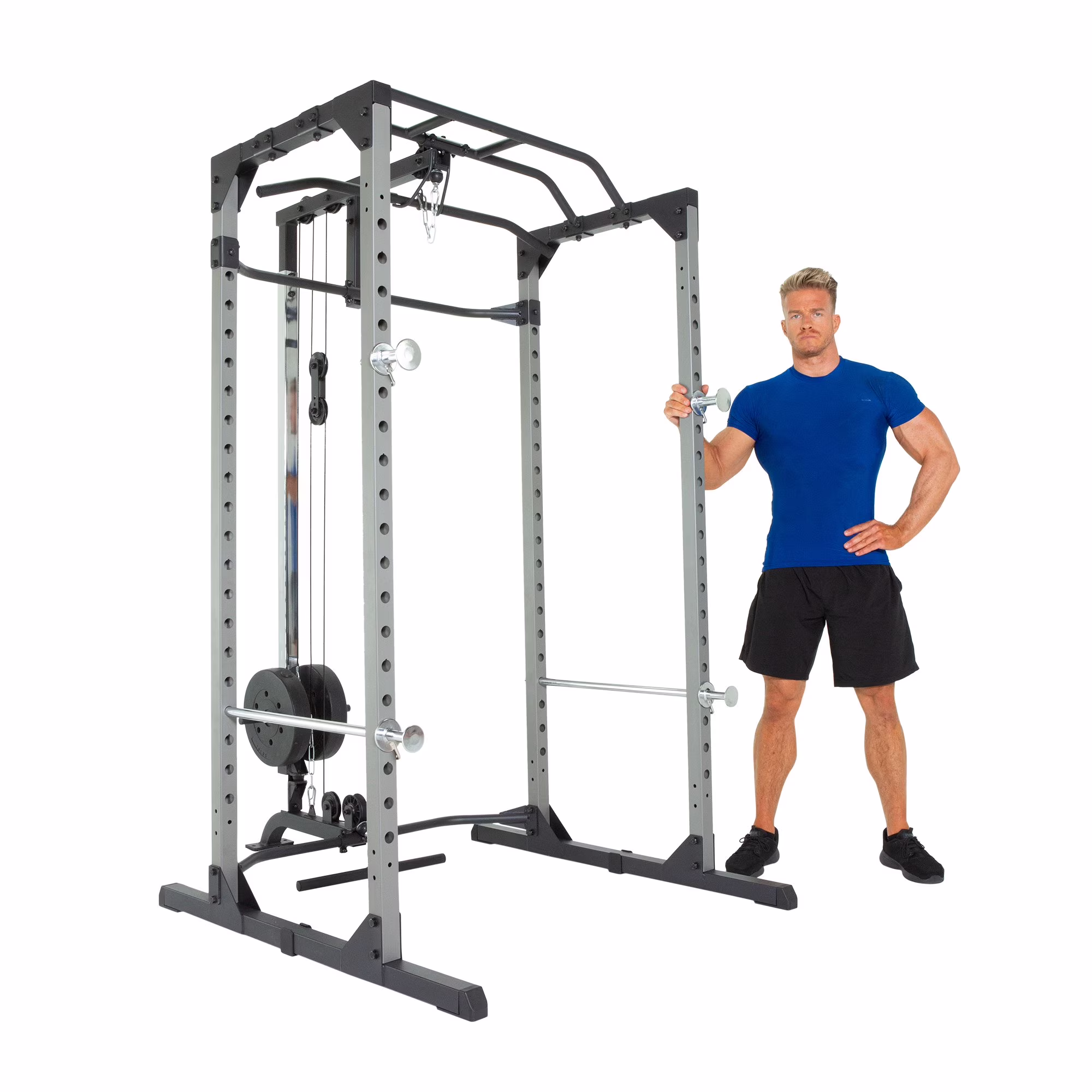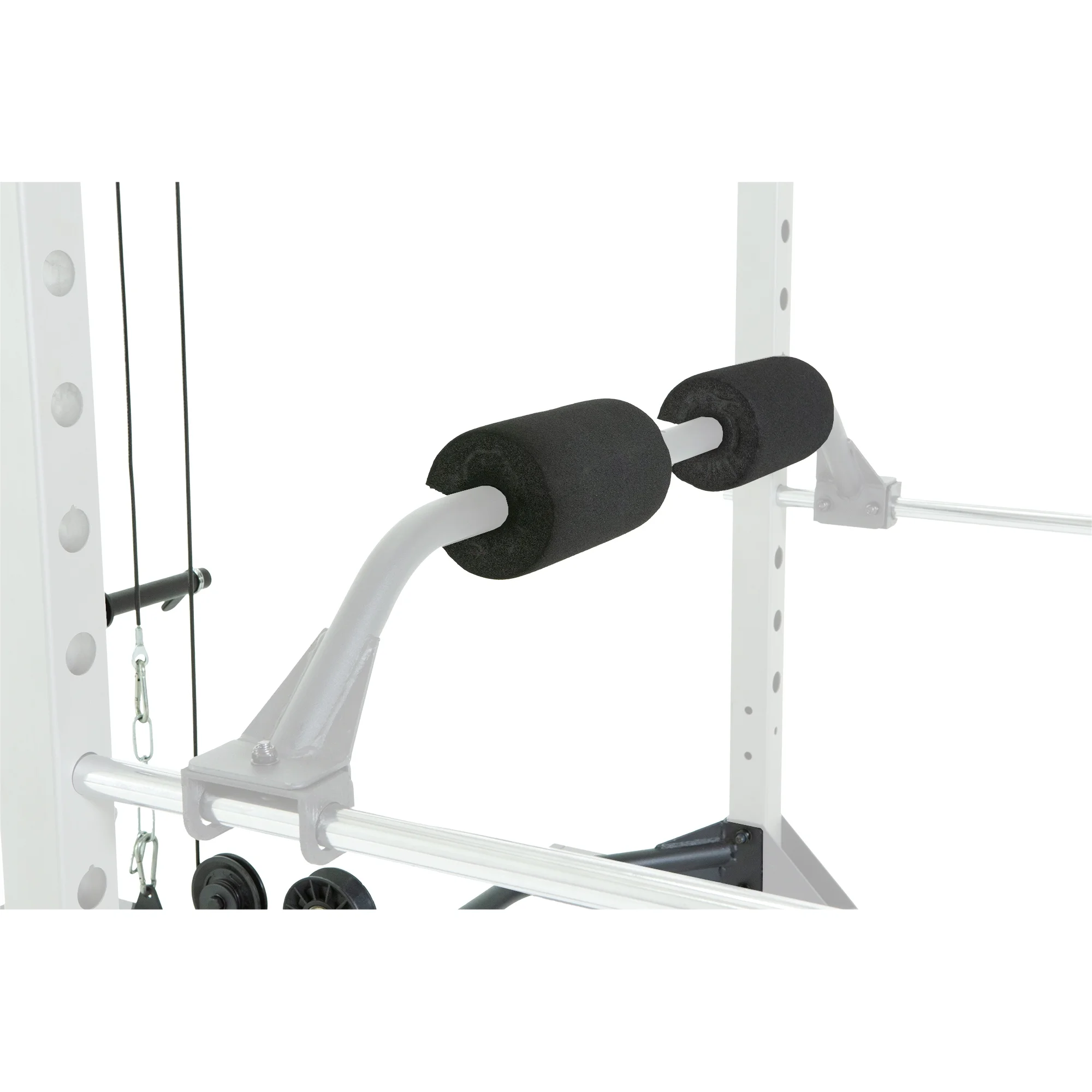 - Extended lower rear crossbar provides extra space for fitting in benches and footrests for seated row exercises