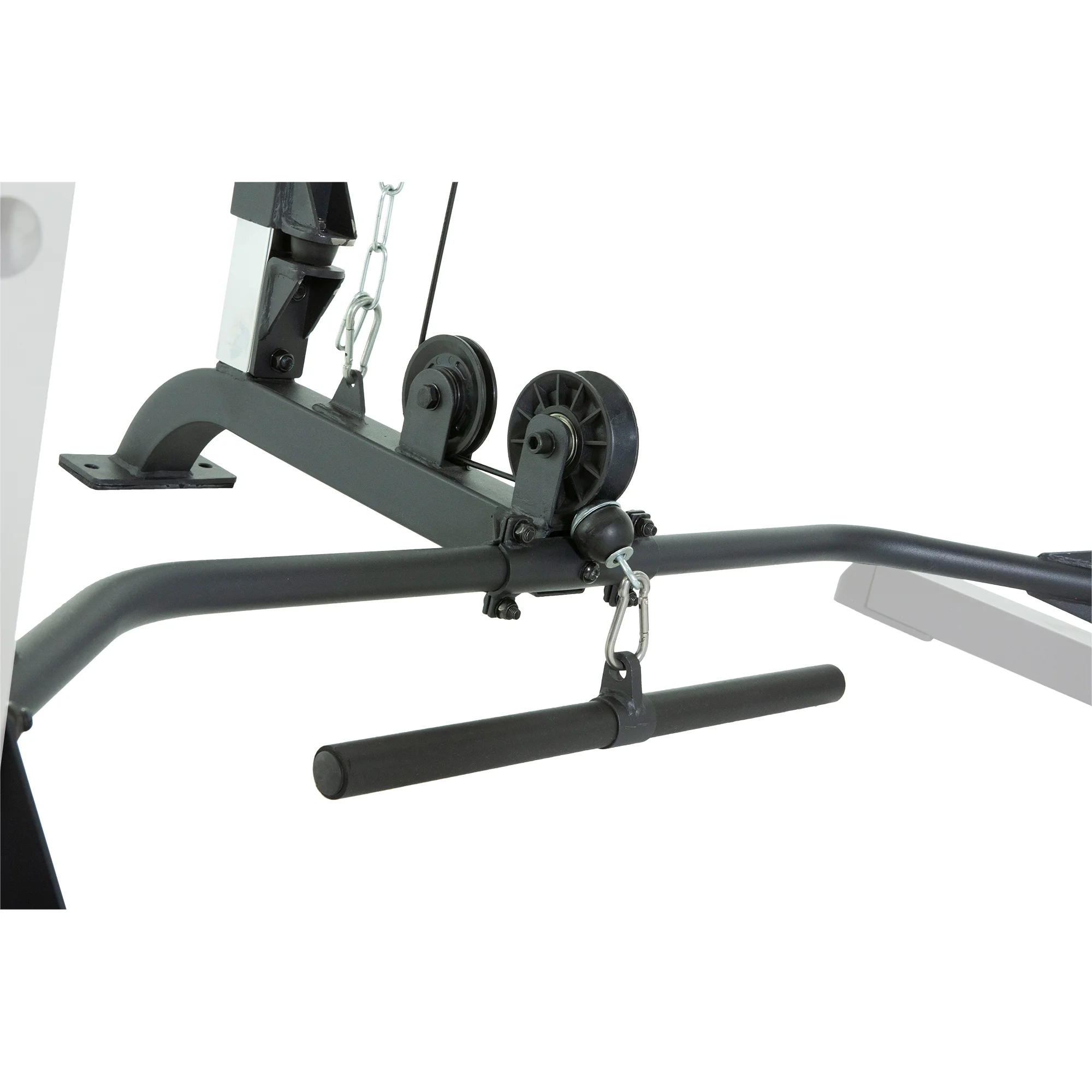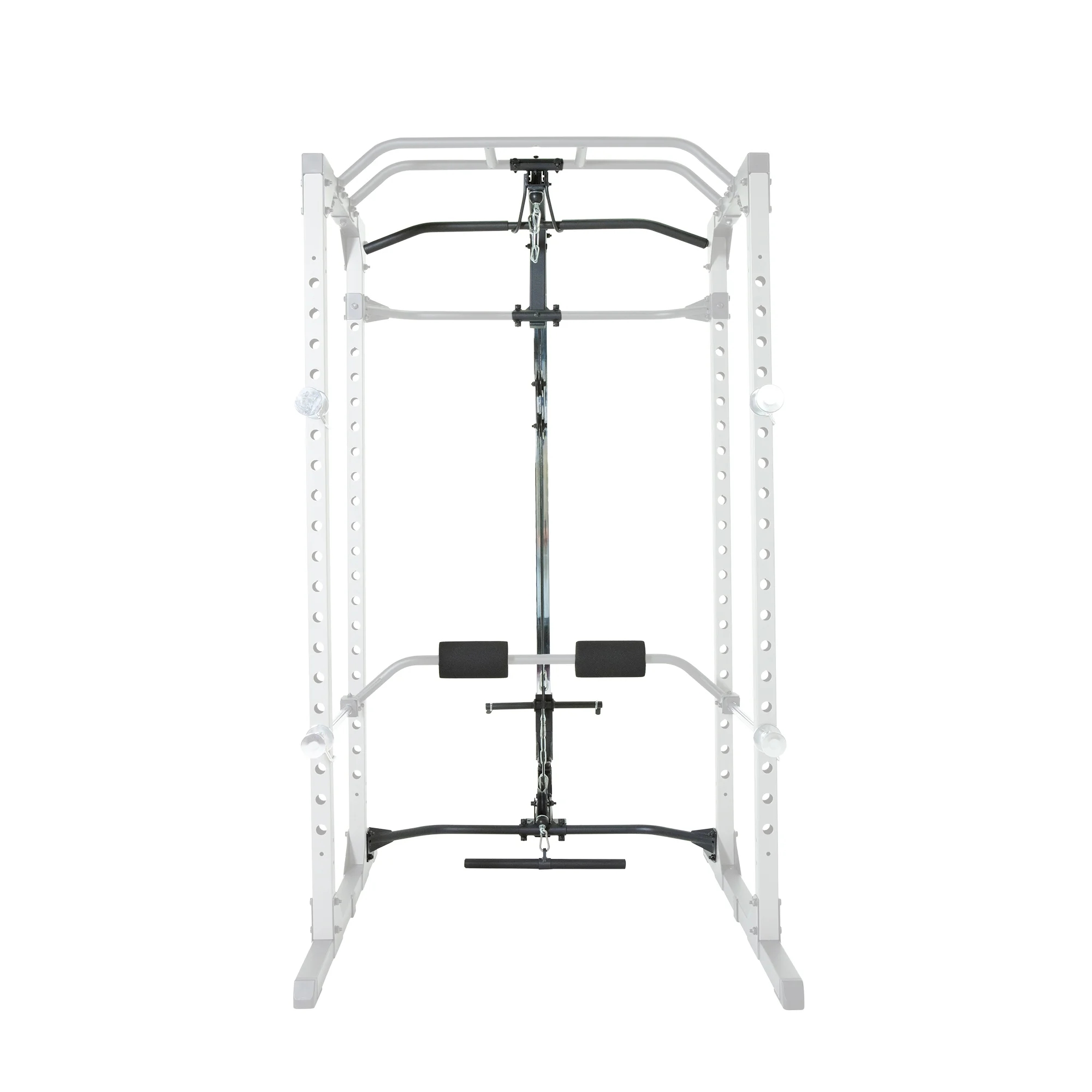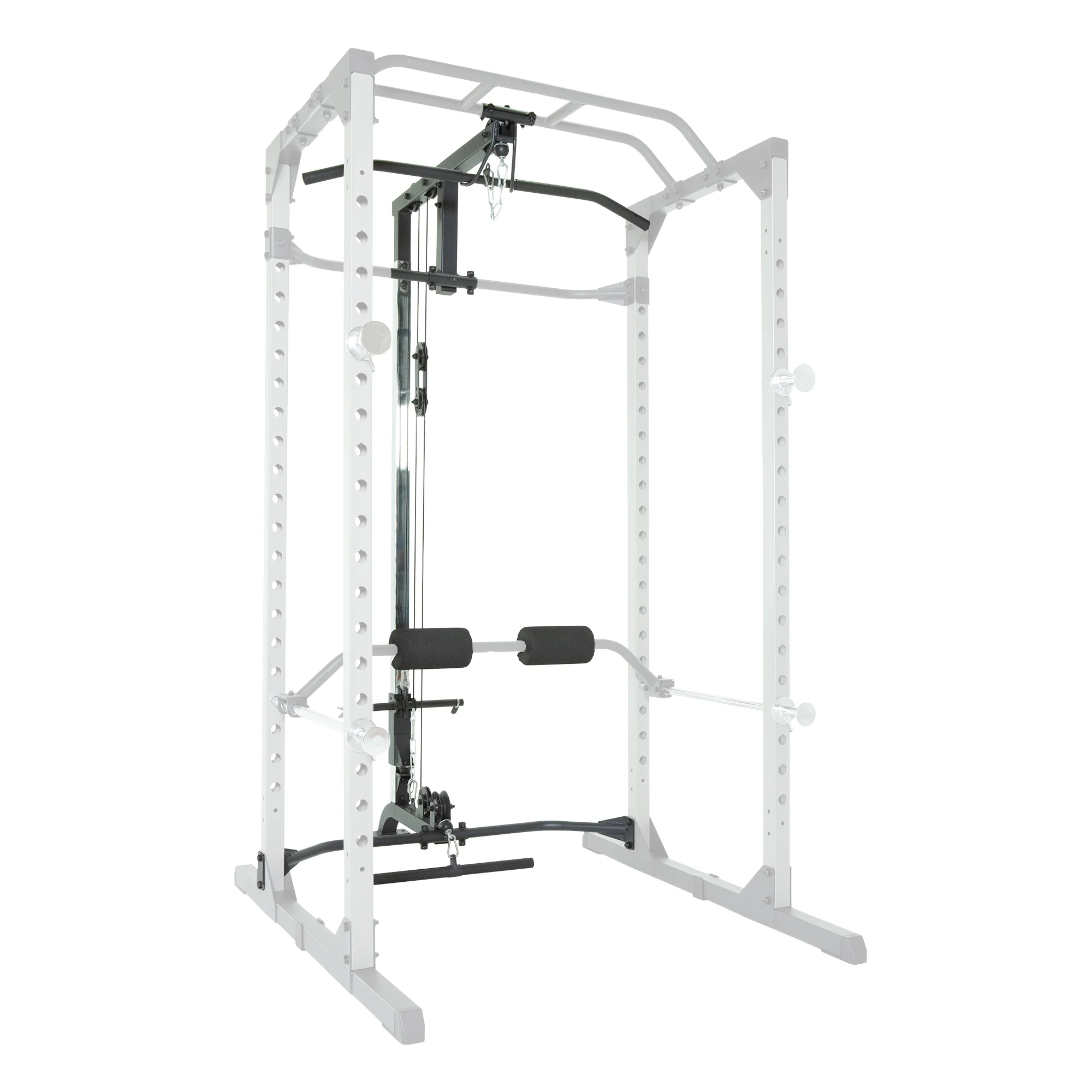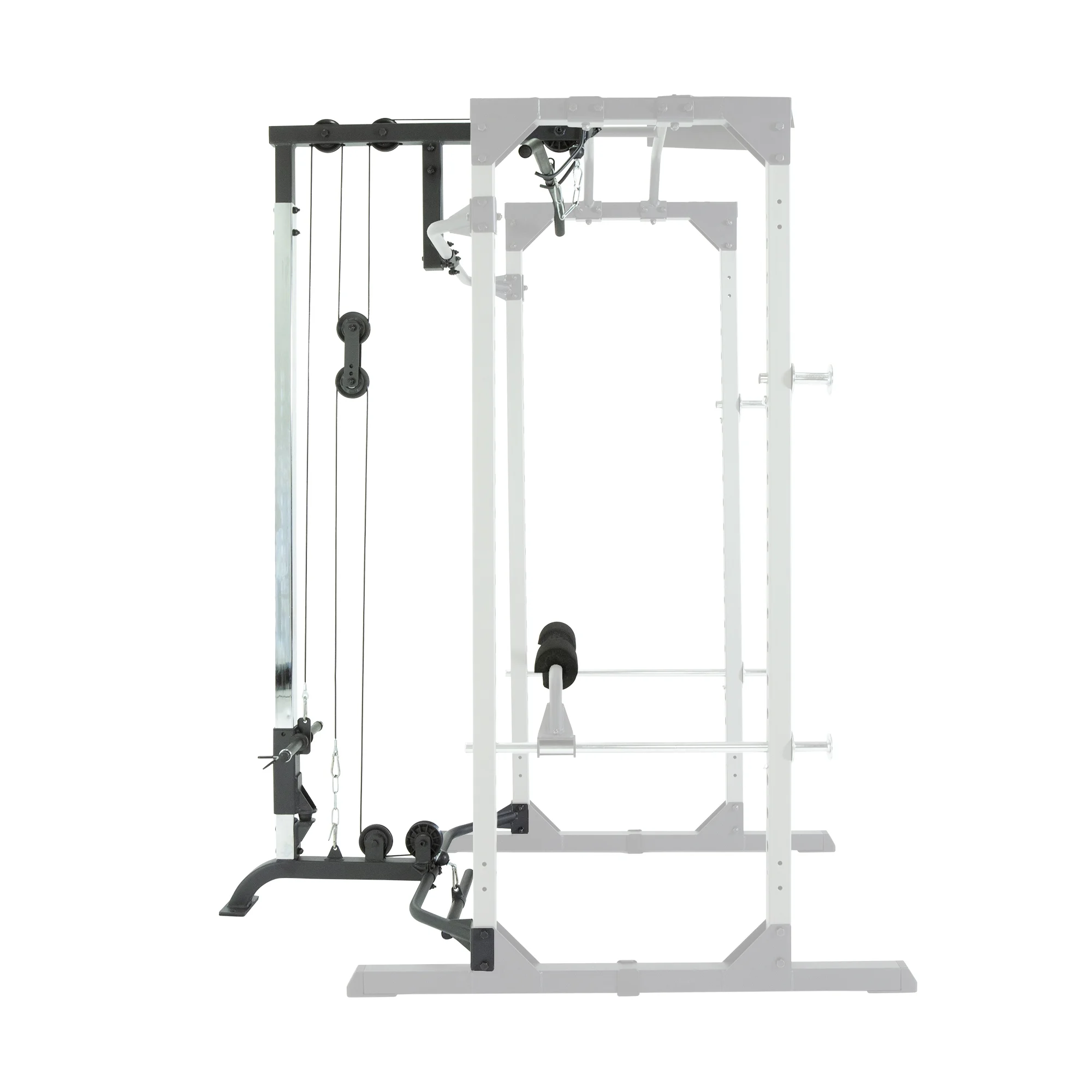 Achieve a sculpted back and arms from the comfort of your own home with the PROGEAR 310 Olympic Lat Pull Down and Low Row Cable Attachment for the Progear 1600 Ultra Strength 800lb Weight Capacity Squat Stand Power Rack Cage. This attachment features a high tensile strength nylon-coated cable, high and low row pulley systems, and a 2” x 2” chrome guide rail for smooth operation. With a weight plate capacity of 265lb and included 39” let bar and 20” low row bar attachments, the PROGEAR 310 is the perfect addition to your power cage routine. Designed to be used with the PROGEAR 1600 Power Cage, this attachment also comes with lock-in J-hooks for added convenience. Get the results you want and train hard with the PROGEAR 310 Olympic Lat Pull Down and Low Row Cable Attachment.
