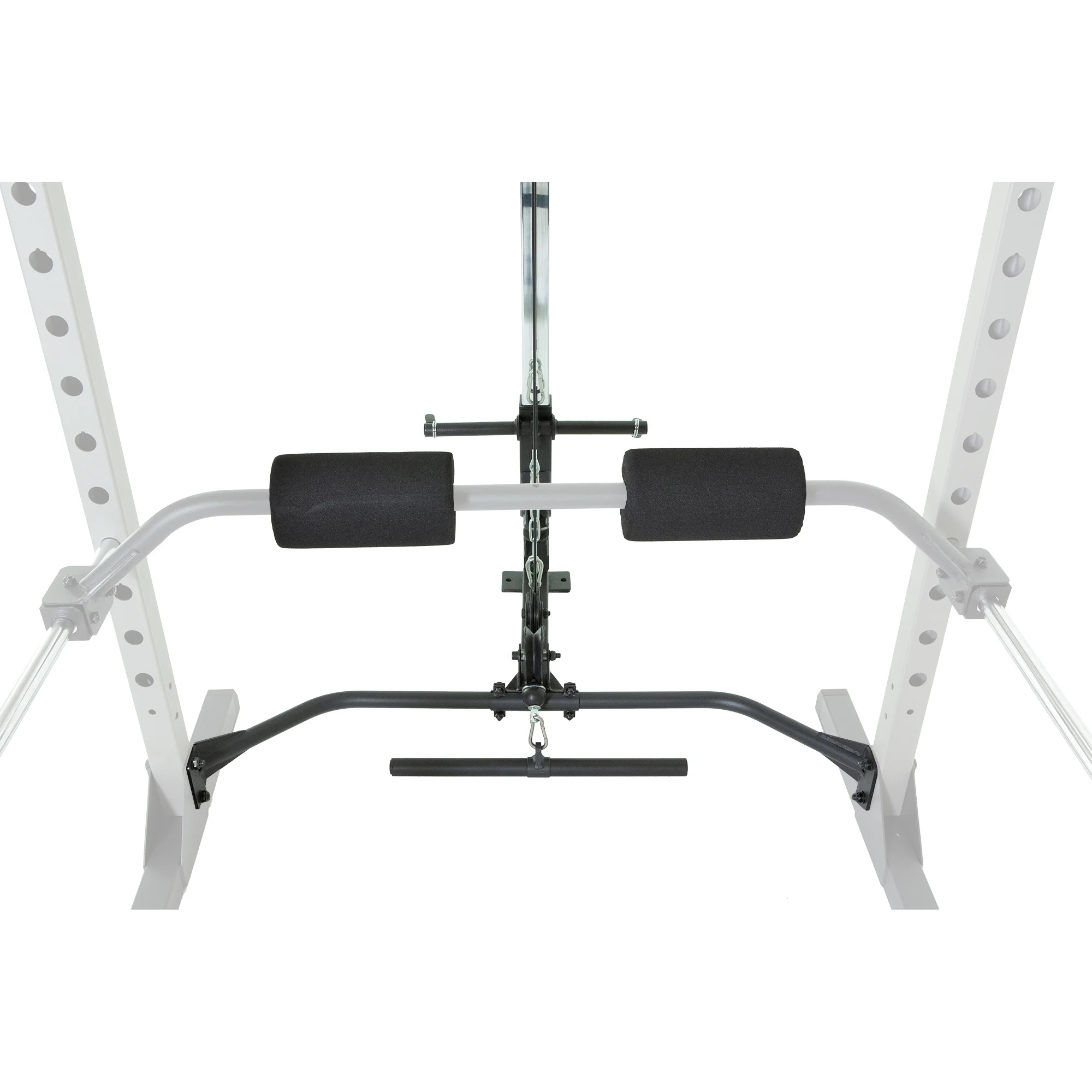 - Leg hold-down to hold you securely in position for let pull-down exercises
