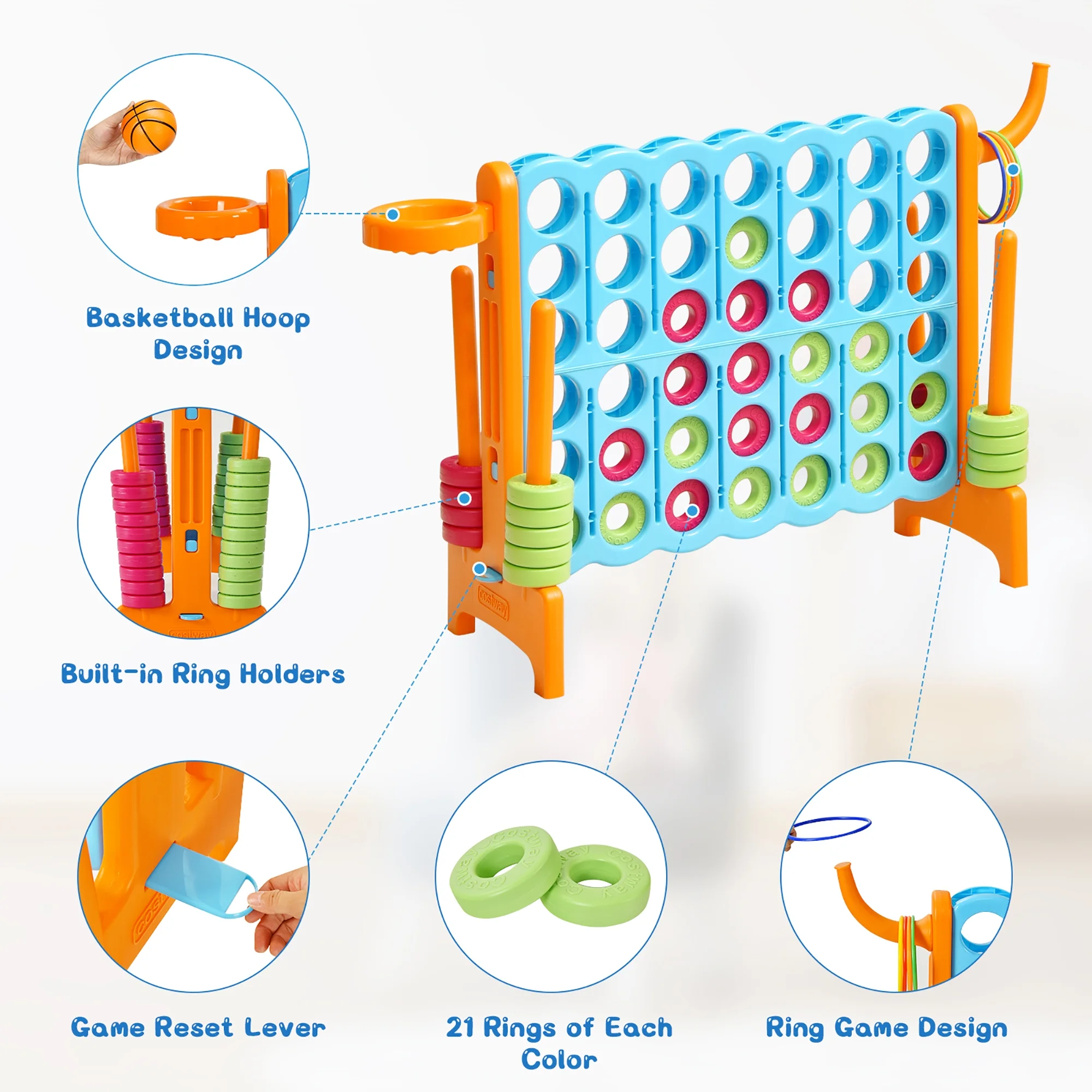 The game set is a smart combination of 4-to-score game, shooting game and ring toss