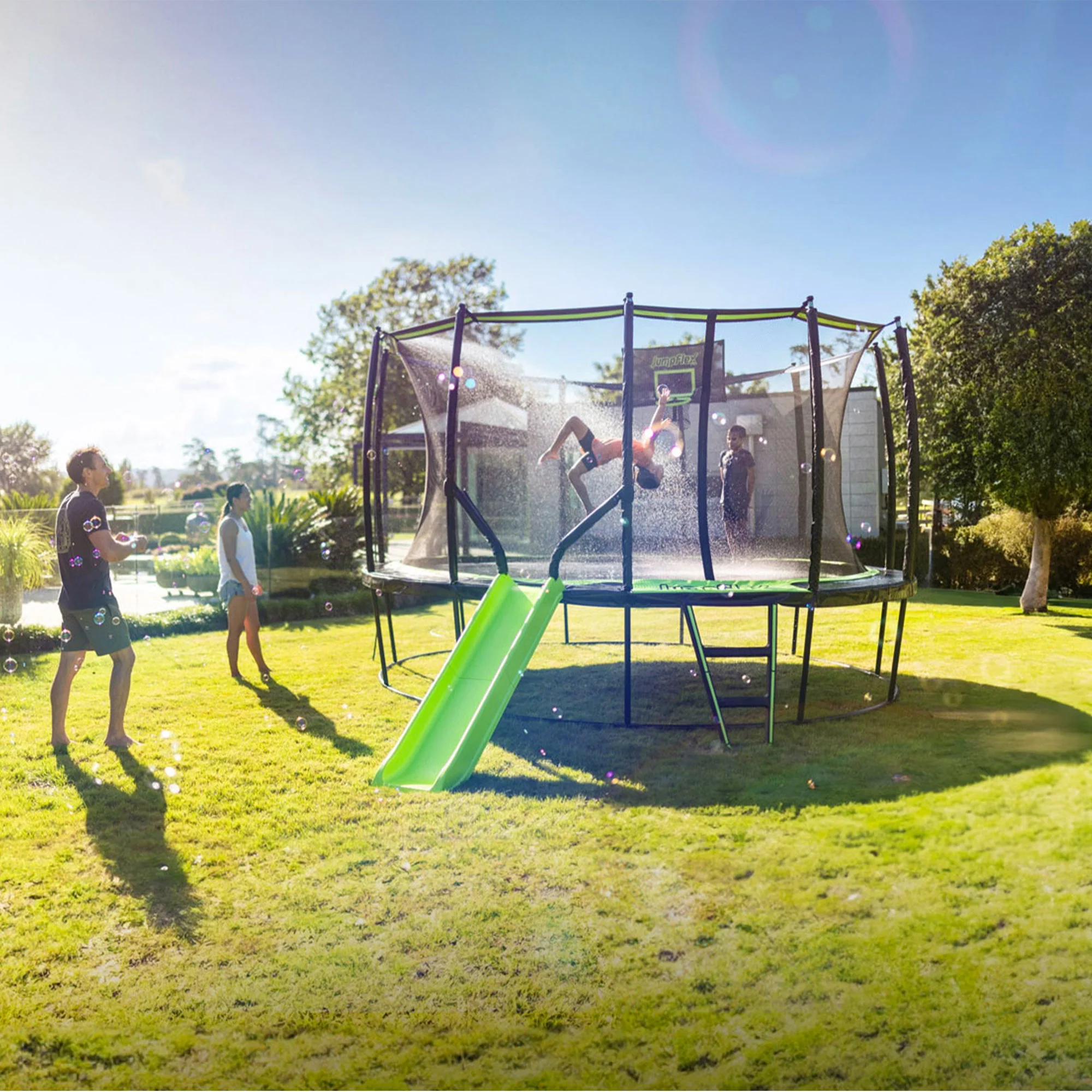 - Durable trampoline frame and innovative spring system deliver an extraordinary bounce experience, with bigger and smoother jumps