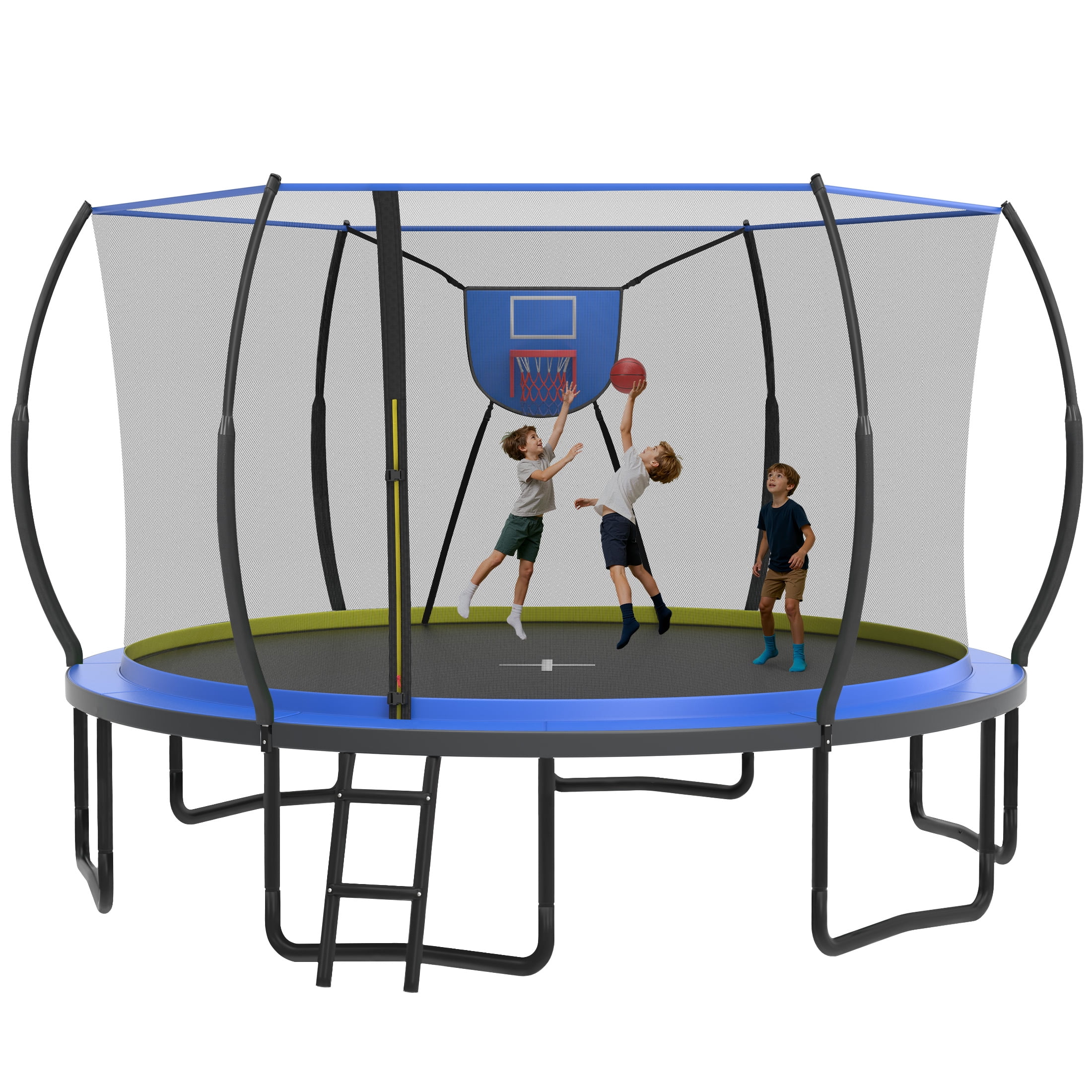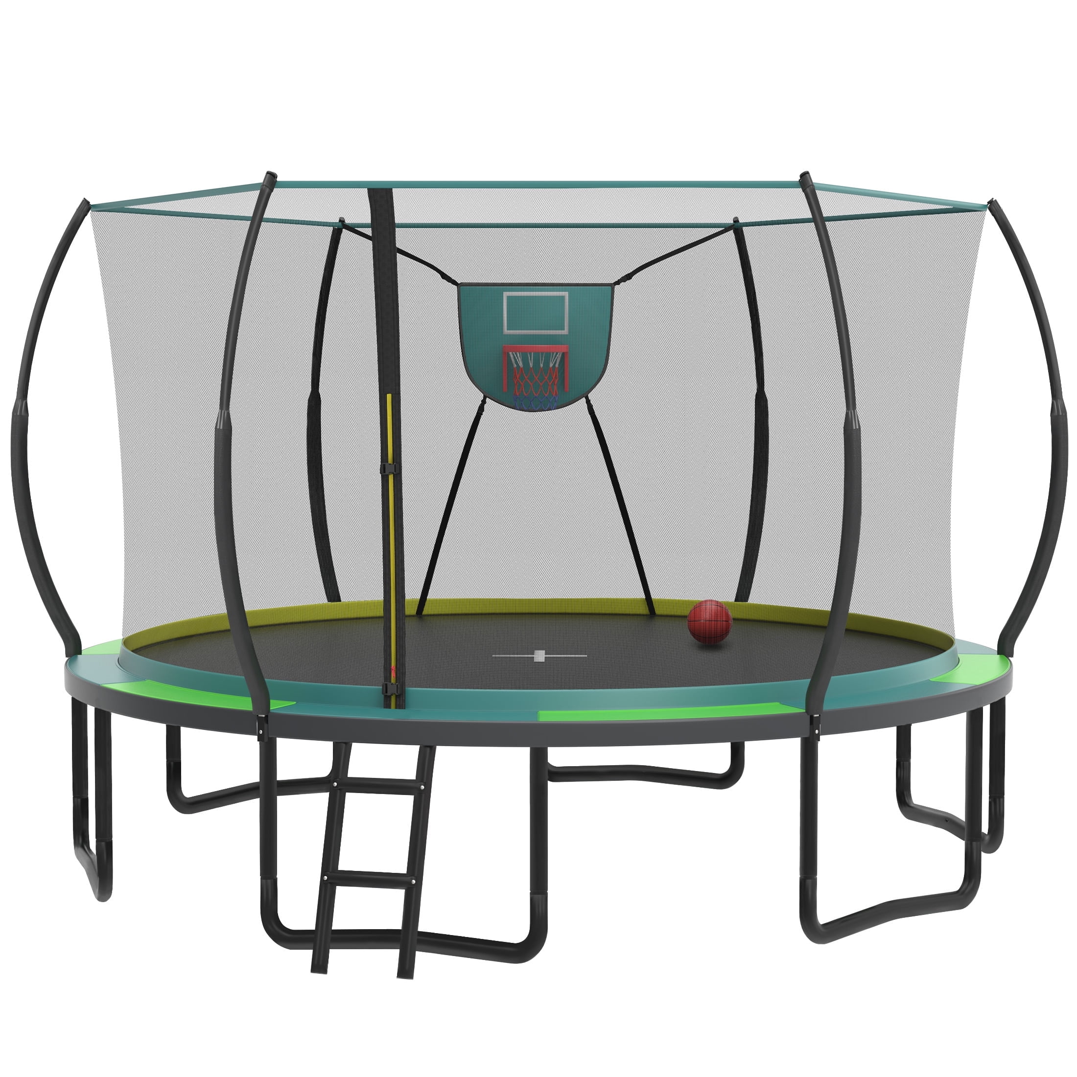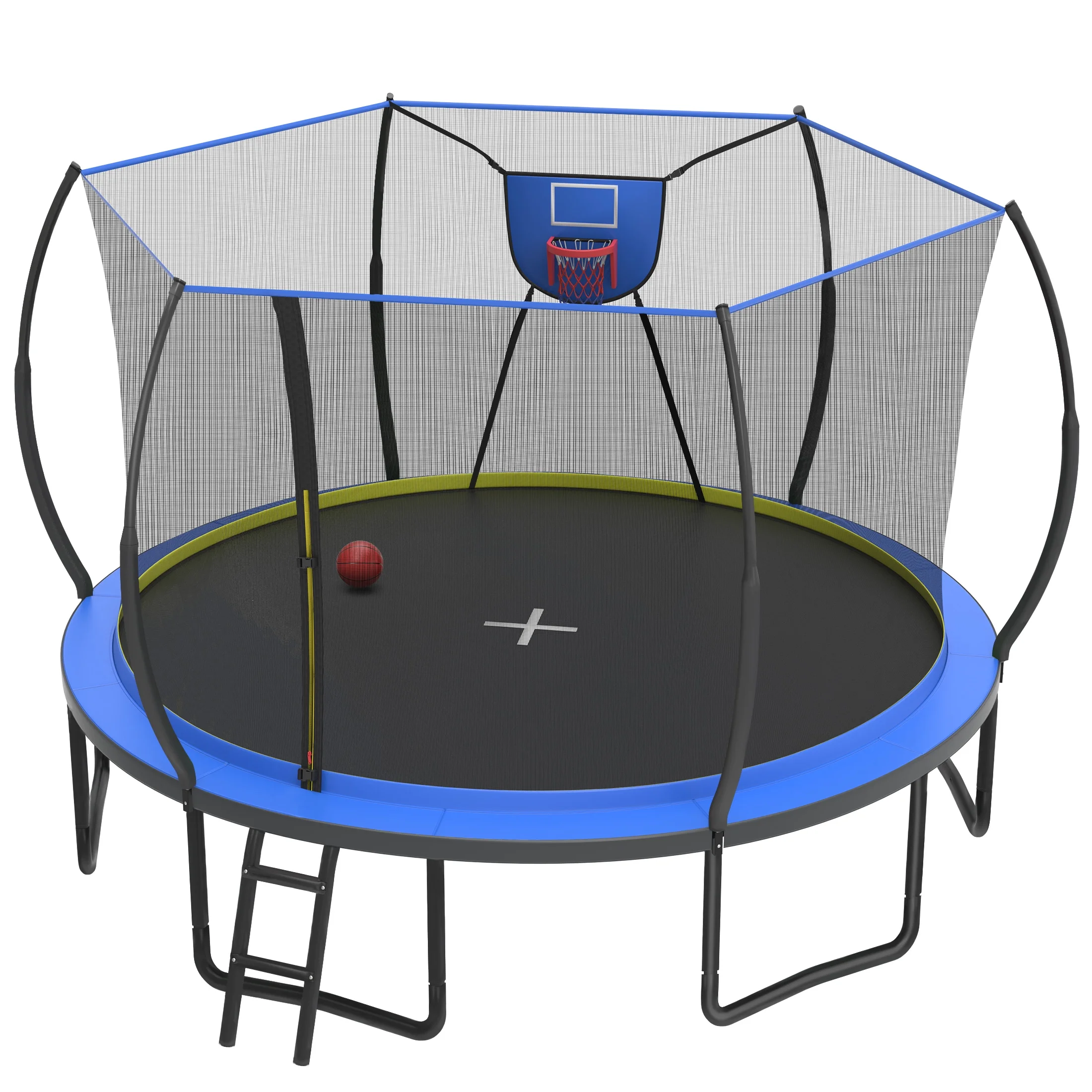 14FT Trampoline with Enclosure for Kids Adults, SEGMART Outdoor Pumpkin Round Recreational Trampoline with No - Gap Design, Heavy Duty Backyard Trampoline with Curved Fiberglass Poles for Indoor Outdoo