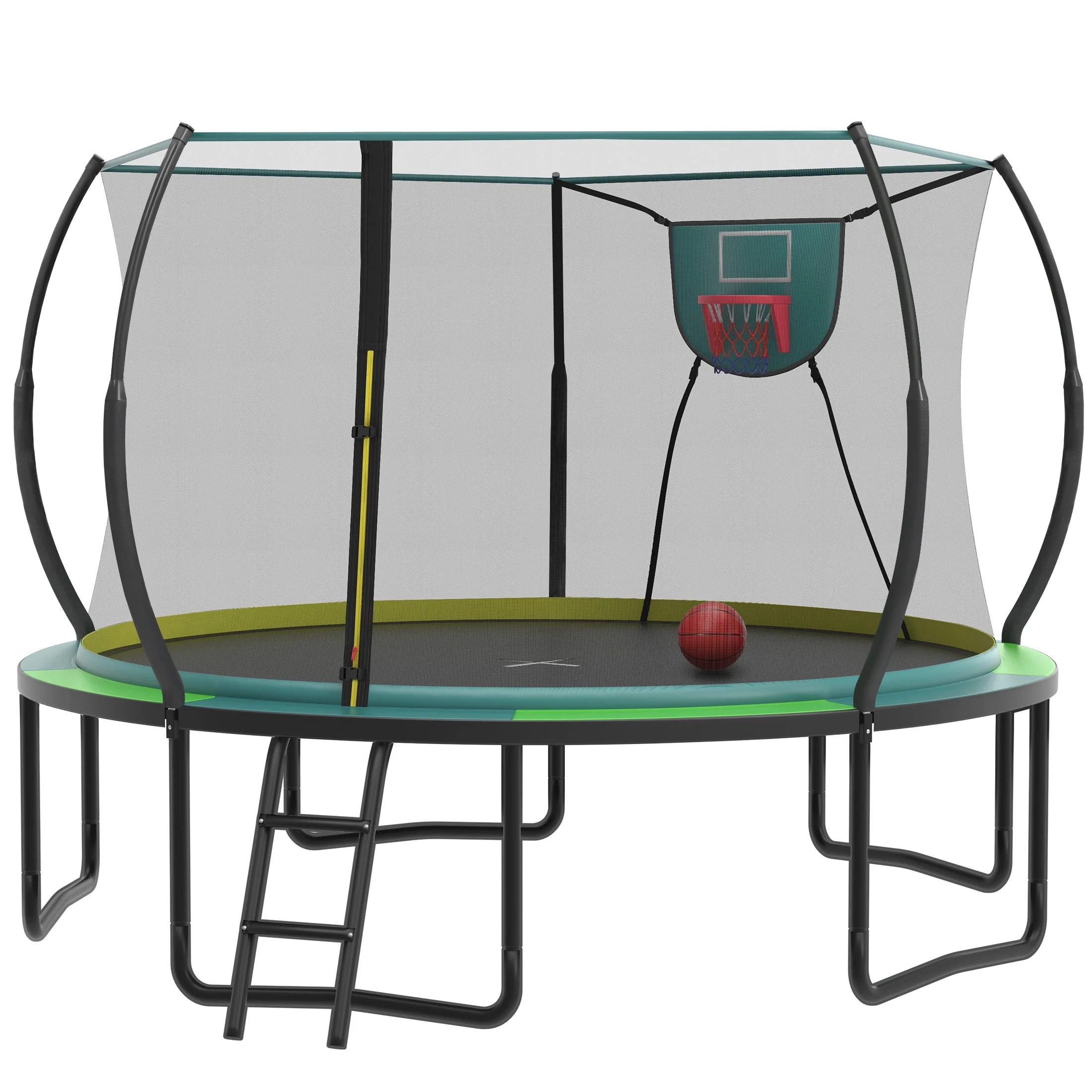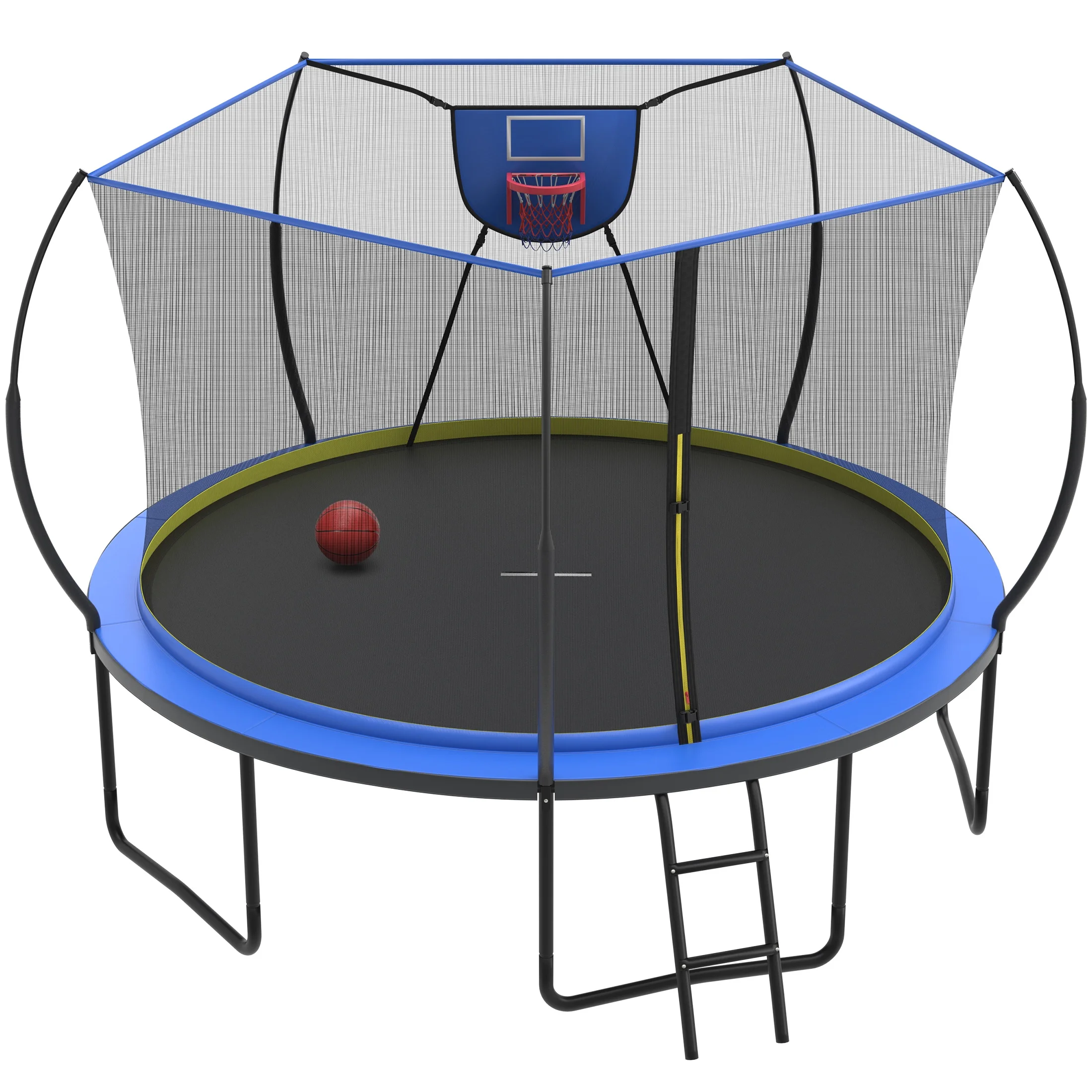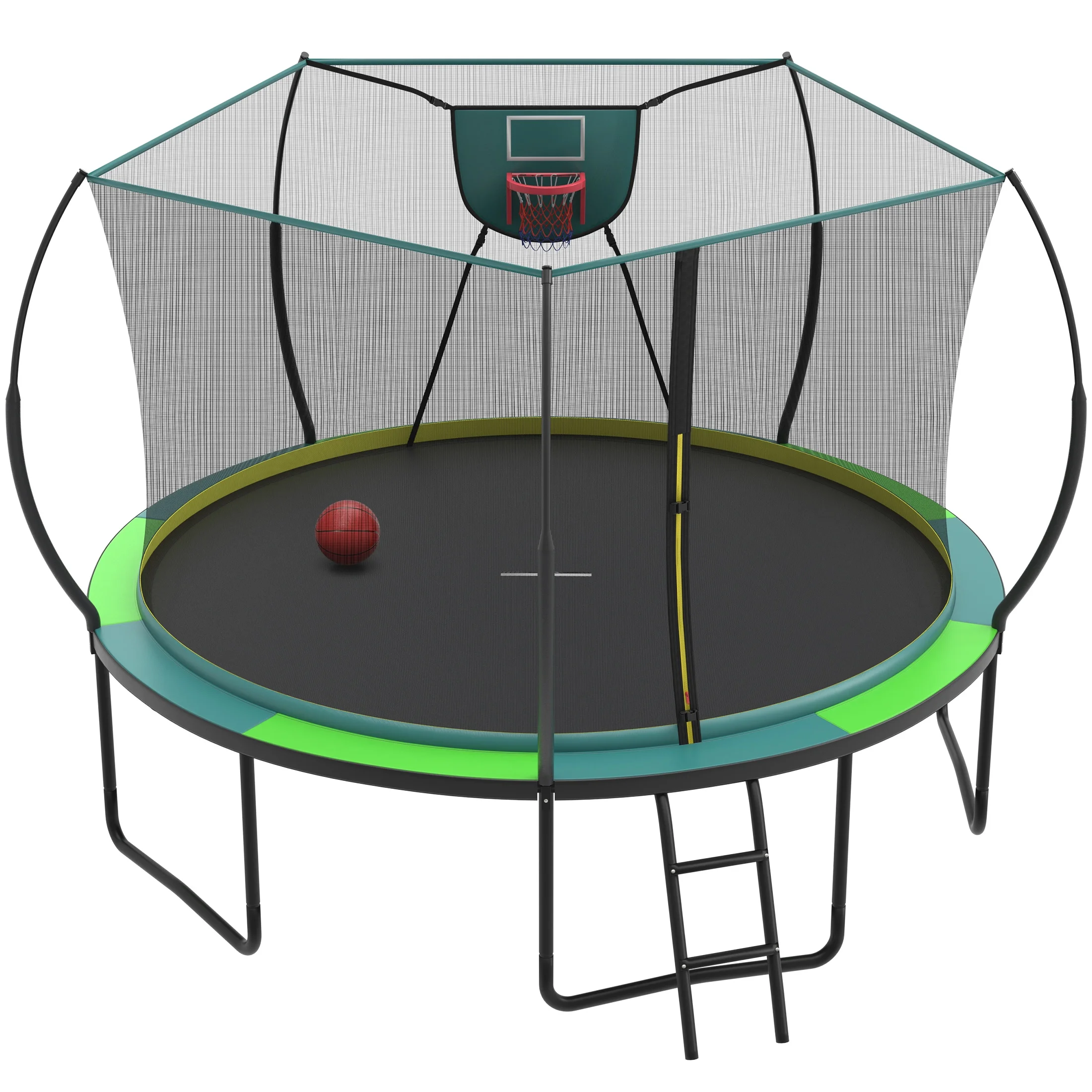 14FT Trampoline with Enclosure for Kids Adults, SEGMART Outdoor Pumpkin Round Recreational Trampoline with No - Gap Design, Heavy Duty Backyard Trampoline with Curved Fiberglass Poles for Indoor Outdoo