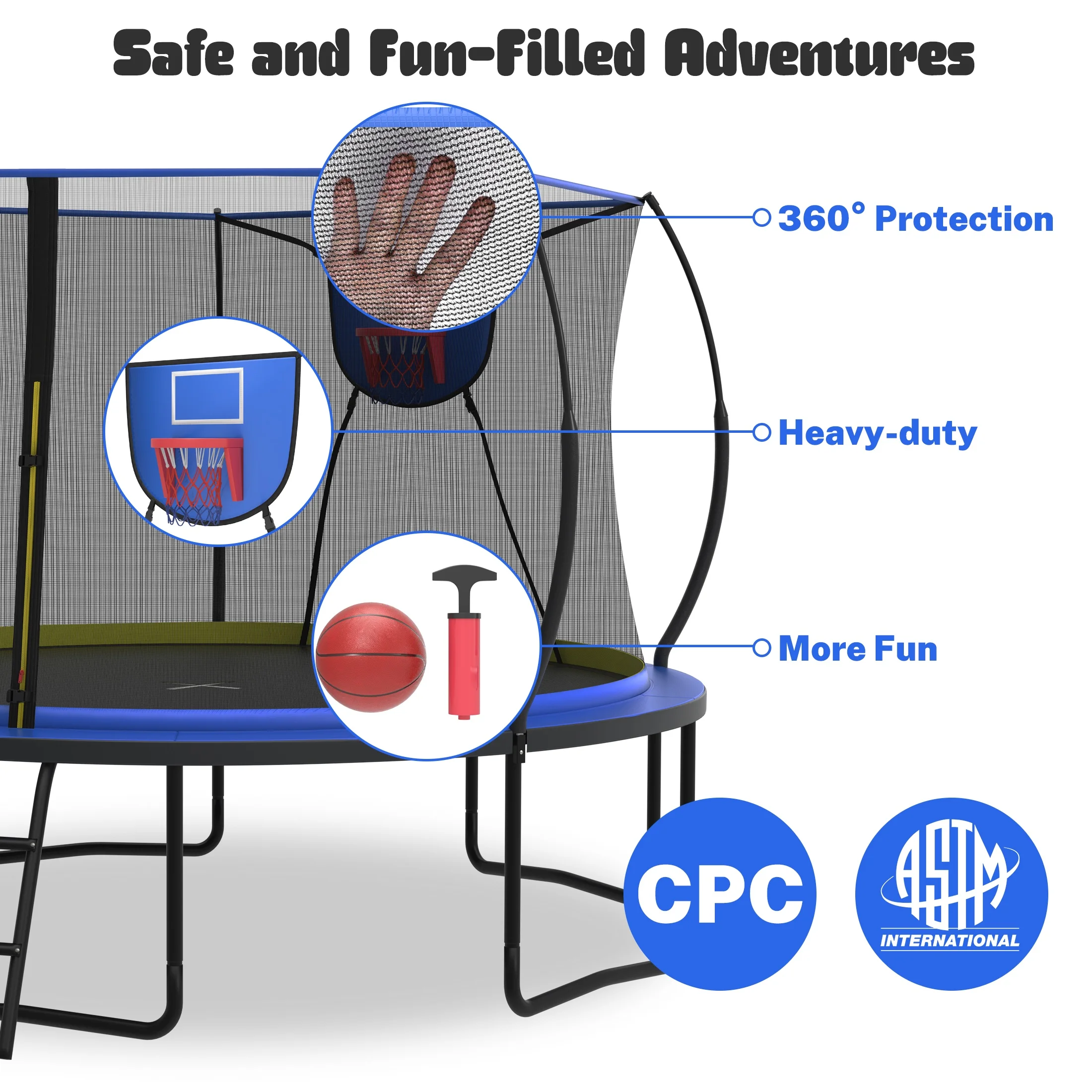 - Robust Framework: 6 W-shaped legs and 12 contact points provide unmatched stability. Our trampoline is powder-coated for long-lasting rust resistance, ensuring countless seasons of fun.