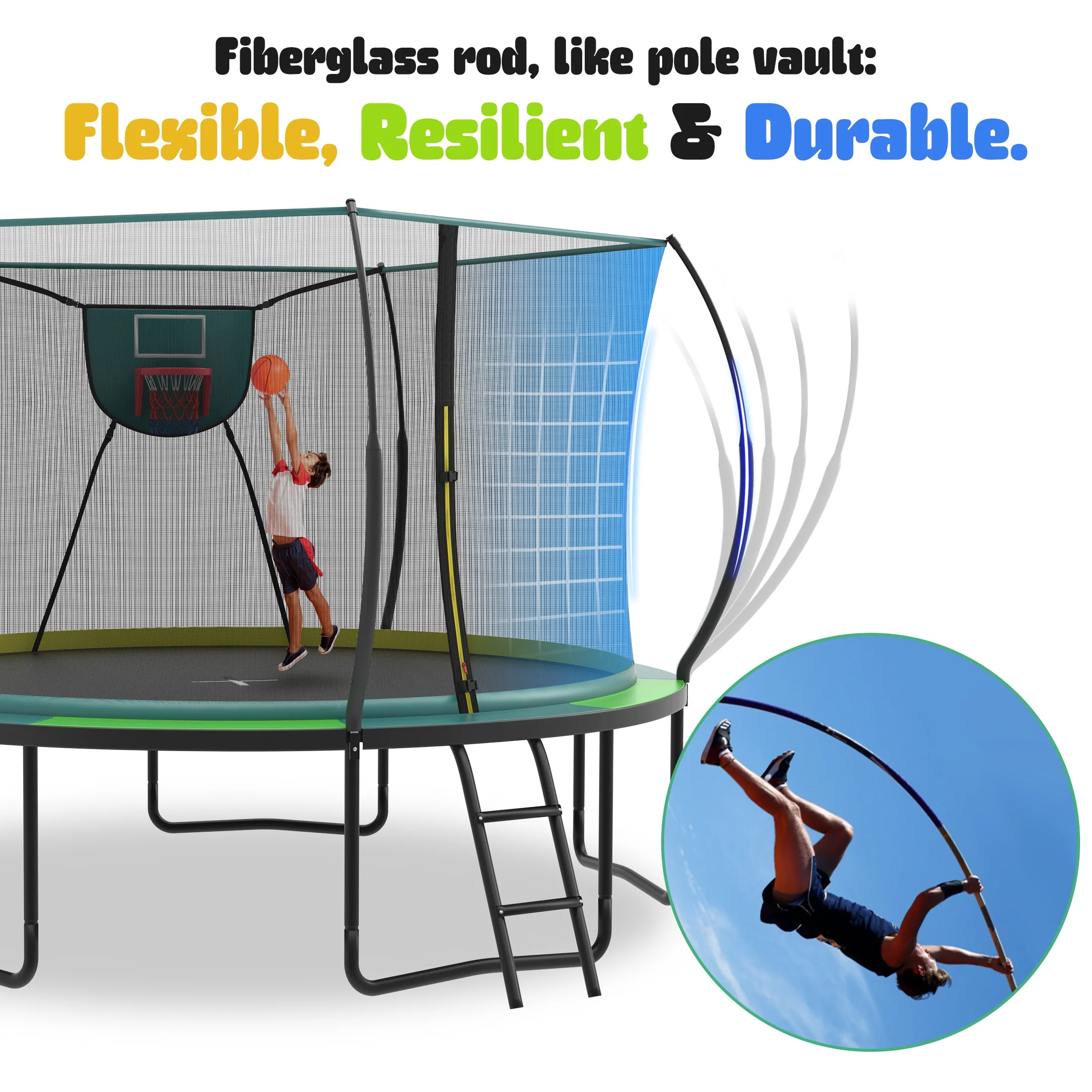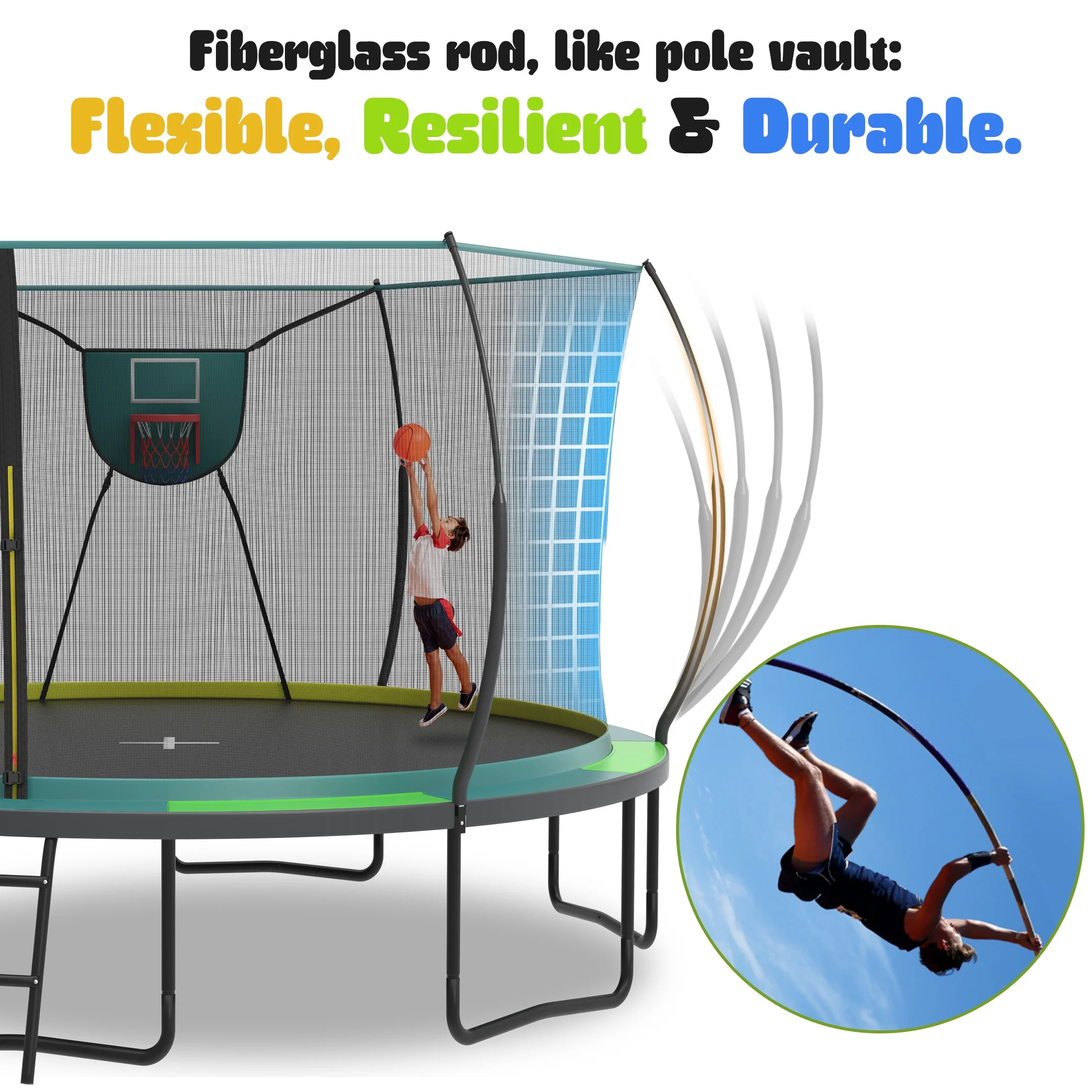 - Sturdy & Resilient: With rust-resistant fiberglass rods, your trampoline is built to defy the elements and stand the test of time.
