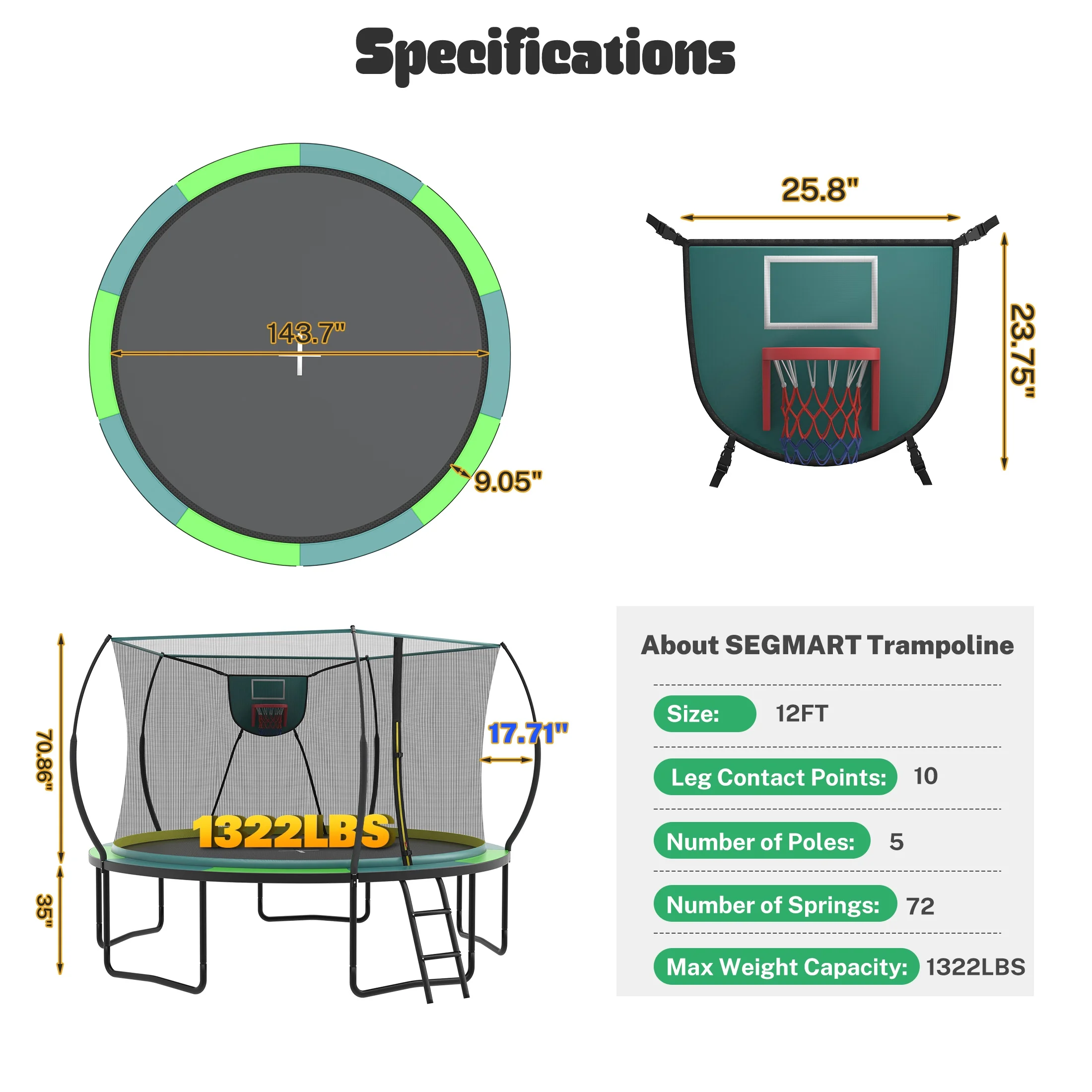 - [ 🎈 Easy Assembly & Considerate Service ] SEGMART trampolines are easy to assemble with clear, picture-based instructions. If you have any issues, contact us—we'll respond within 12 hours to assist you.