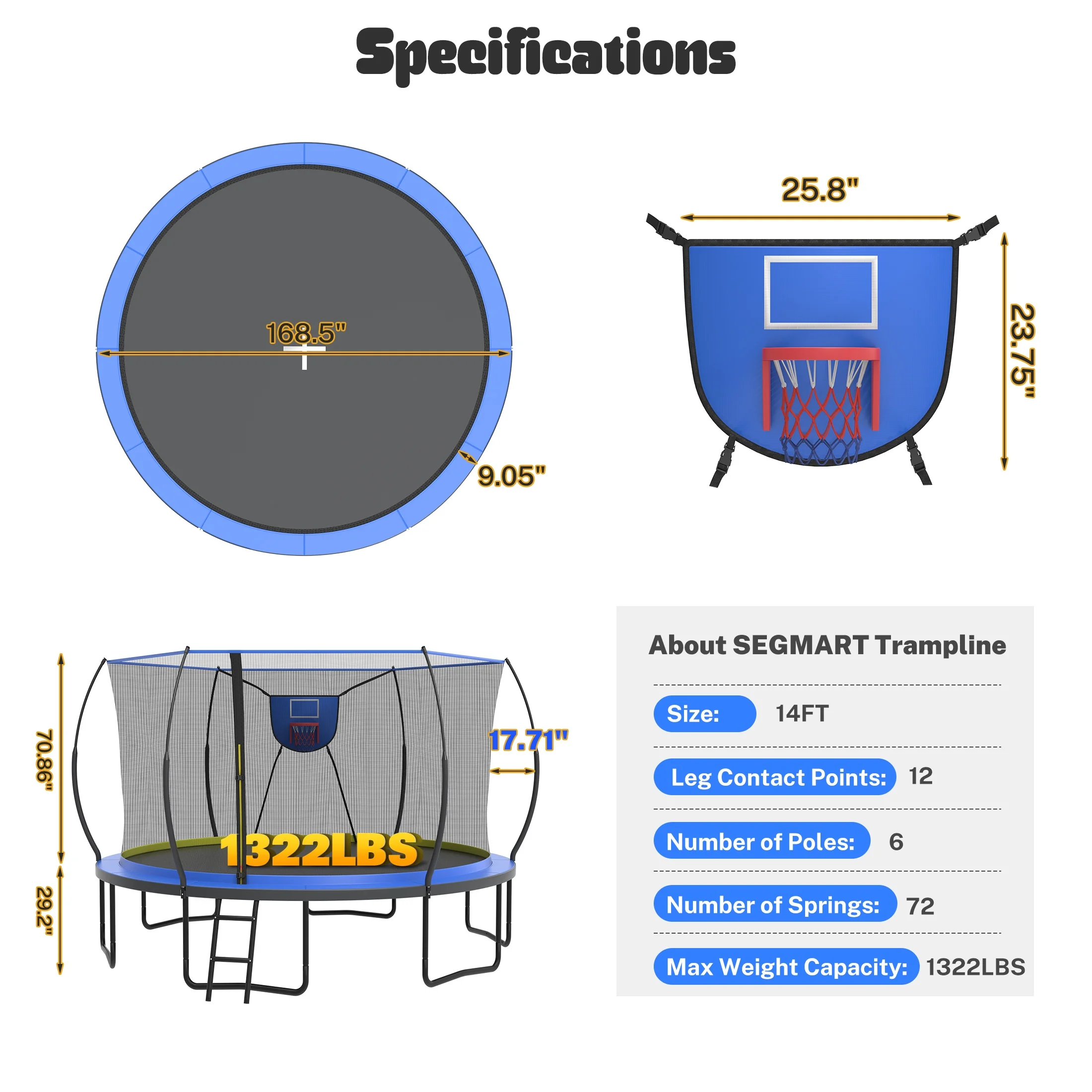 Imagine a place where laughter fills the air, and family moments turn unforgettable. SEGMART’s 14ft trampoline is not just a trampoline—it's your ticket to endless joy and active play!