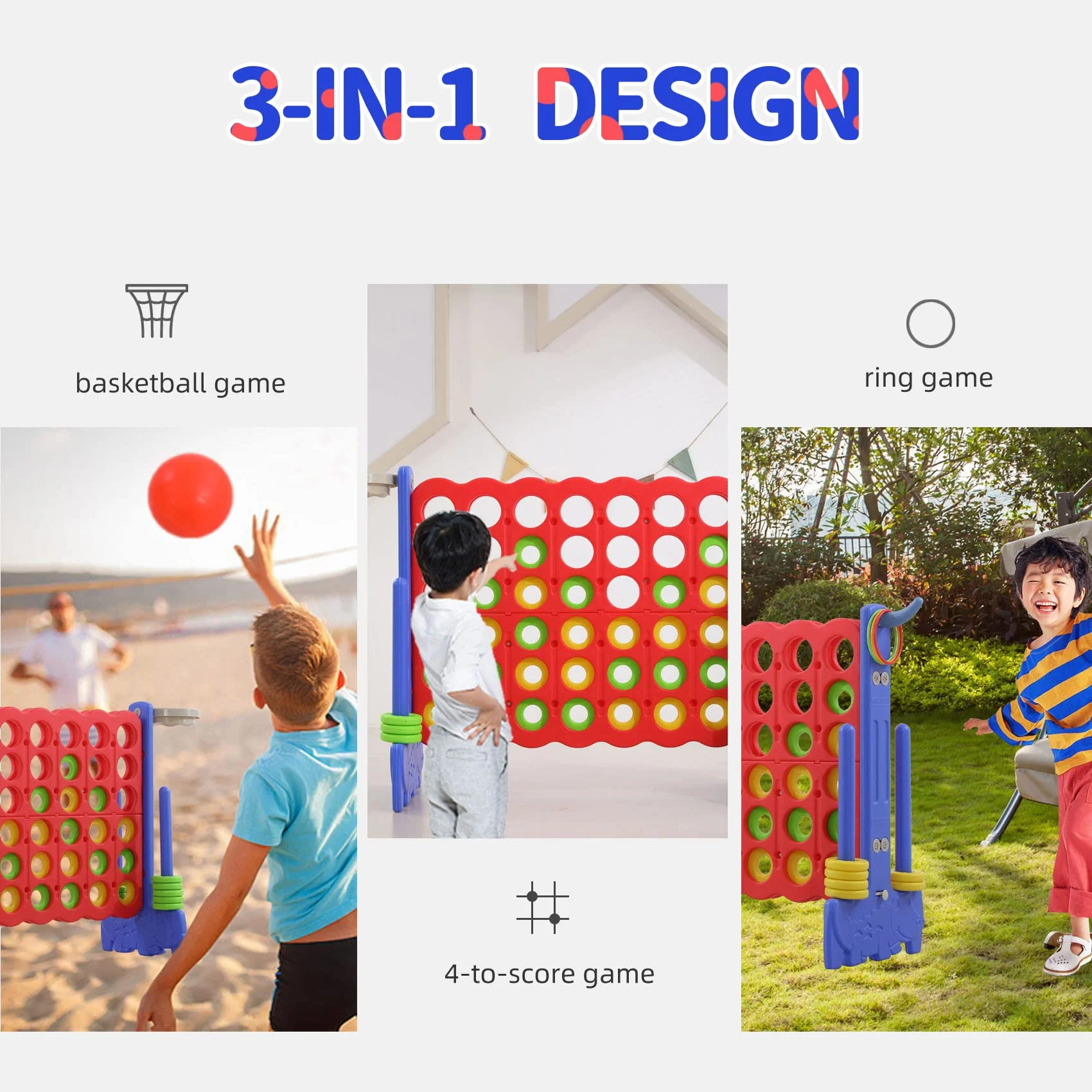 - Innovative 3-In-1 Game Design: Stand out from the crowd with our unique 3-in-1 game set. Featuring a classic 4 in a row connect game, an exciting basketball game, and a fun ring toss - this is not just a regular outdoor game!