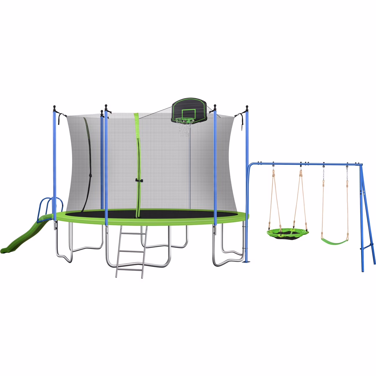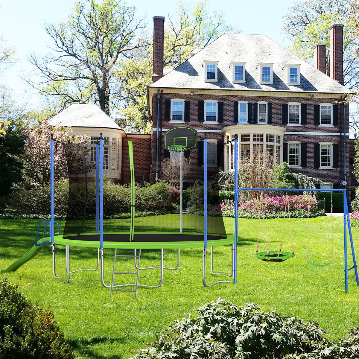 Product Name: 12FT Trampoline for Kids & Adults, Recreational Trampoline with Slide & Swing & Basketball Hoop & Enclosure Net, 600Lbs Capacity for 4-5 Kids