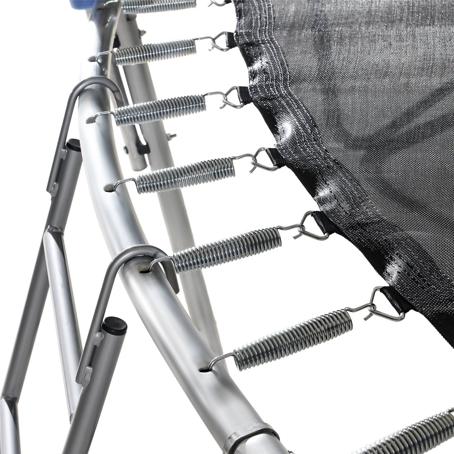 - [Built with Durability] Heavy gauge galvanized steel frame forms 6 W-shaped legs provide stable base for the jumping zone. The joins are press-fitted onto each frame piece to reduce frame noise and movement between sections and ultimately, reduces overall wear and tear.