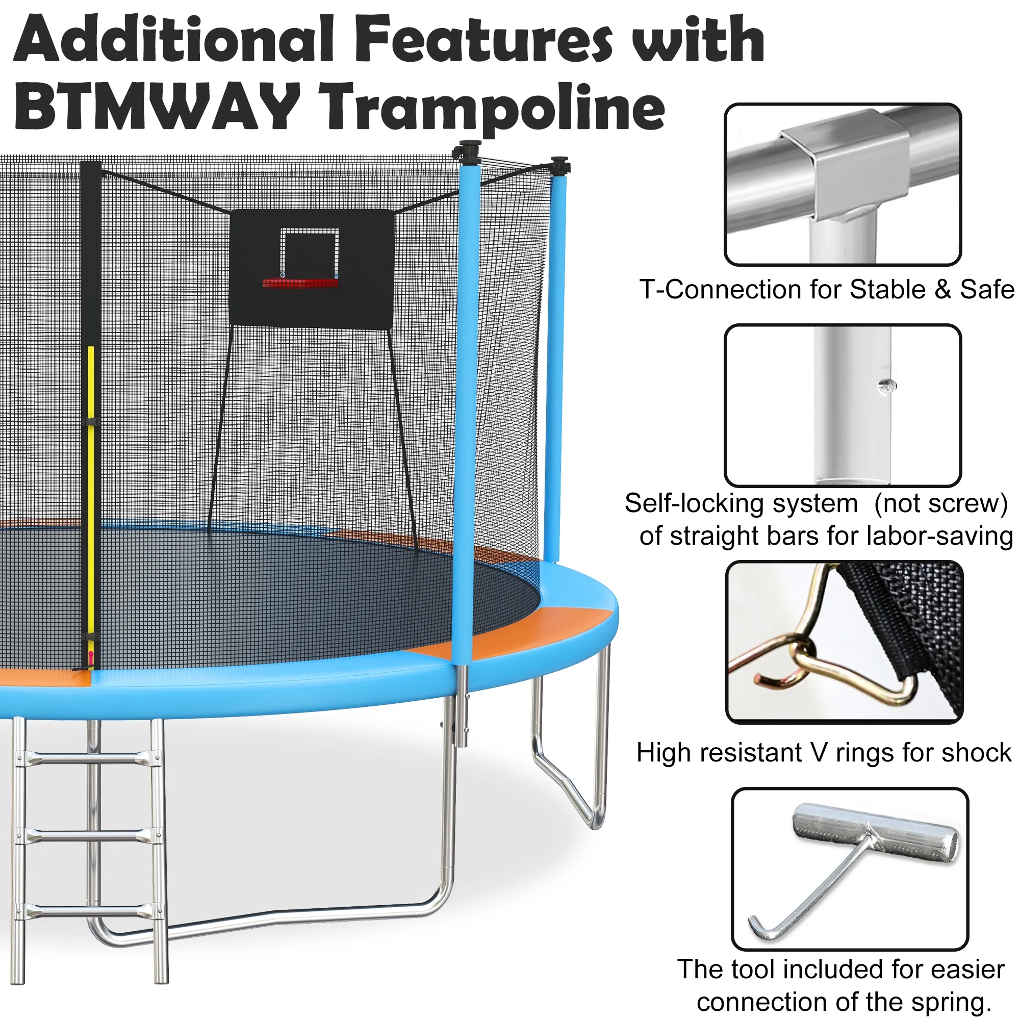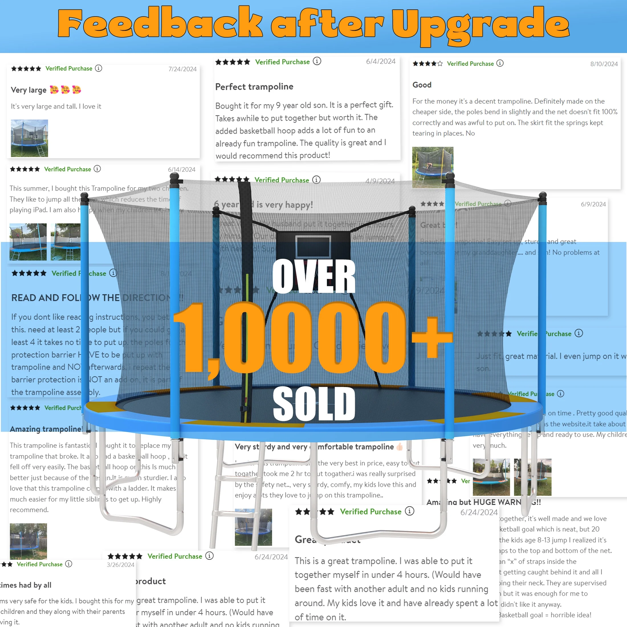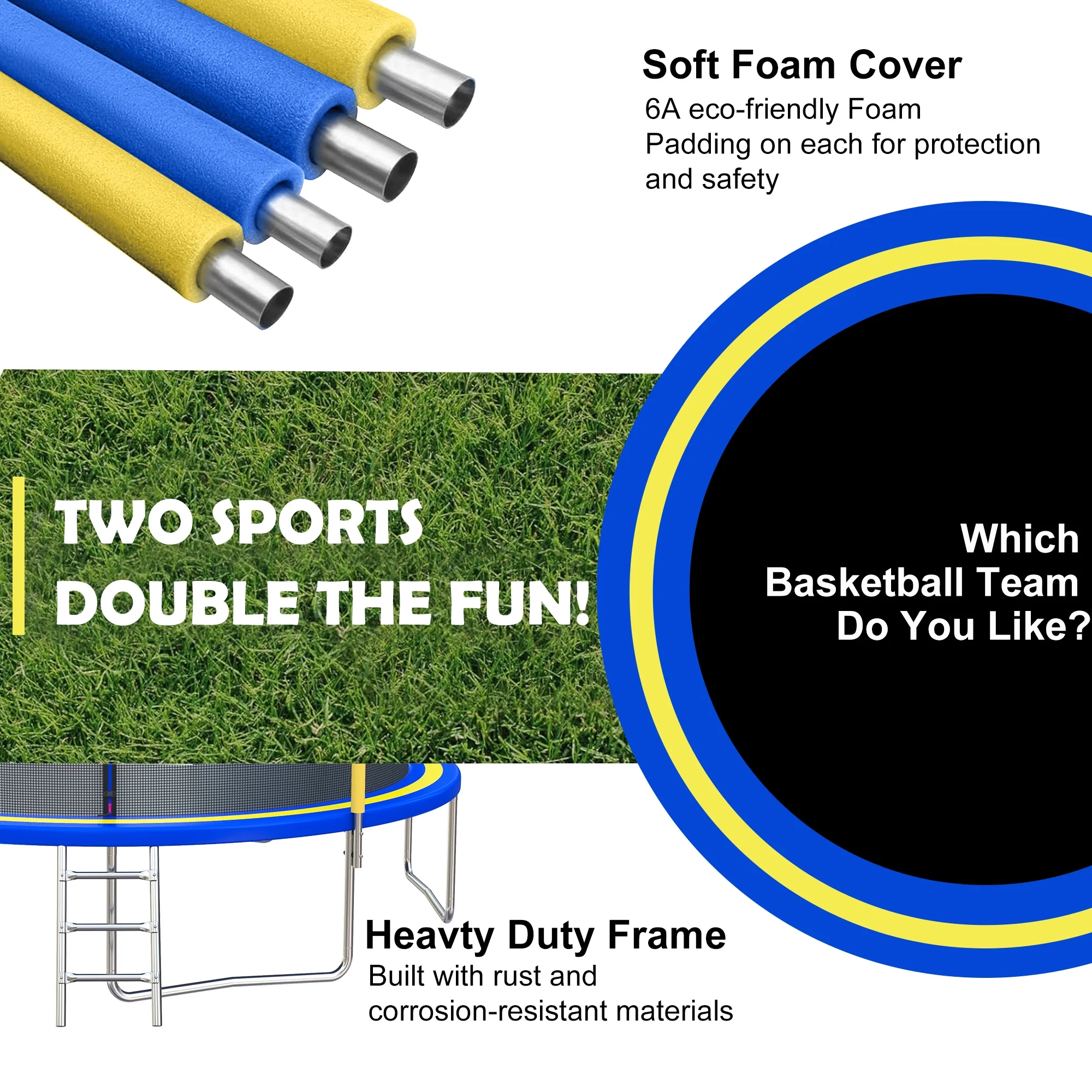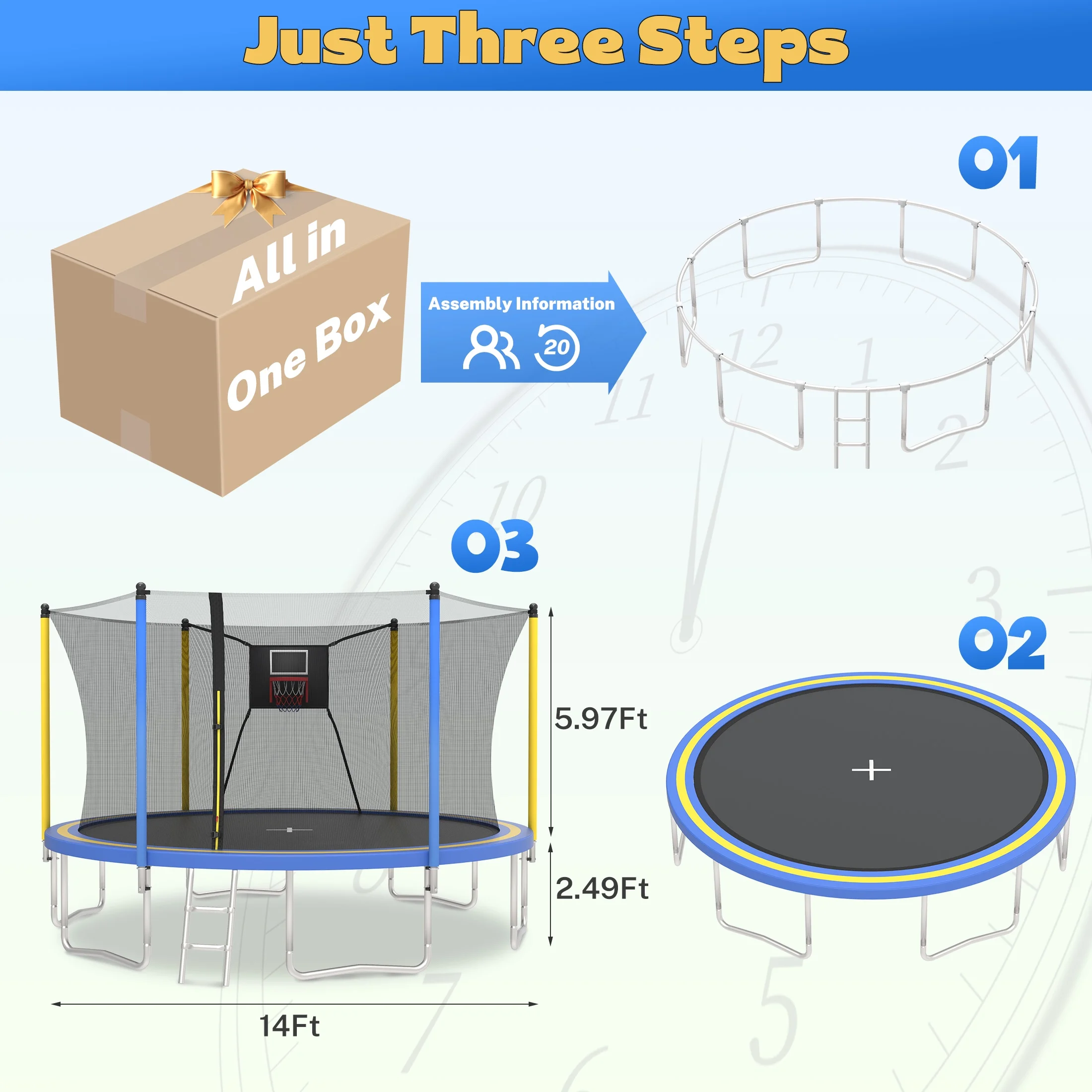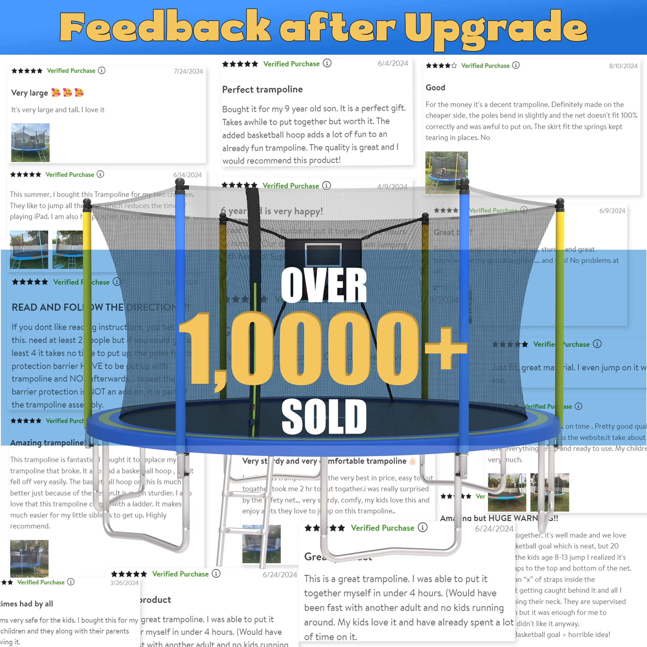 💪[Superb Bouncing Experience -80 Galvanized Steel Springs]: Our 14ft trampoline with basketball hoop is equipped with 80 galvanized steel springs, providing your child with an exceptional bouncing experience. The springs are made of galvanized steel material, which not only provides excellent elasticity, but also has top-notch quality assurance. You can rest assured that your children can play on their own.