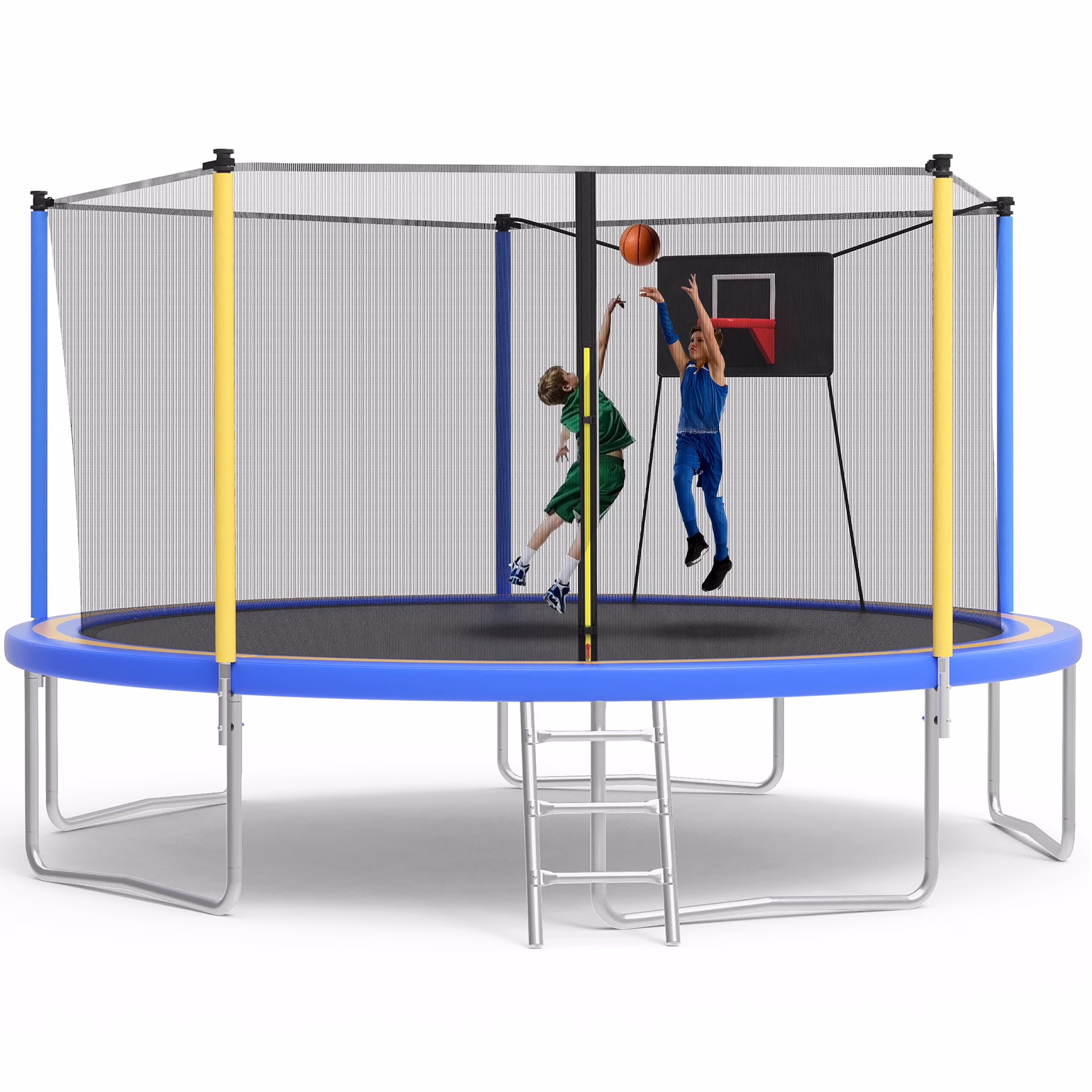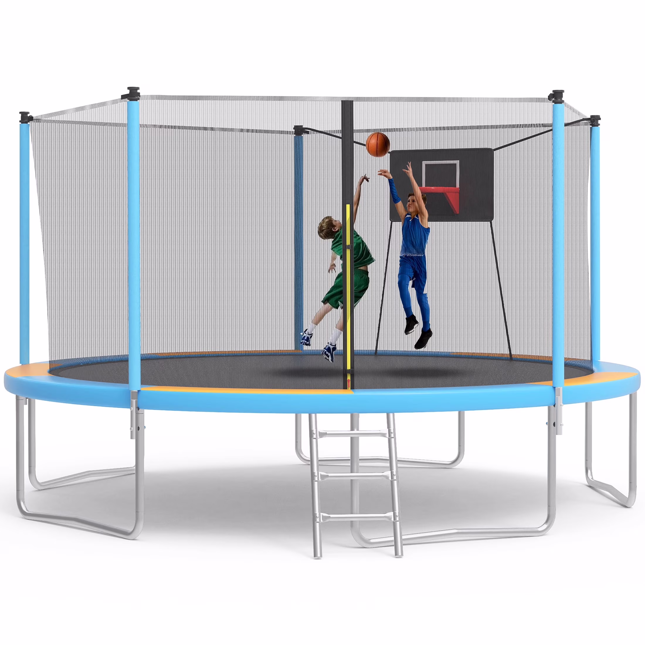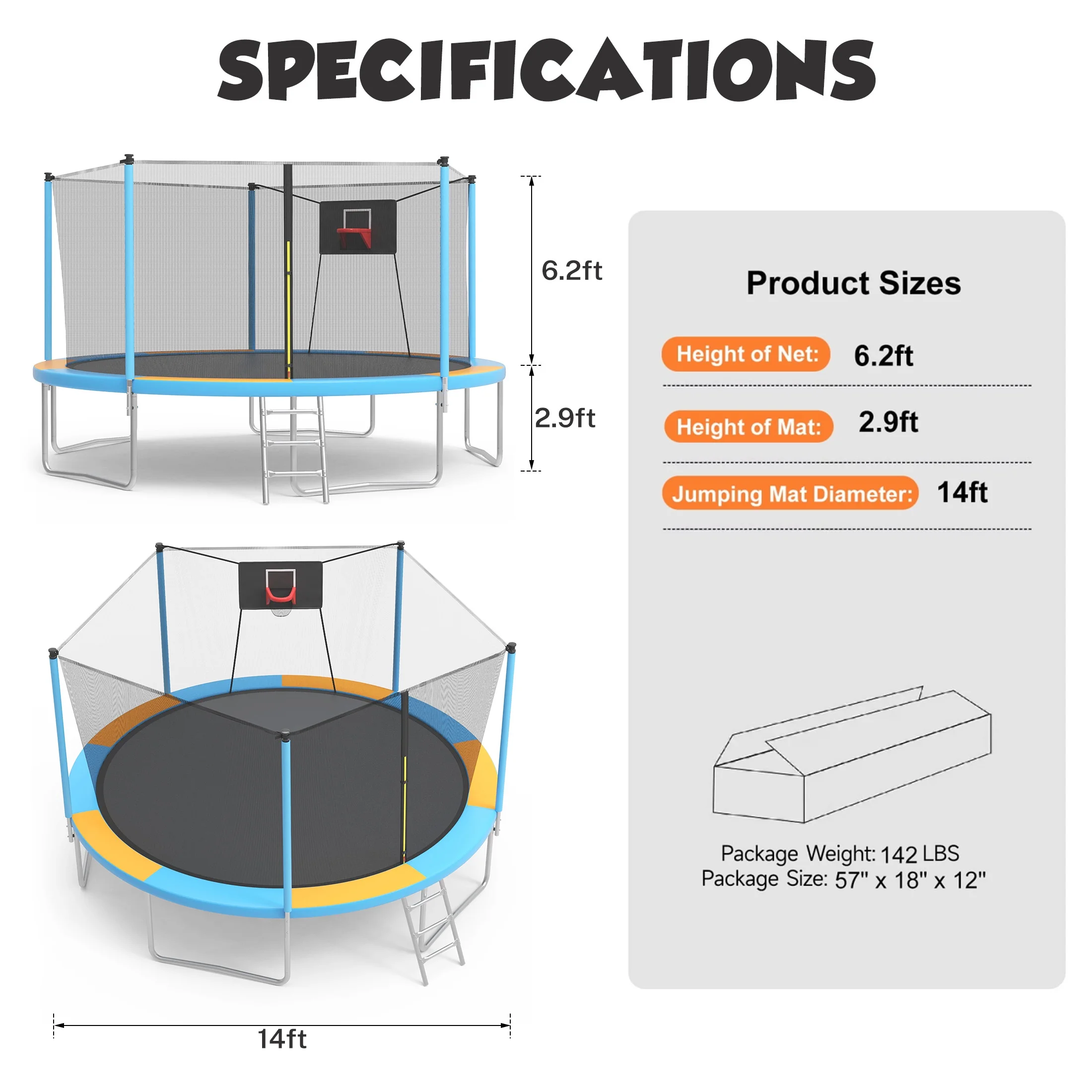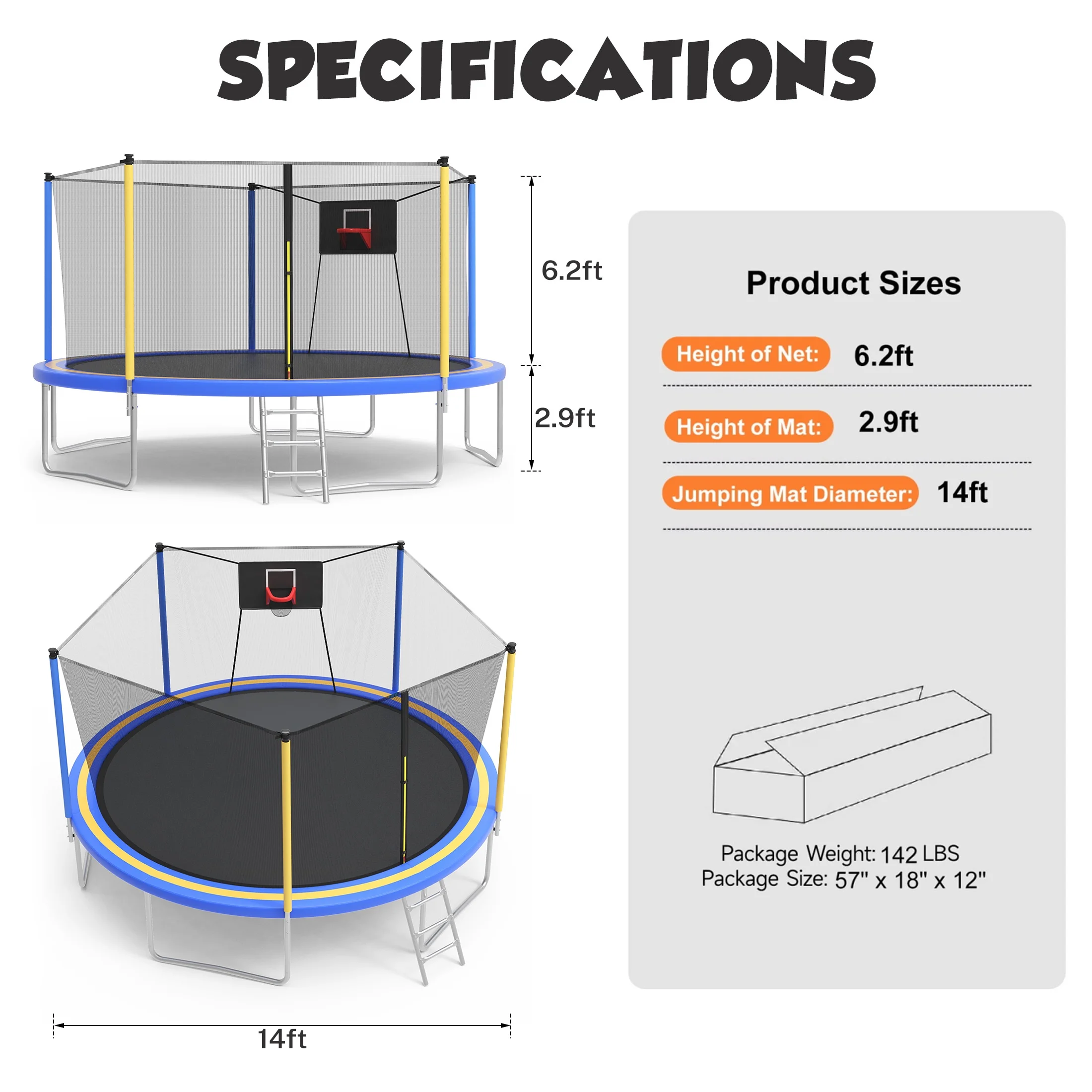 SHINPT 14ft Trampoline for Kids, Outdoor Trampoline with Net, Big Trampoline with Basketball Hoop and Ladder, Heavy Duty Trampoline with No - Gap Design, Backyard Trampolines for Adult