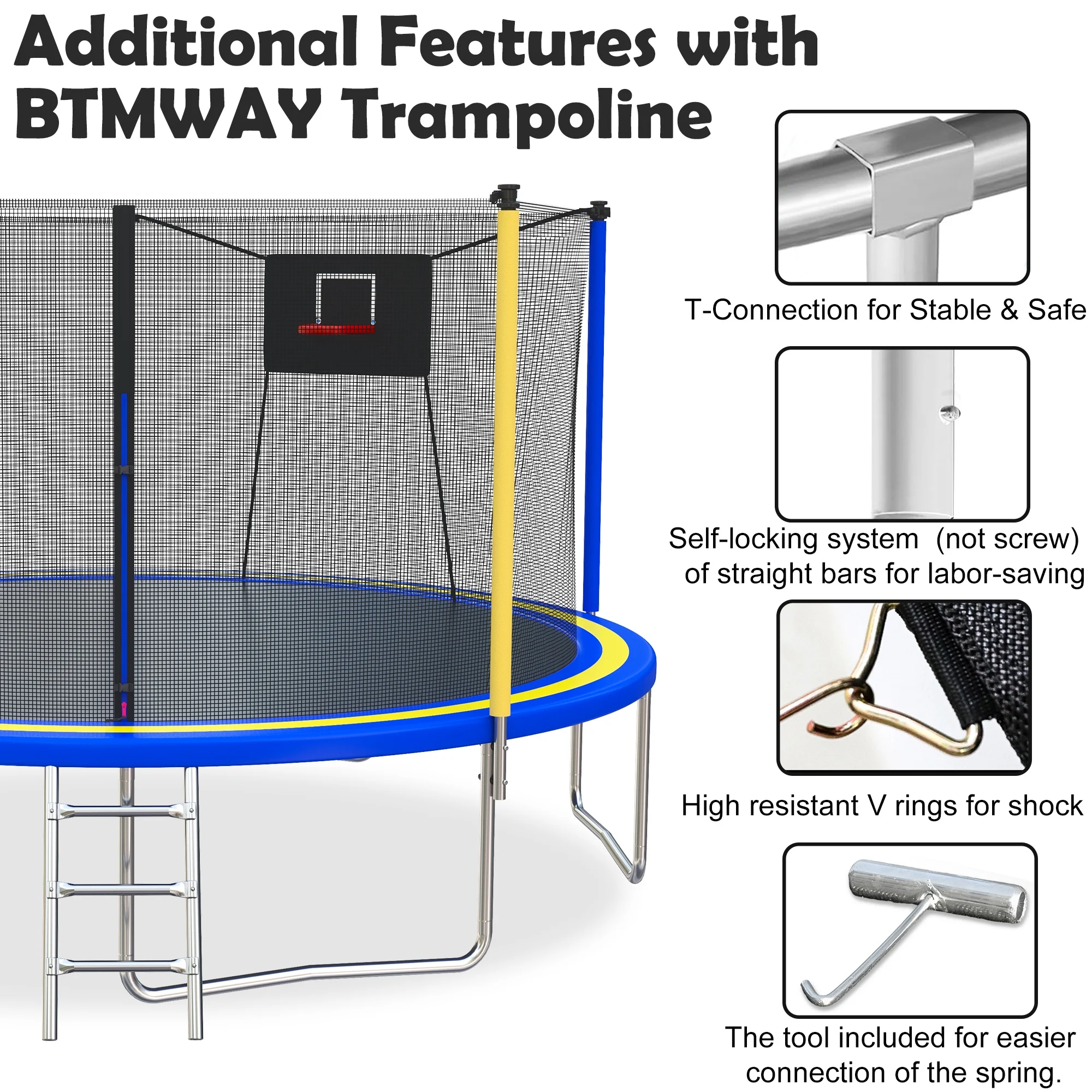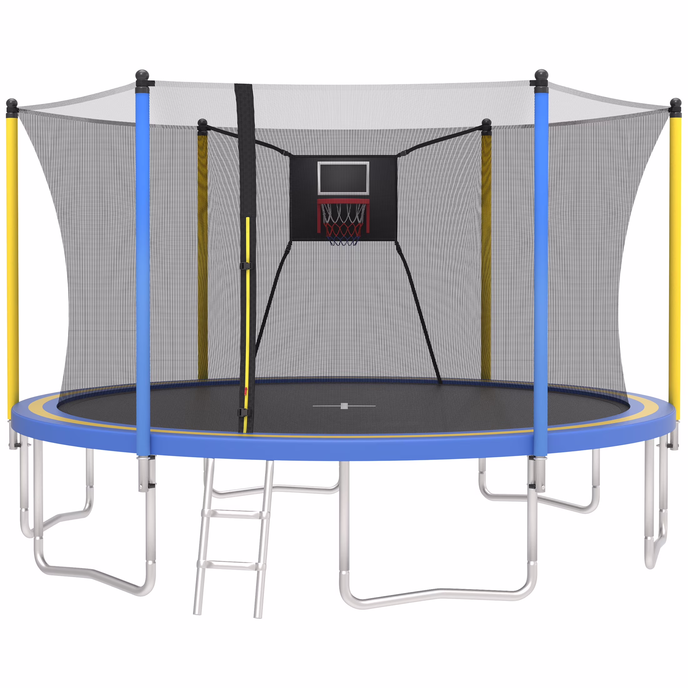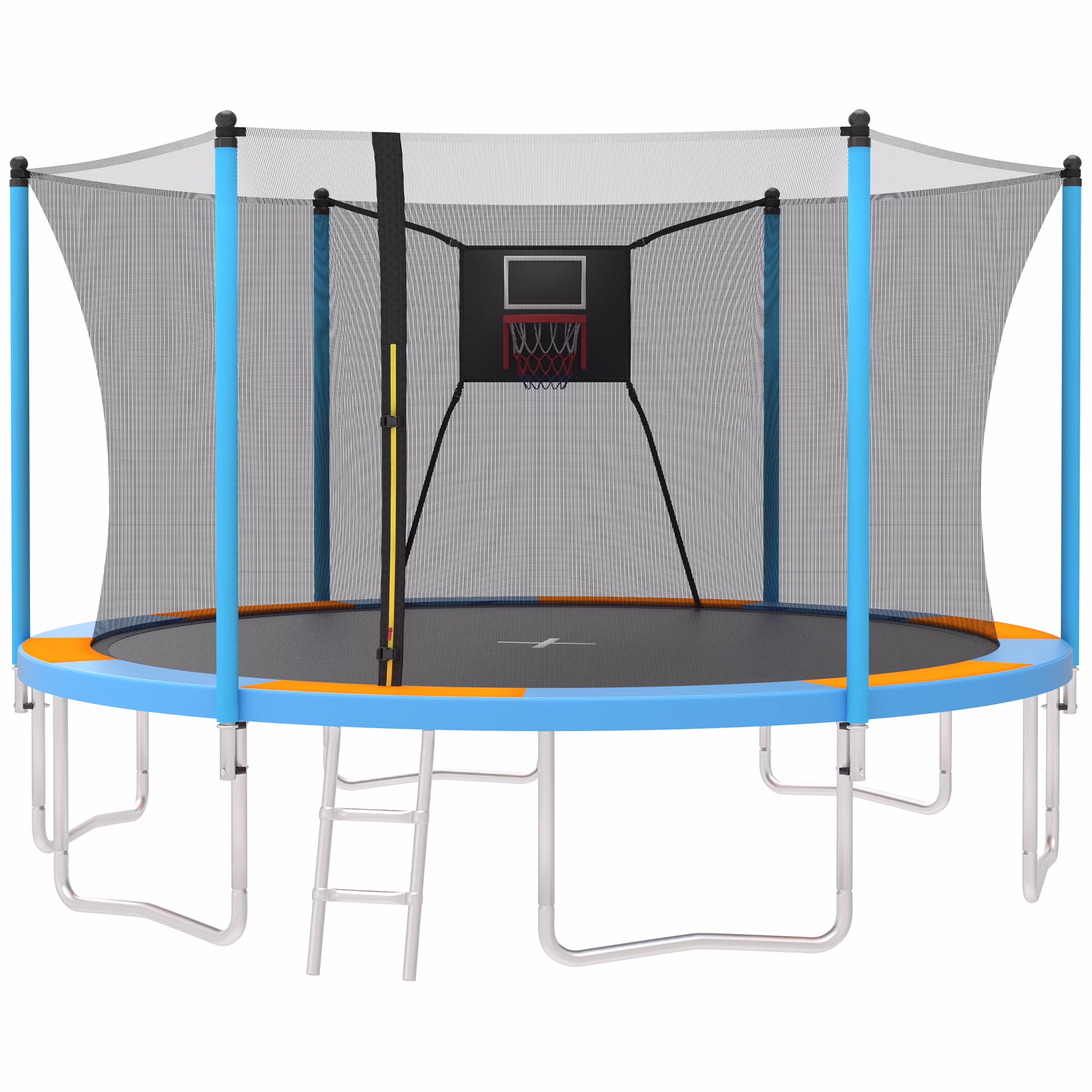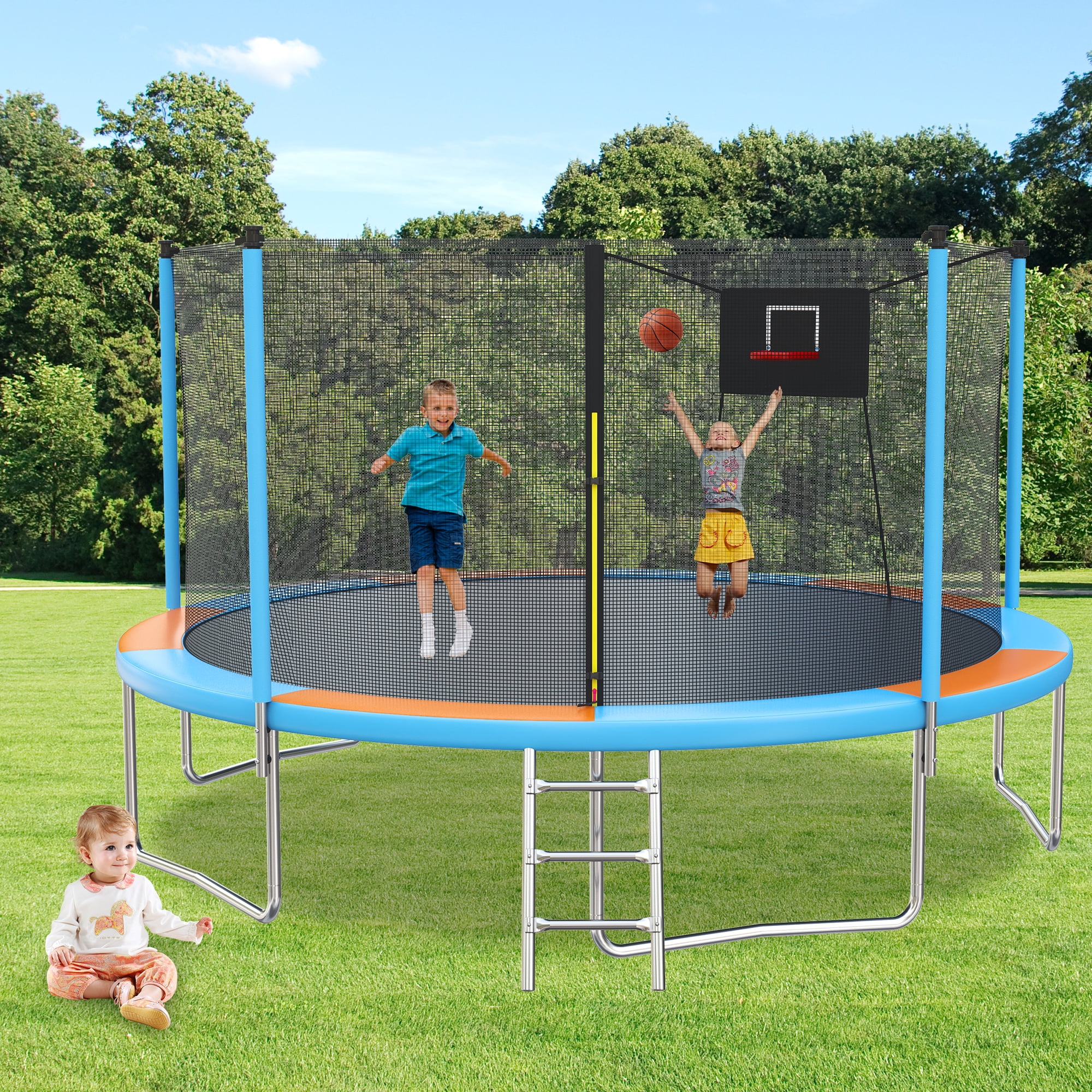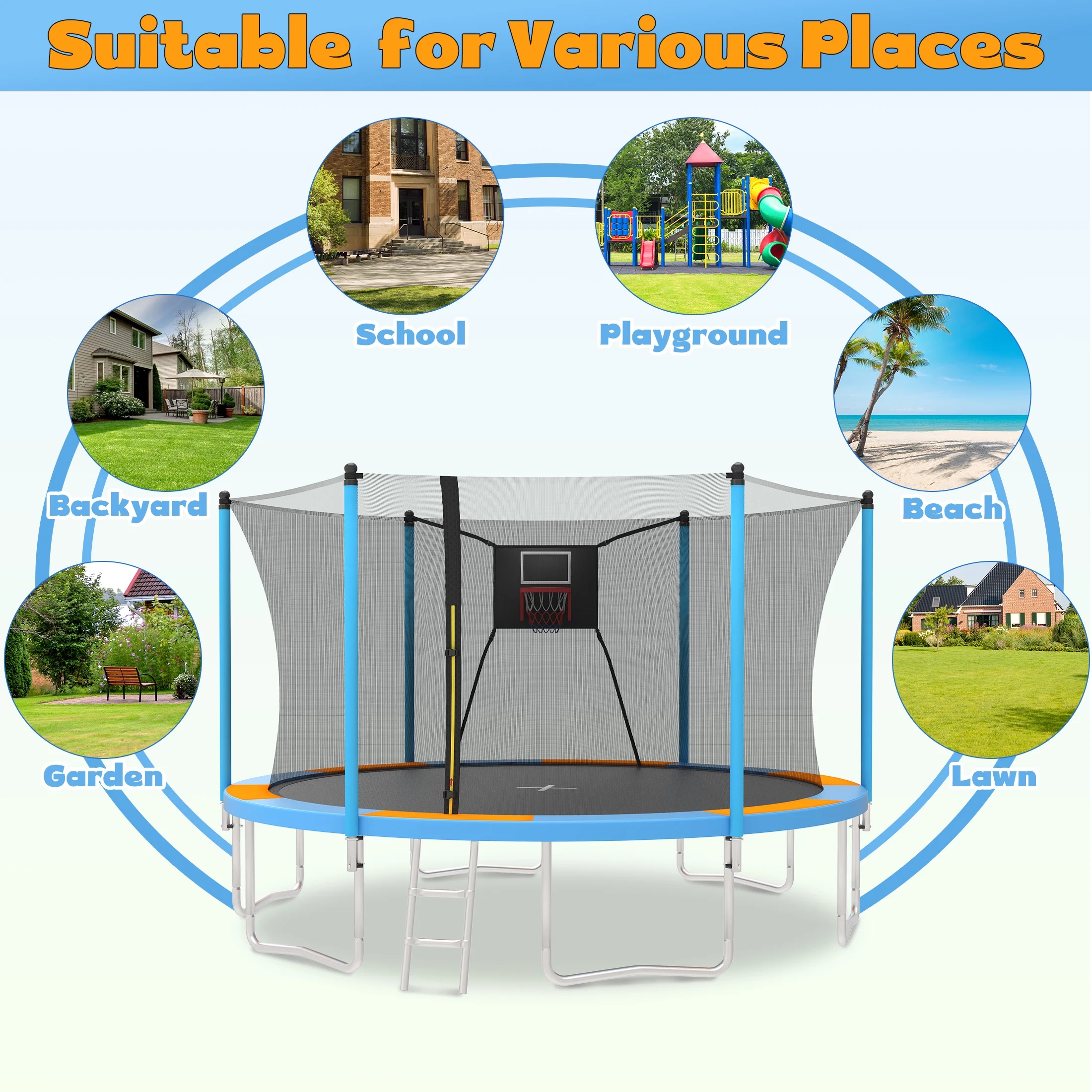 SHINPT 14ft Trampoline for Kids, Outdoor Trampoline with Net, Big Trampoline with Basketball Hoop and Ladder, Heavy Duty Trampoline with No - Gap Design, Backyard Trampolines for Adult
