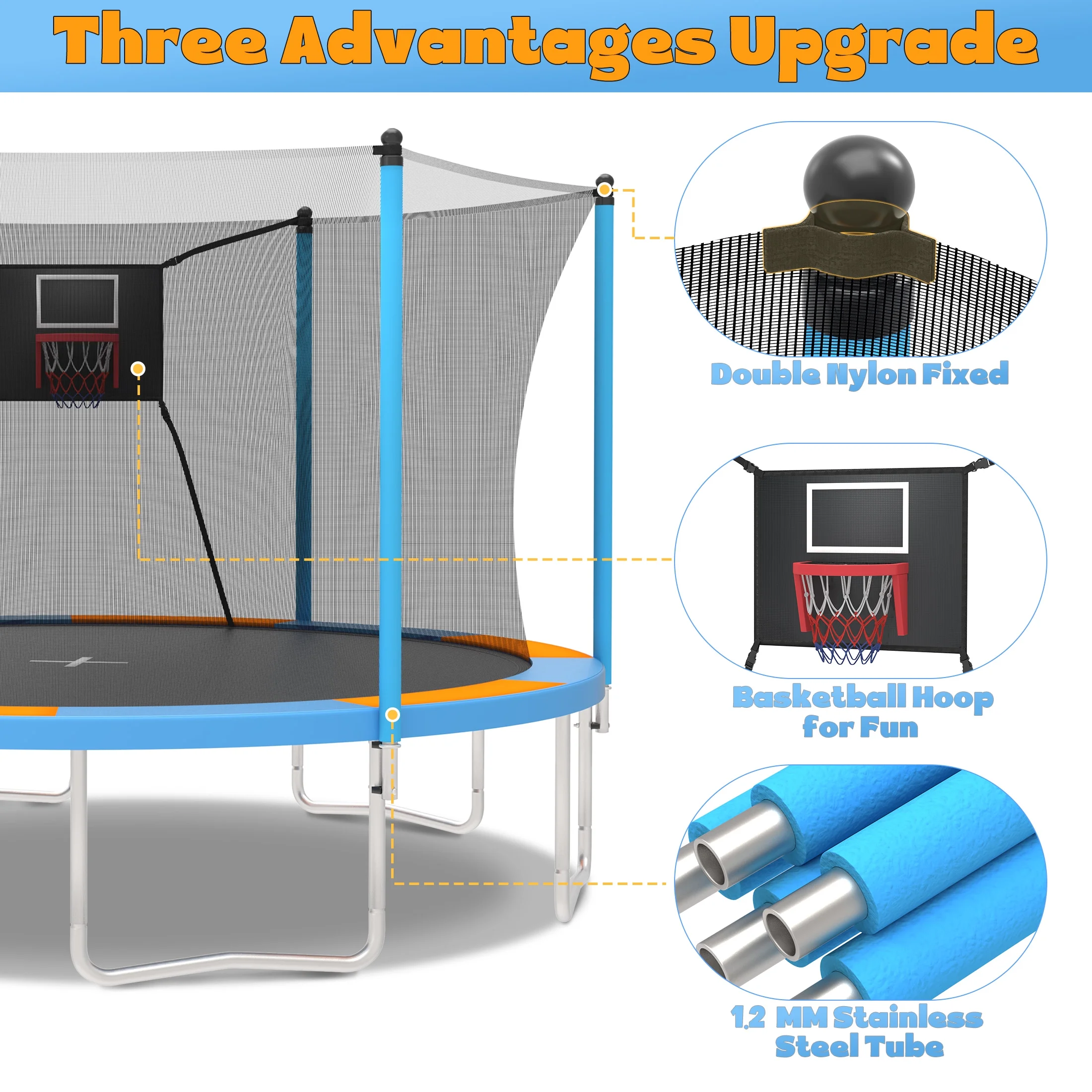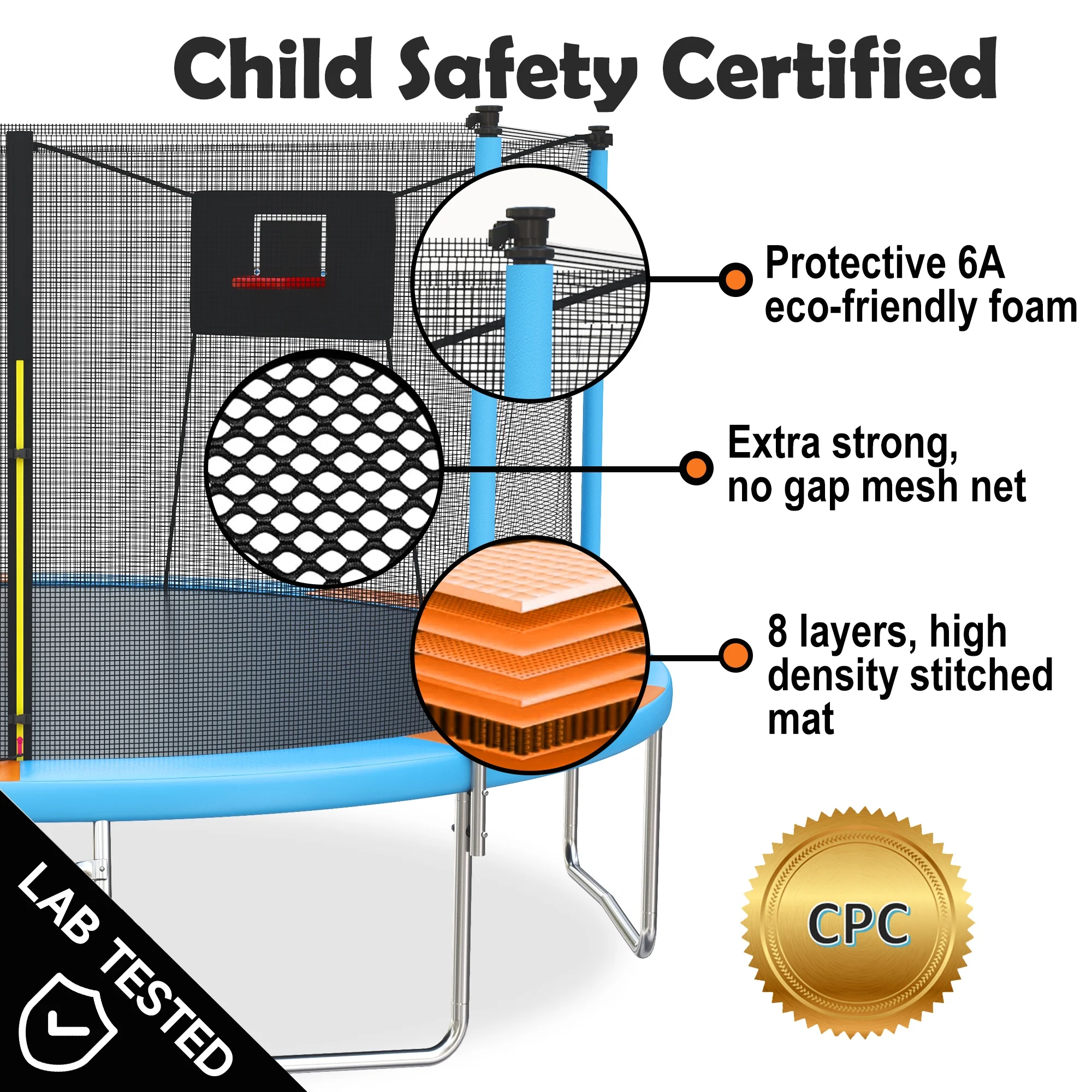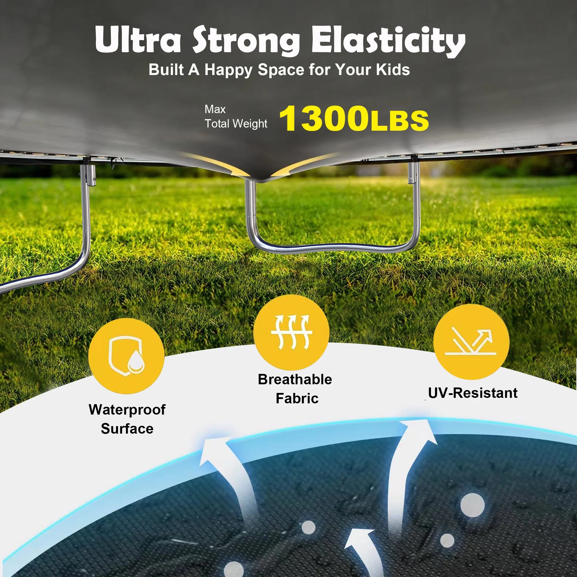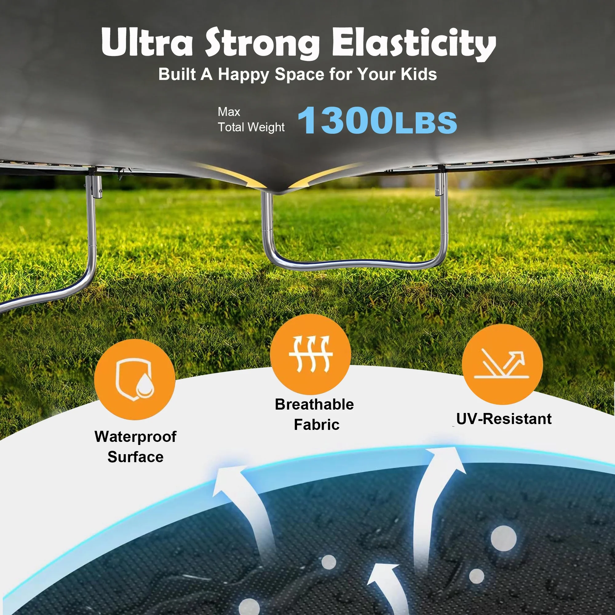 🏆[1300 LBS Weight Capacity]: This outdoor trampoline for kids can support up to 1300 lbs of weight and can accommodate up to 8 kids playing together. The 360 ° safety net also ensures safety during jumping.
