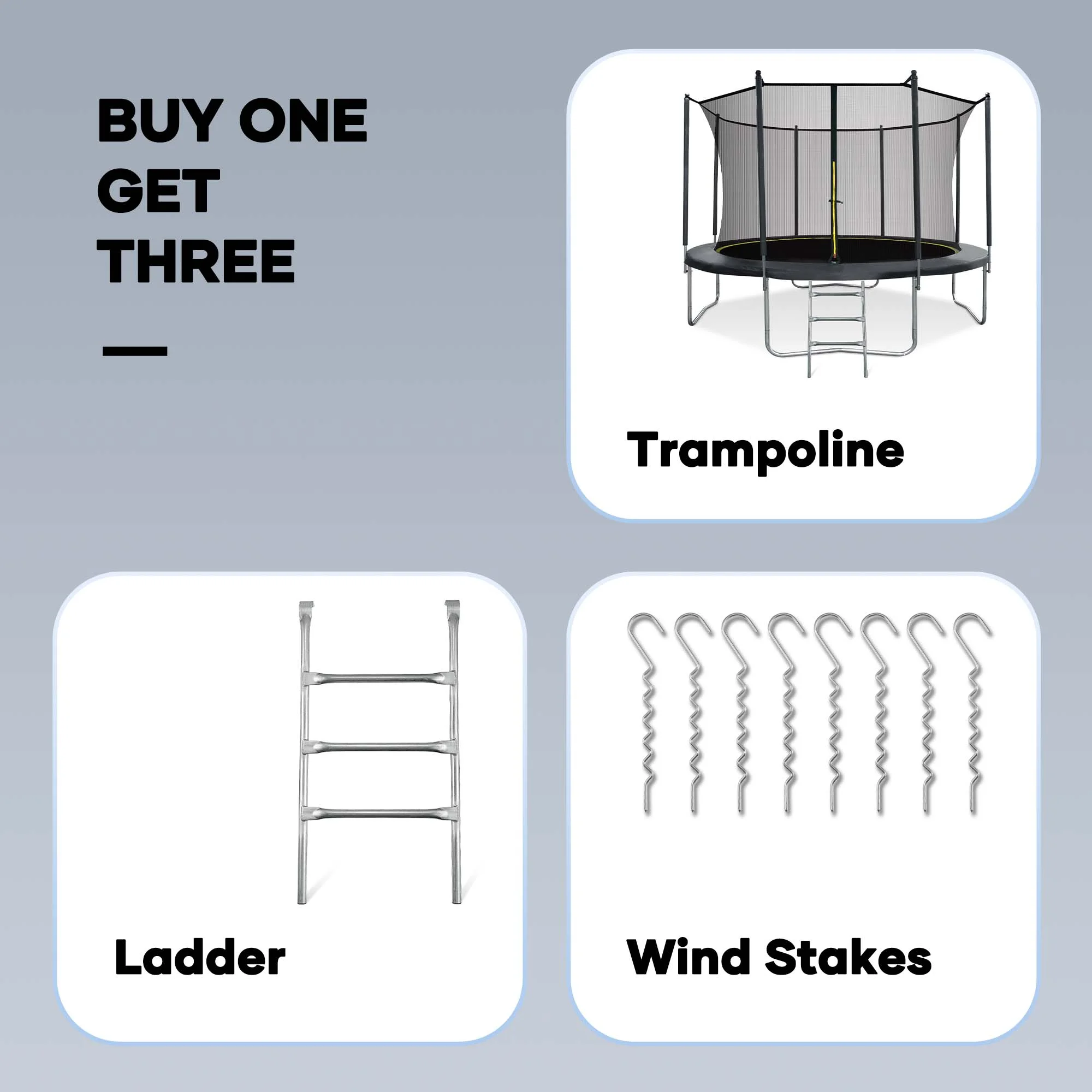 - Additional windproof piles make the outdoor trampoline as stable and firm as the indoor trampoline, effectively preventing the trampoline from shaking due to wind and other factors during use, and ensuring the safety of children playing.