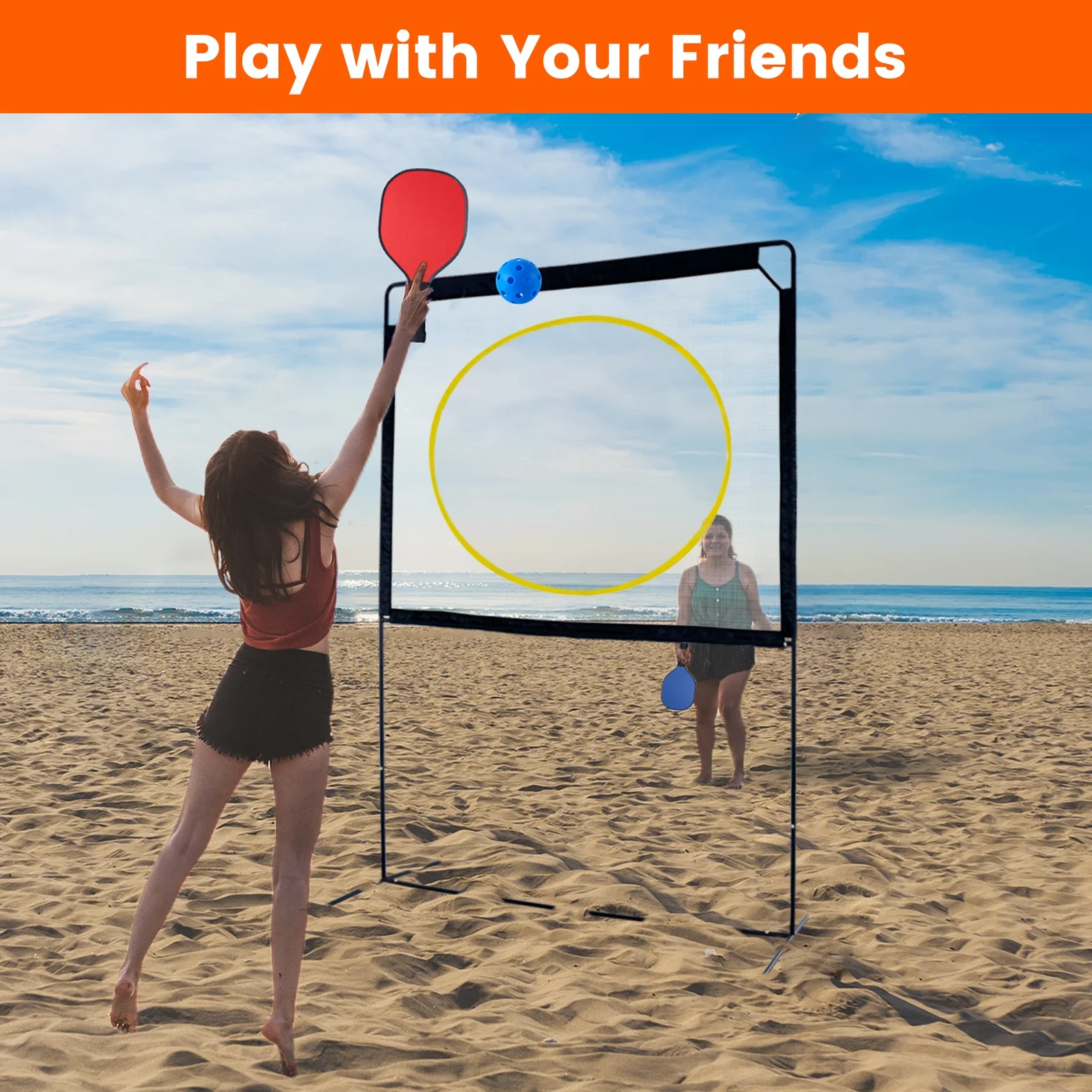 【EASY PORTABILITY & QUICK ASSEMBLY】: The portable paddle ball set includes a multi-functional storage bag for hassle-free transport. With press-and-pop poles, assembly takes just 5 minutes. Enjoy unforgettable games with family and friends in the backyard, beach, park, and beyond—joy multiplied!