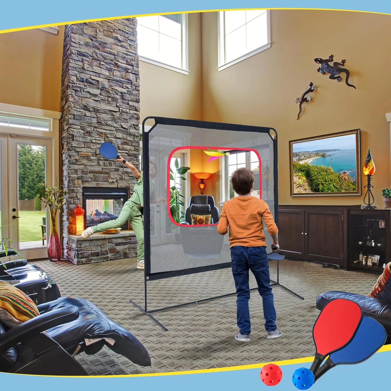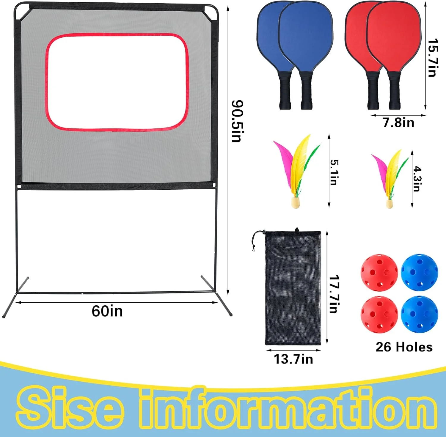 【VERSATILE PLAY OPTIONS】: Slsy paddle ball game ensures endless fun, We have designed the right height for the pickleball ball equipment, with a total height of 87.7 inches, which is perfect for outdoor or indoor. Set up the net effortlessly for exhilarating matches anywhere.