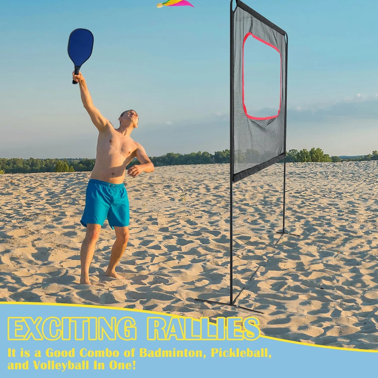 【PROFESSIONAL DESIGN & DURABILITY】: Crafted with high-quality aluminum pipes, the frame is lightweight yet sturdy. The PE net features a thickened edge for enhanced durability, and 8 ground nails ensure secure outdoor placement on lawns, beaches, and more.