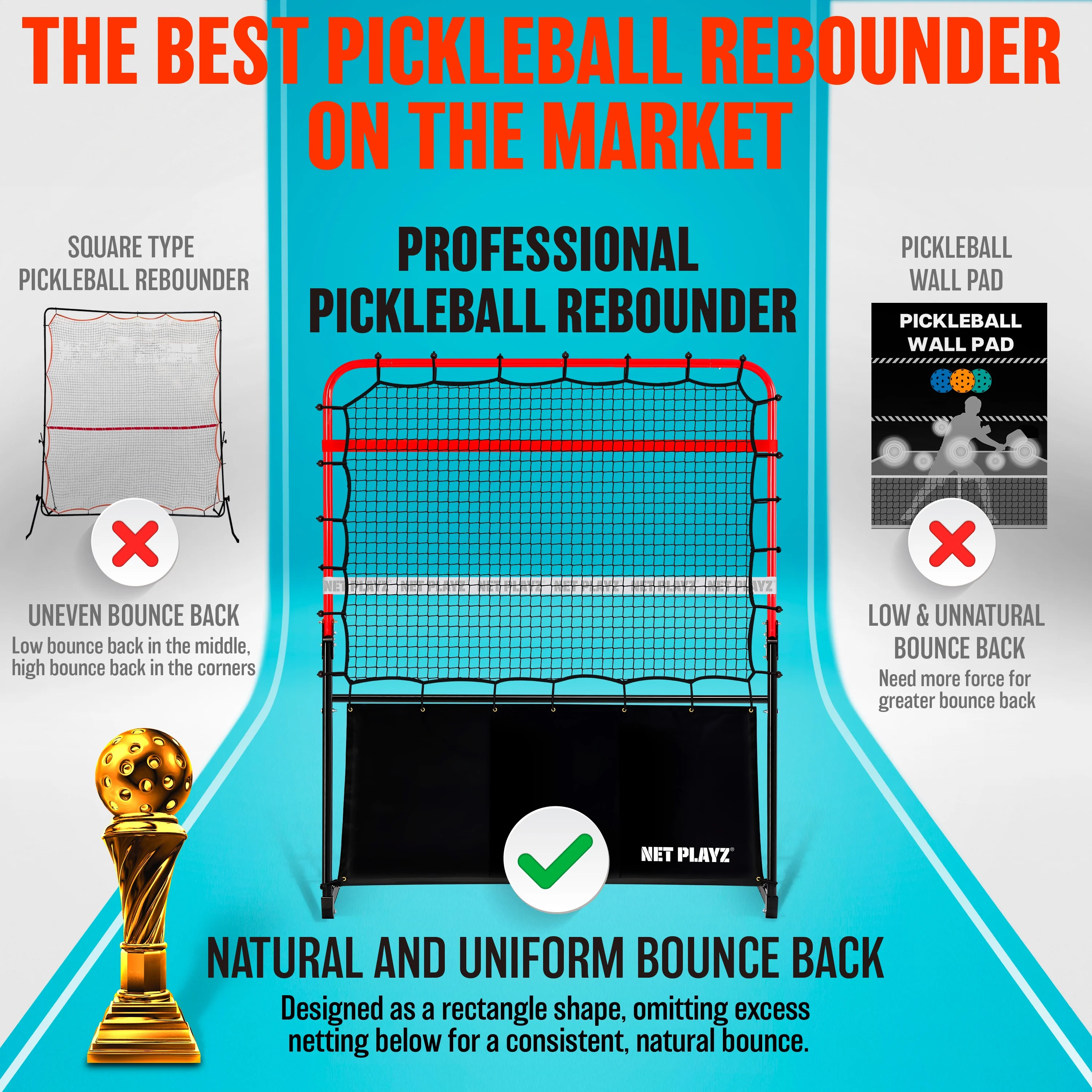 - Experience the Bounce Advantage - Net Playz breaks the mold with a revolutionary rectangular design that eliminates the uneven bounce common in square-shaped rebounders. Our design minimizes excess netting below the hitting surface, resulting in a natural and uniform bounce back that perfectly mimics a real pickleball court. Unlike others' square rebounders that deliver inconsistent bounces (low in the center, high in the corners, or requiring excessive force for a strong return), the Net Playz Rebounder provides a true-to-life playing experience for optimal skill development.