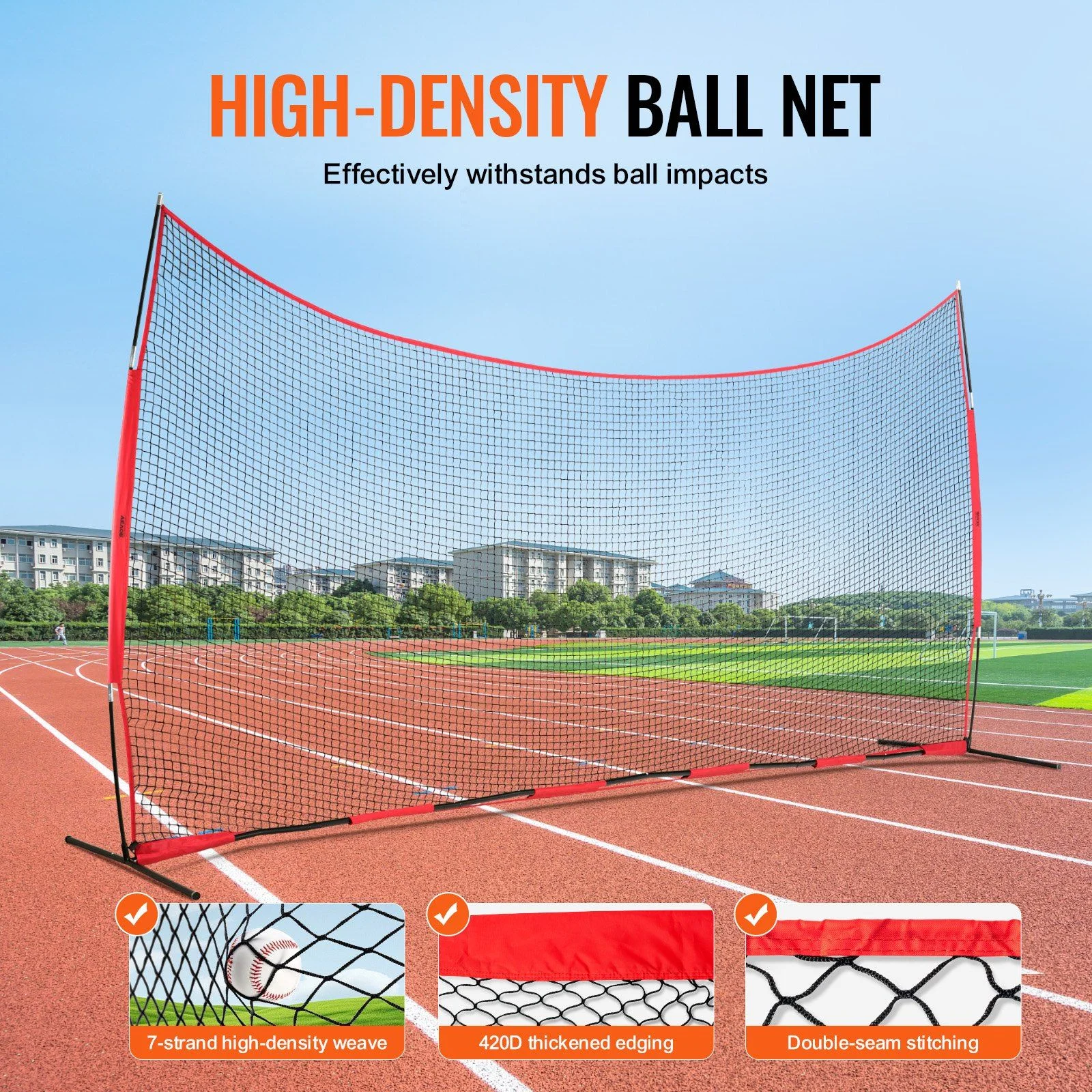 - High-Density Netting: Constructed with 7-ply high-density weaving and reinforced with 420D edging and double stitching, this net is built to withstand ball impacts and effectively block errant shots.