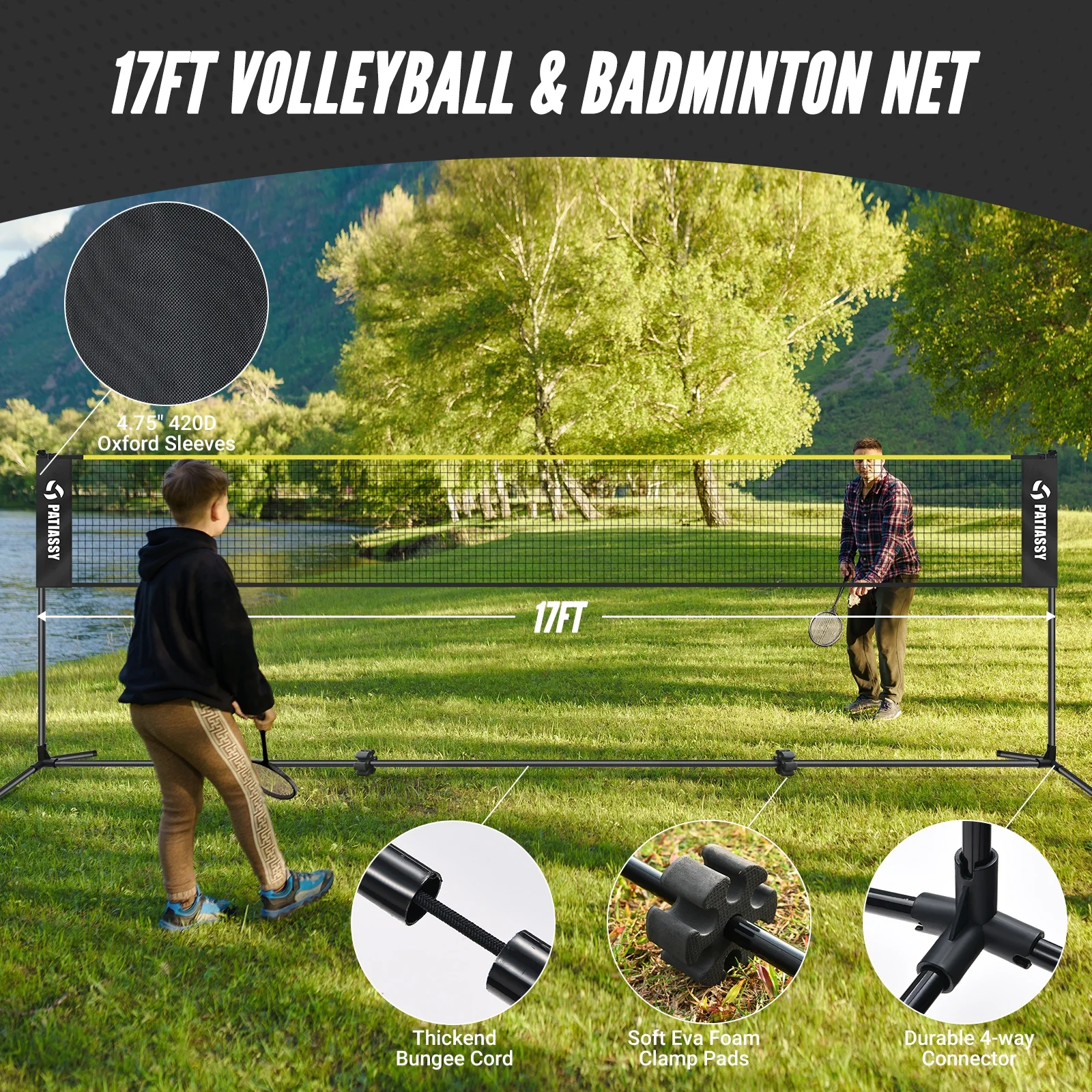 - Height Adjustable: Infinite backyard fun with our versatile net set. The max height of this portable net set is 7.4’ for volleyball, while it can be adjusted to 5.1’ for badminton, or even lower height for pickleball, tennis and soccer