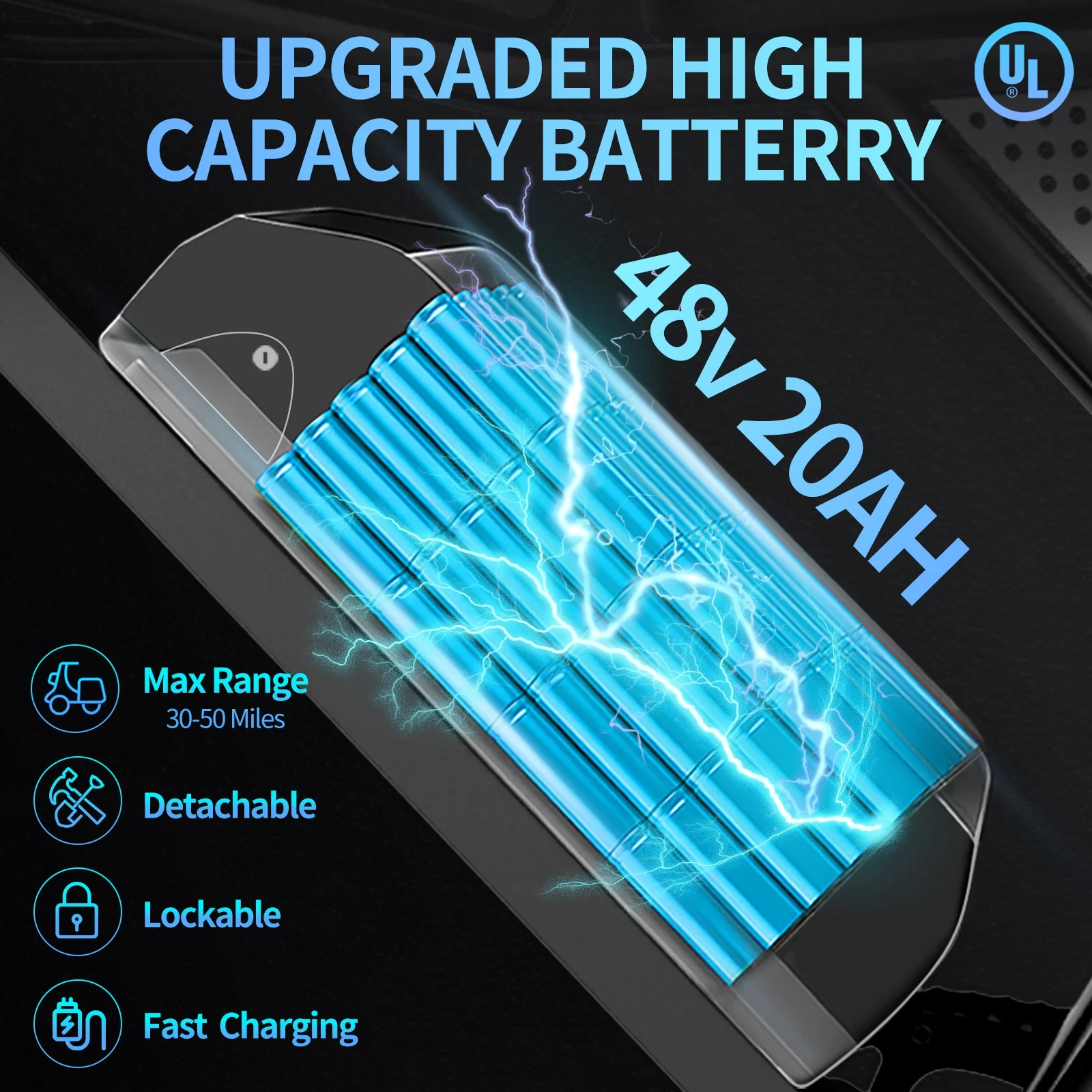 1500W Brushless Motor & Removable 48V 20Ah Battery This electric bike is designed for versatile riding experiences, from urban exploration to off-road adventures. The removable battery charges fully in 6-8 hours and delivers a range of 50-75 miles with pedal assist. With an IP54 waterproof rating, it ensures reliable performance in various conditions, offering you a smooth and enjoyable ride.