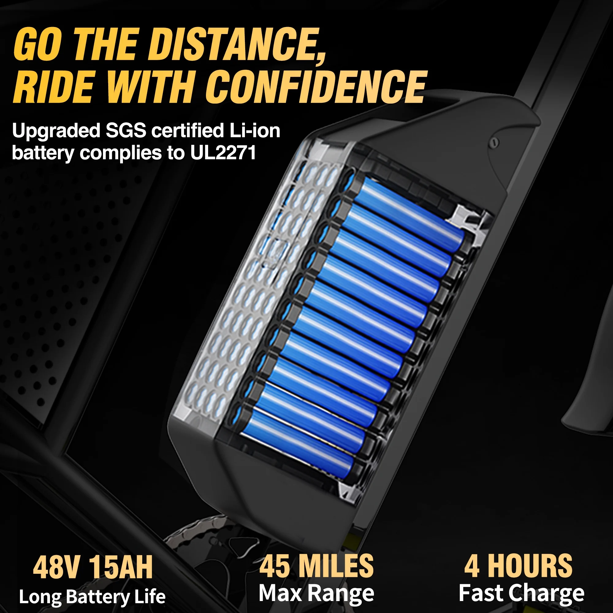 .3 Riding Modes & Extended Range Choose from three versatile riding modes: pure electric, pedal assist, and manual pedaling. In pure electric mode, the bike can travel up to 80-120 km (50-75 miles) on a single charge, depending on rider weight and terrain. This makes it an excellent choice for extended rides and varied landscapes.