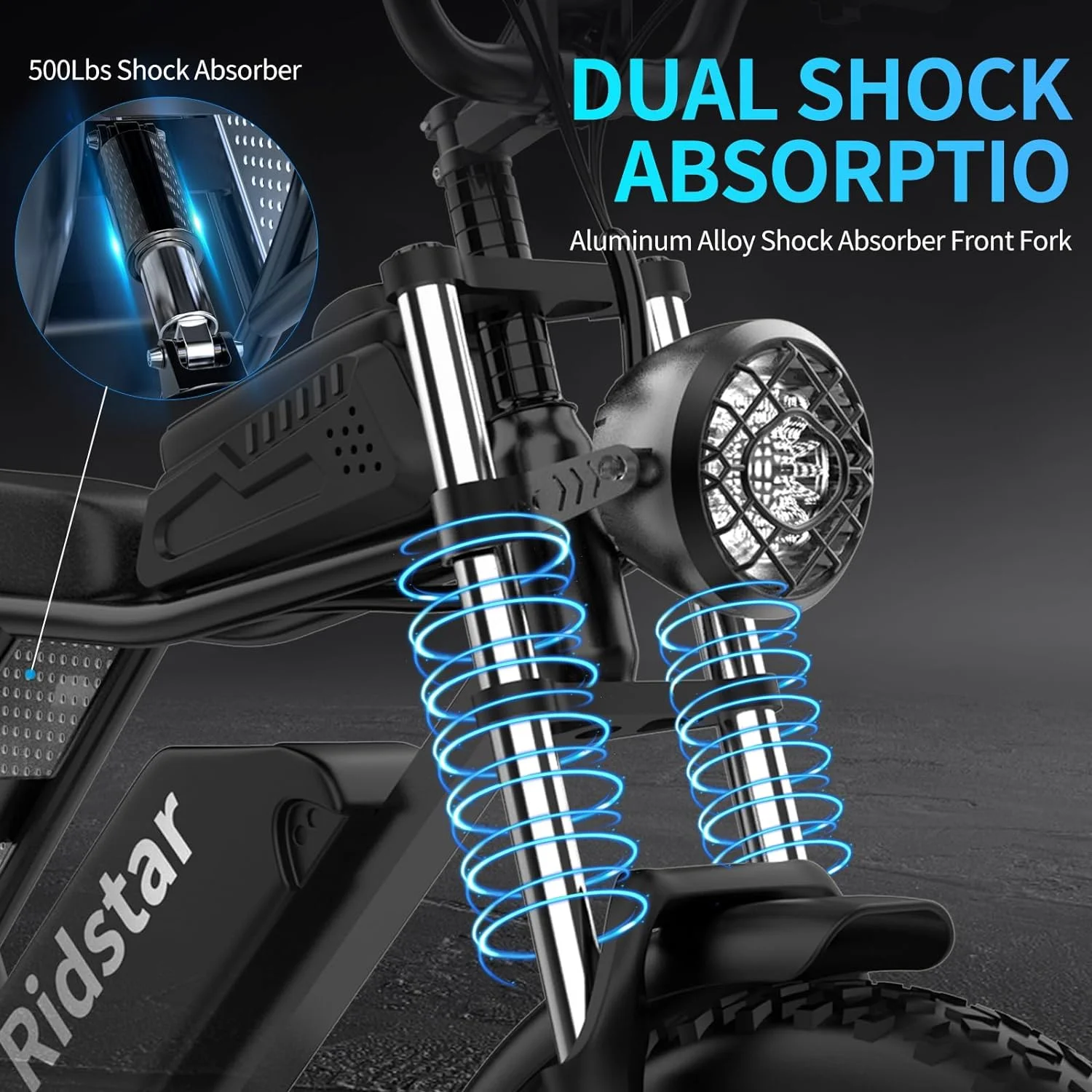 Shimano 7-Speed & Front/Rear Shock Absorbers This electric bike features a robust front suspension and rear shock absorber, effectively minimizing vibrations and providing superior control on uneven surfaces. With a 7-speed Shimano drivetrain, you can effortlessly switch gears and tackle inclines of up to 35°. It supports a maximum load of 330 lbs, making it suitable for both adults and teenagers.