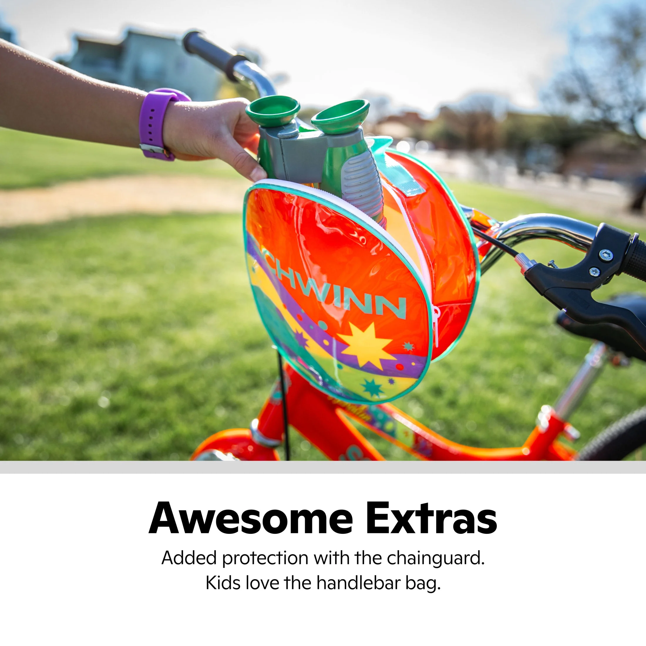 - AWESOME EXTRAS: Added protection with the chainguard. Girls love the cute handlebar bag.