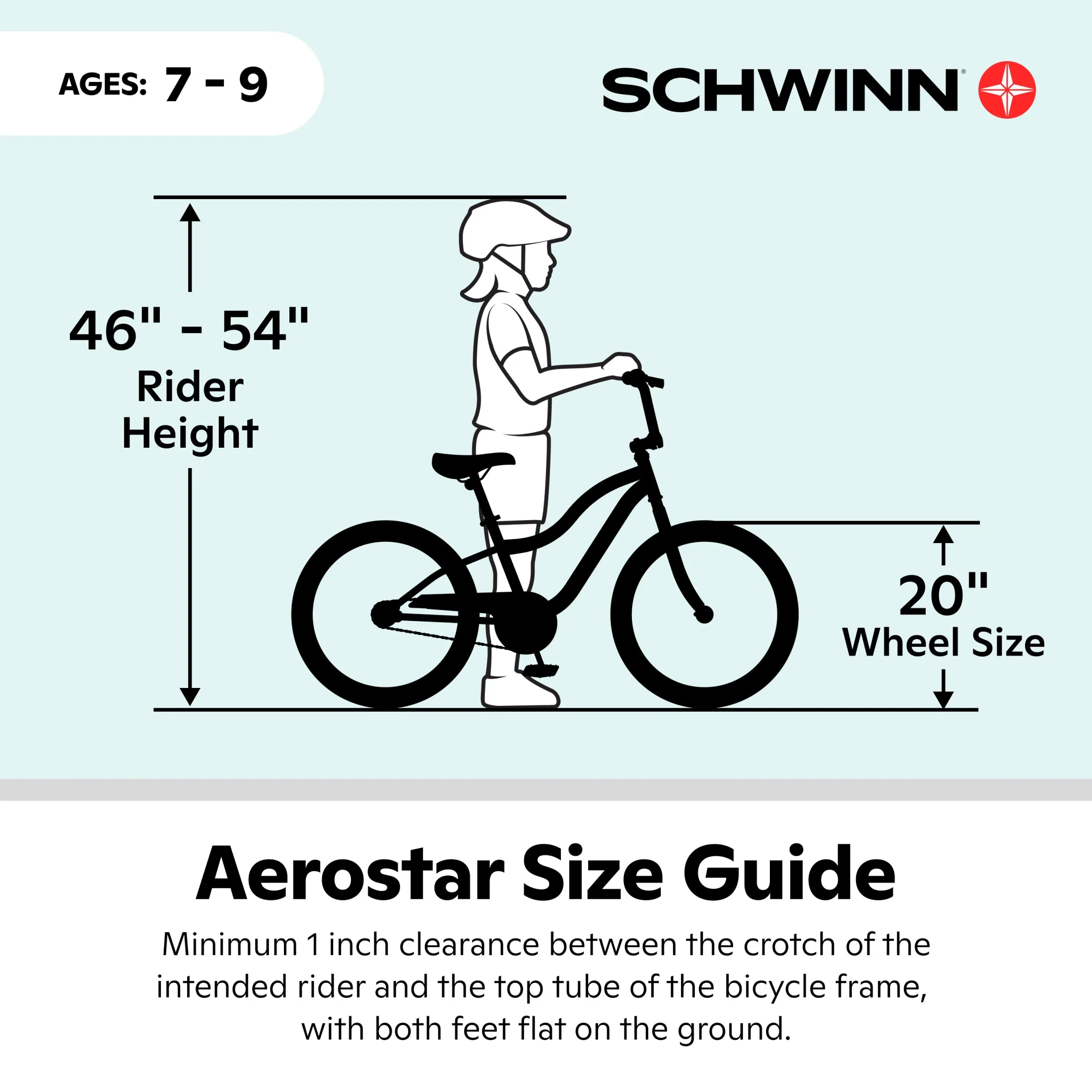 - TRUSTED SCHWINN QUALITY: Trusted by parents, designed in Madison, Wisconsin. The Aerostar is a BMX-style kids’ bike for teaching your little one to ride. 20-inch wheels fit riders 46 to 54 inches tall.
