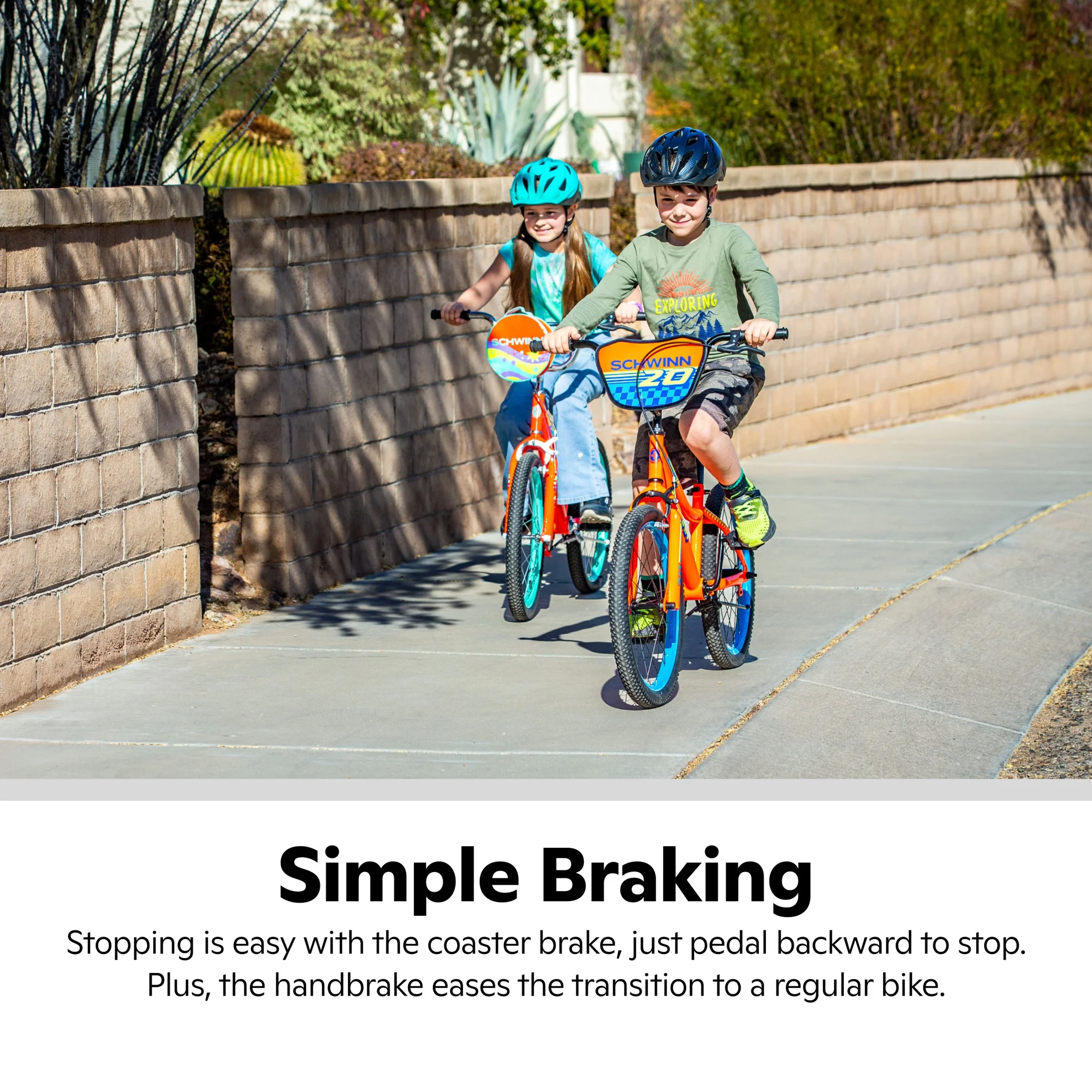 - SIMPLE BRAKING: Stopping is easy with the coaster brake, just pedal backward to stop. Plus, the handbrake eases the transition to a regular bike when they’re ready.
