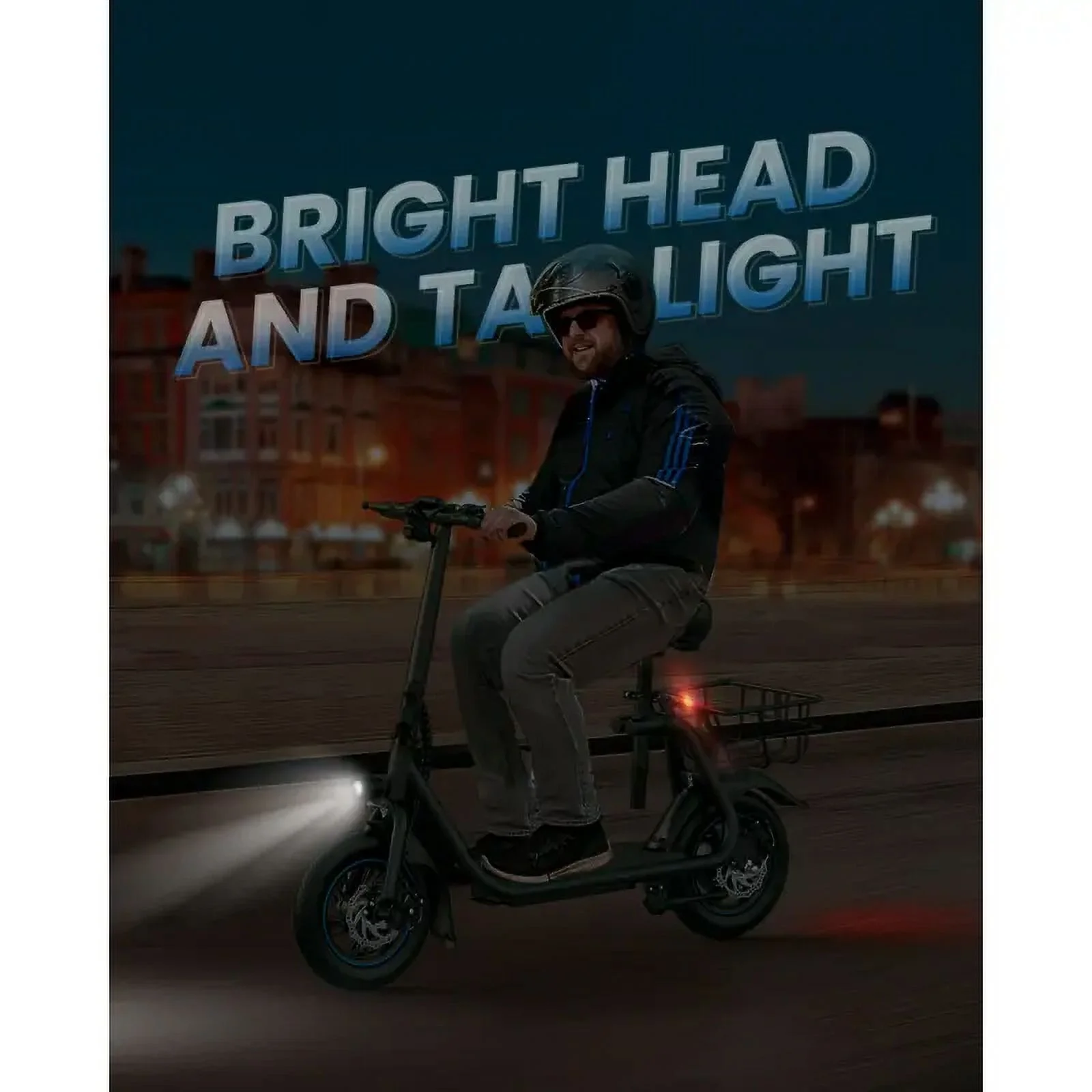 - SAFETY FIRST: High-brightness headlight and rear brake light ensure visibility and safety during night rides. Dual Disc Brake: The effective dual disc brake system provides excellent stability and control, enabling progressive and safe stops. Exclusive Bar Lock: Prevents accidental dislodging of the stem, enhancing safety.