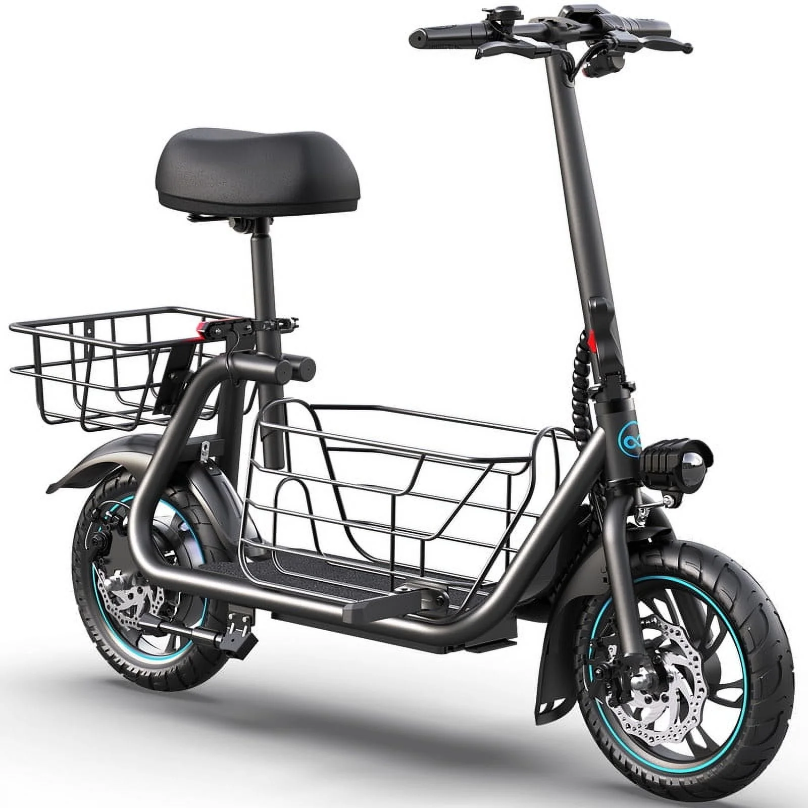 - SPACIOUS STORAGE: Featuring a large detachable middle basket and a small rear basket, this bike offers ample storage space, making transportation of bulky items a breeze. Wide Deck: The 9.5" wide deck offers plenty of room for your feet or even a small pet. Shock-Absorbing Tires: Equipped with thick and sturdy 12" tires that absorb most shocks, providing a smooth and comfortable riding experience.