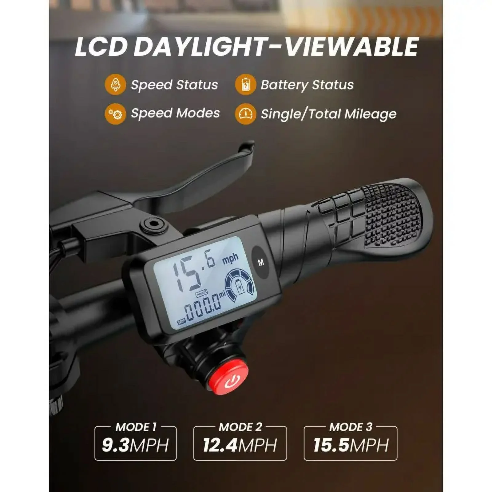 - DIGITAL DISPLAY: The LCD display provides real-time information on battery level, current speed, speed mode, single and total mileage, ensuring you stay informed throughout your journey. Legible Screen: The screen remains legible even in sunlight, preventing any inconvenience during your ride.Safety Certified: This product has passed UL2272 certification, ensuring it meets stringent safety standards.
