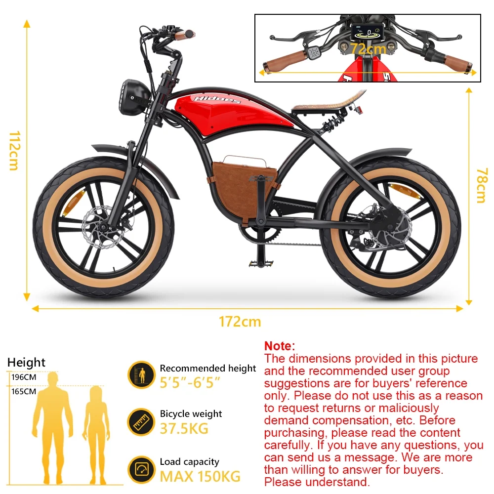 Battery Type: 48V 13Ah(with Peak 1000W Brushless DC Motor)