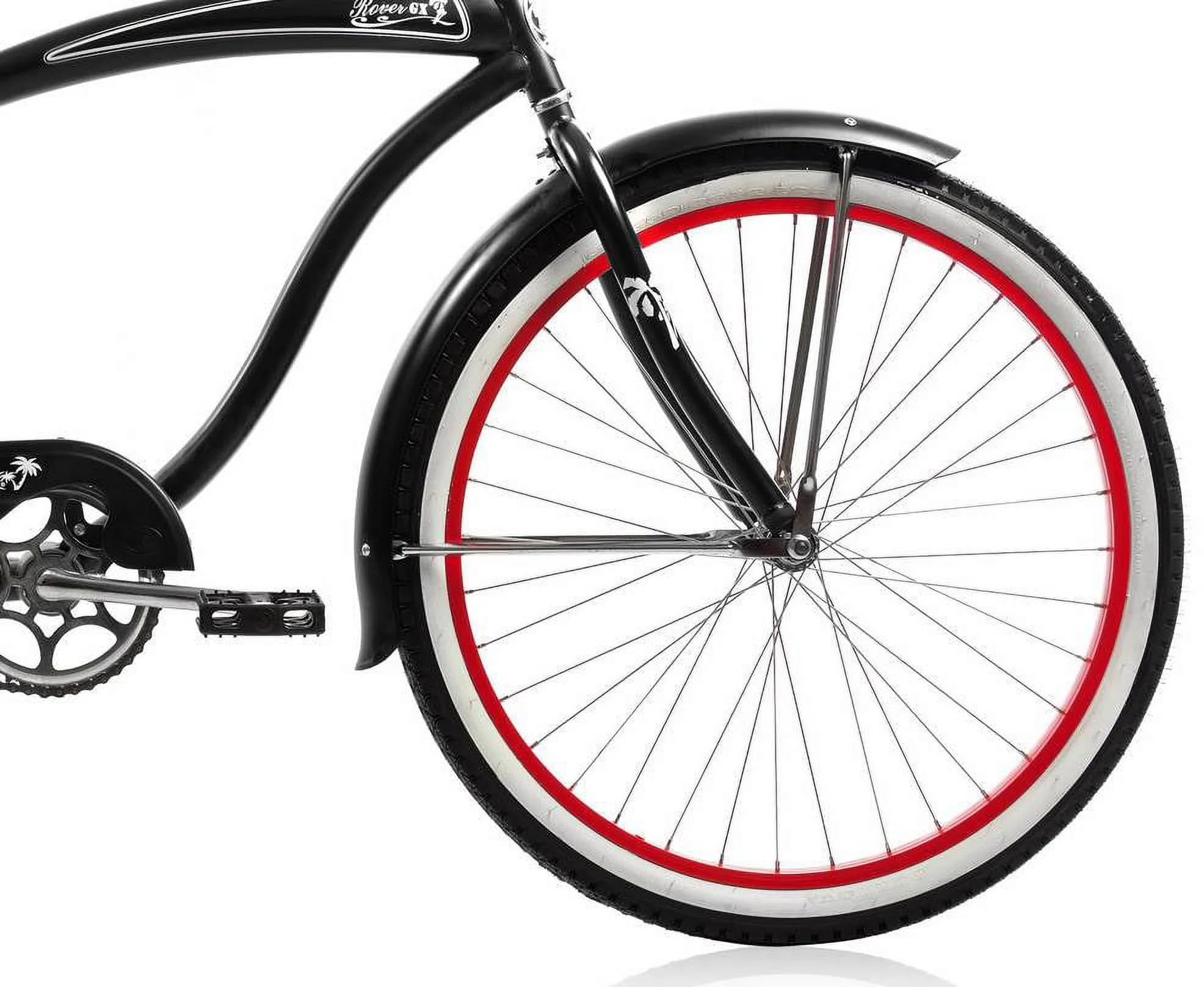 Micargi ROVER GX 26" Beach Cruiser Coaster Brake Single Speed Stainless Steel Spokes One Piece Crank Alloy Red Rims 36H White Wall Tire With Fenders Color: Black/Red Rim🔥Today's Deal