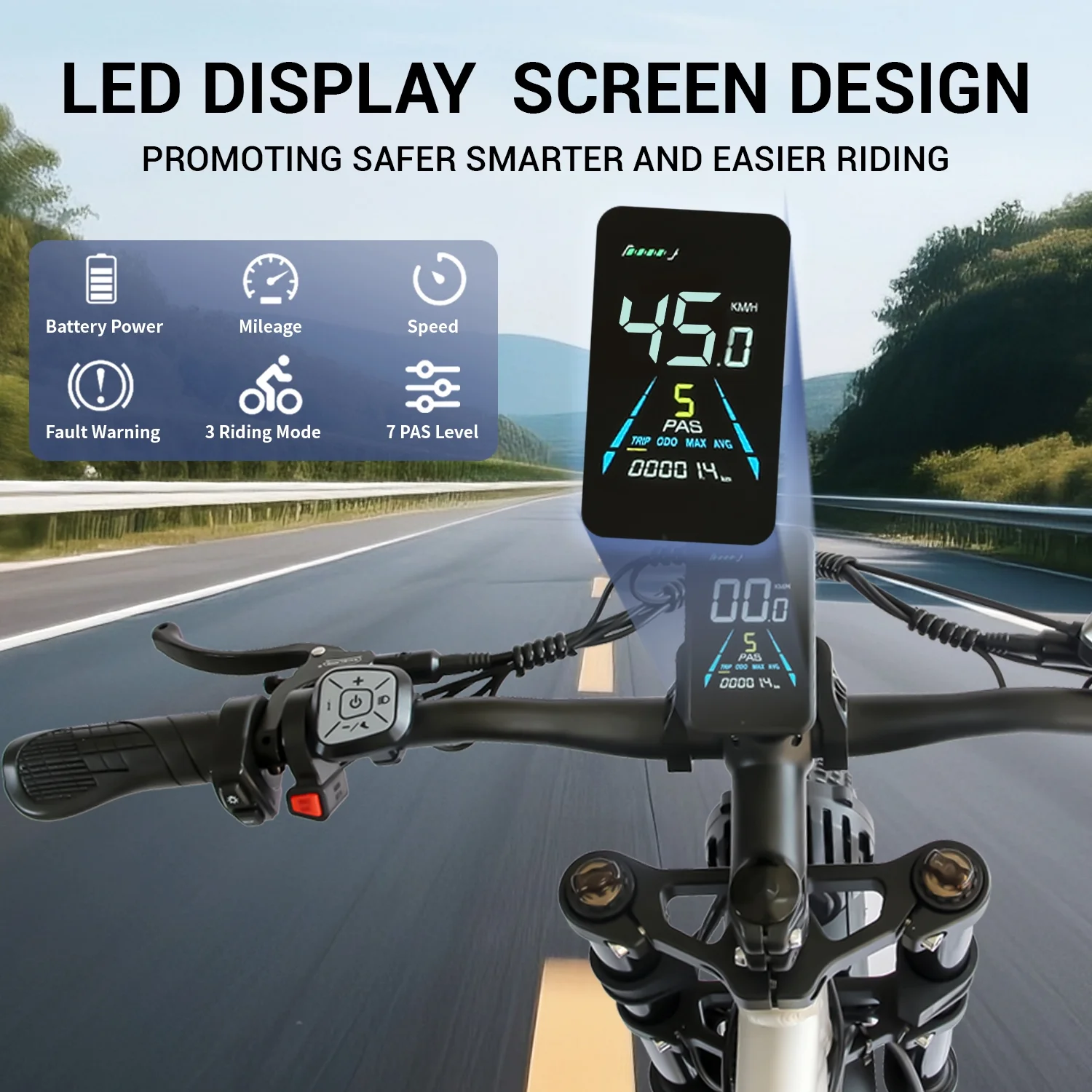 All-Wheel Drive (AWD) System:Dual-motor AWD ensures maximum traction and stability, making this e-bike perfect for hunting, mountain adventures, and winter commuting.