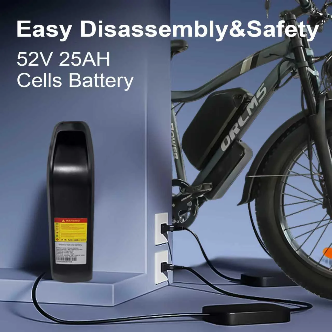 - 52V 25Ah High-Capacity Battery:Ride farther and longer with an extended-range lithium battery, offering up to 60+ miles per charge* (varies by terrain and riding mode).