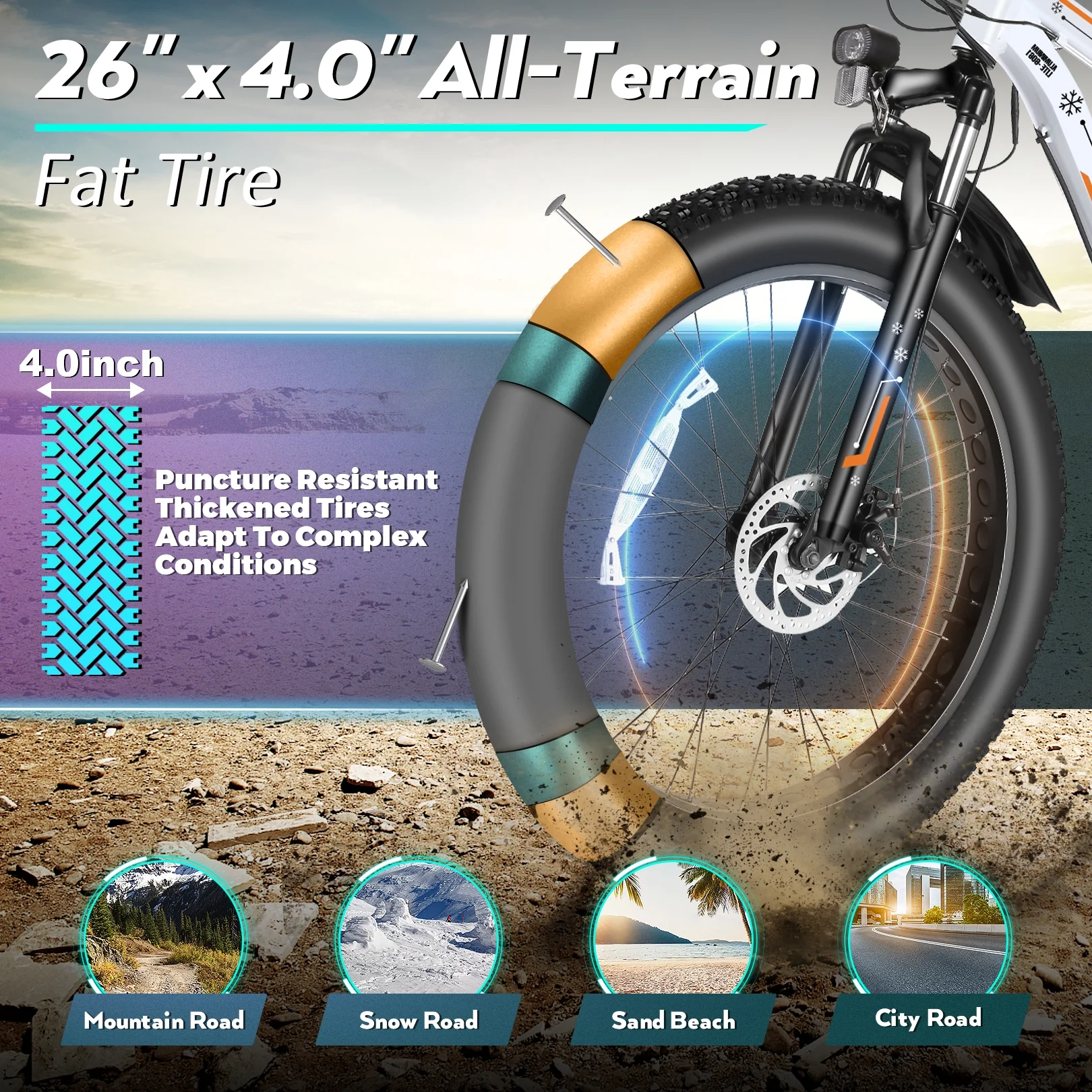 Tires: Professional Mountain 26"*4.0 anti-skid tires