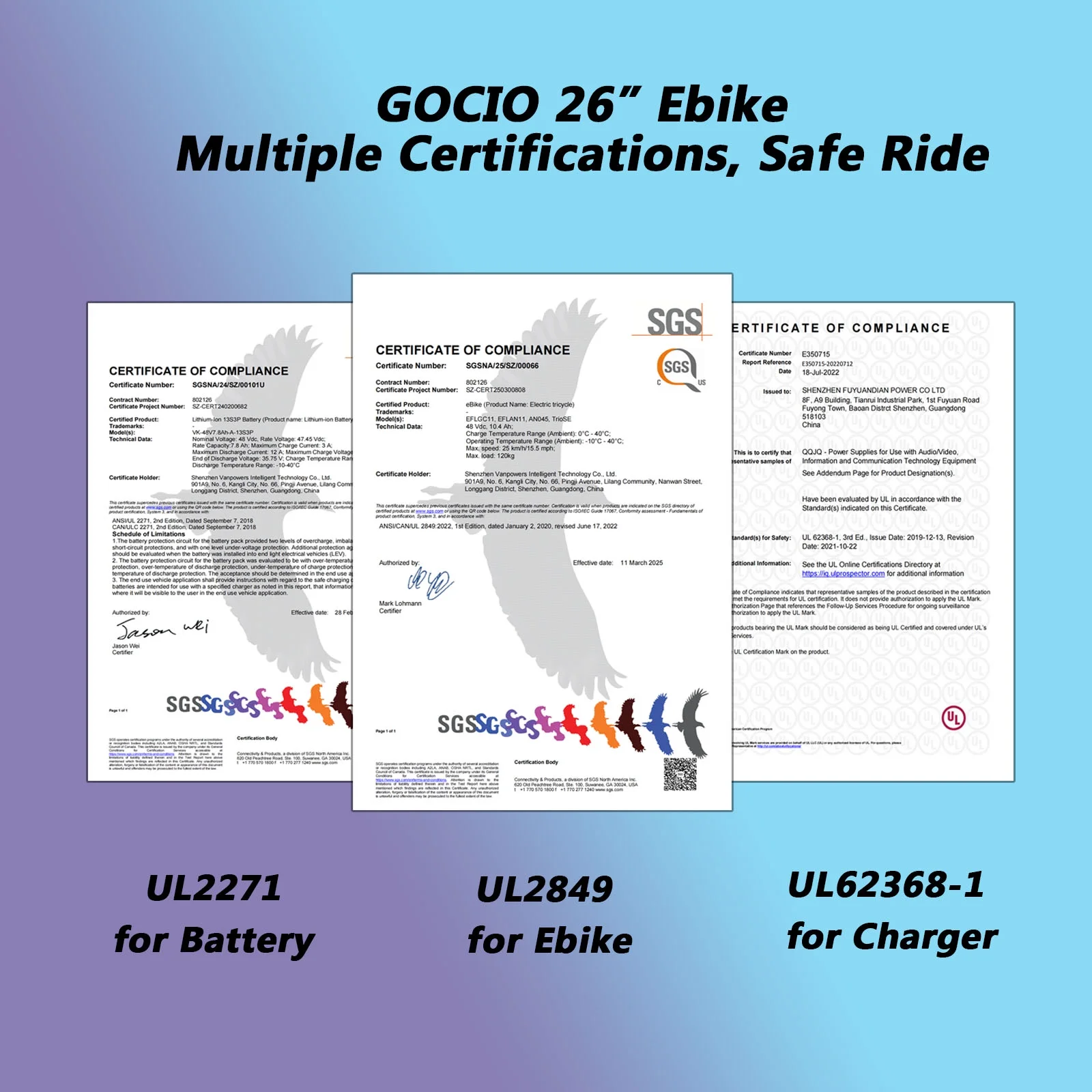 Battery:48V/13Ah Lithium Ion Battery(UL 2849 Certified)