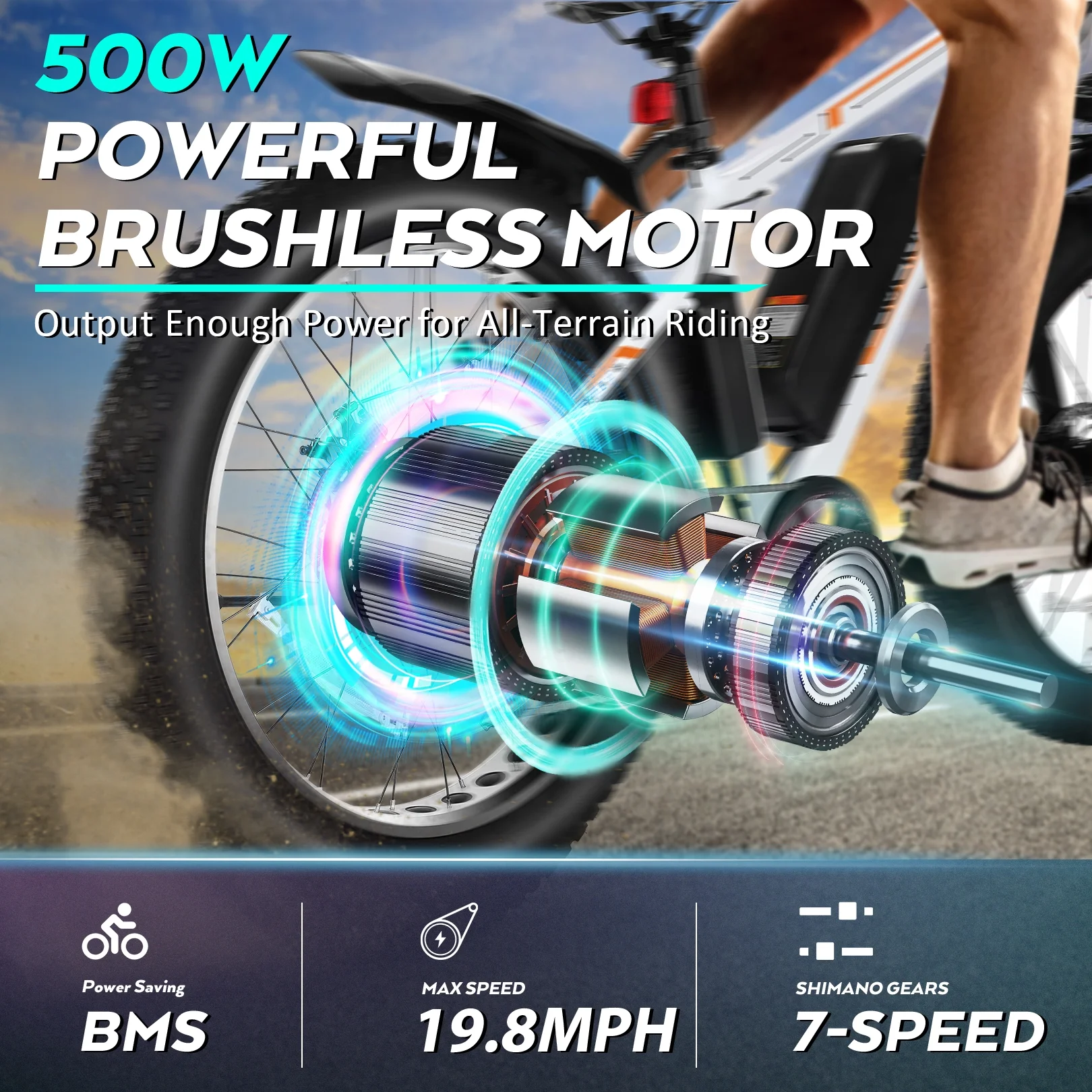 - 500W Powerful Motor: Equipped with 500W high-speed brushless motor, max climb ratio is 30%, much stronger than those 350W/250W ones, providing more than enough to power your daily, a cruise on the mountain, or a meander along your favorite trail.