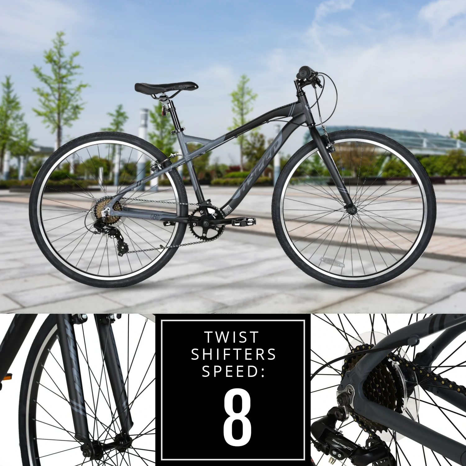 - Speeds: 8-speed twist-shifters