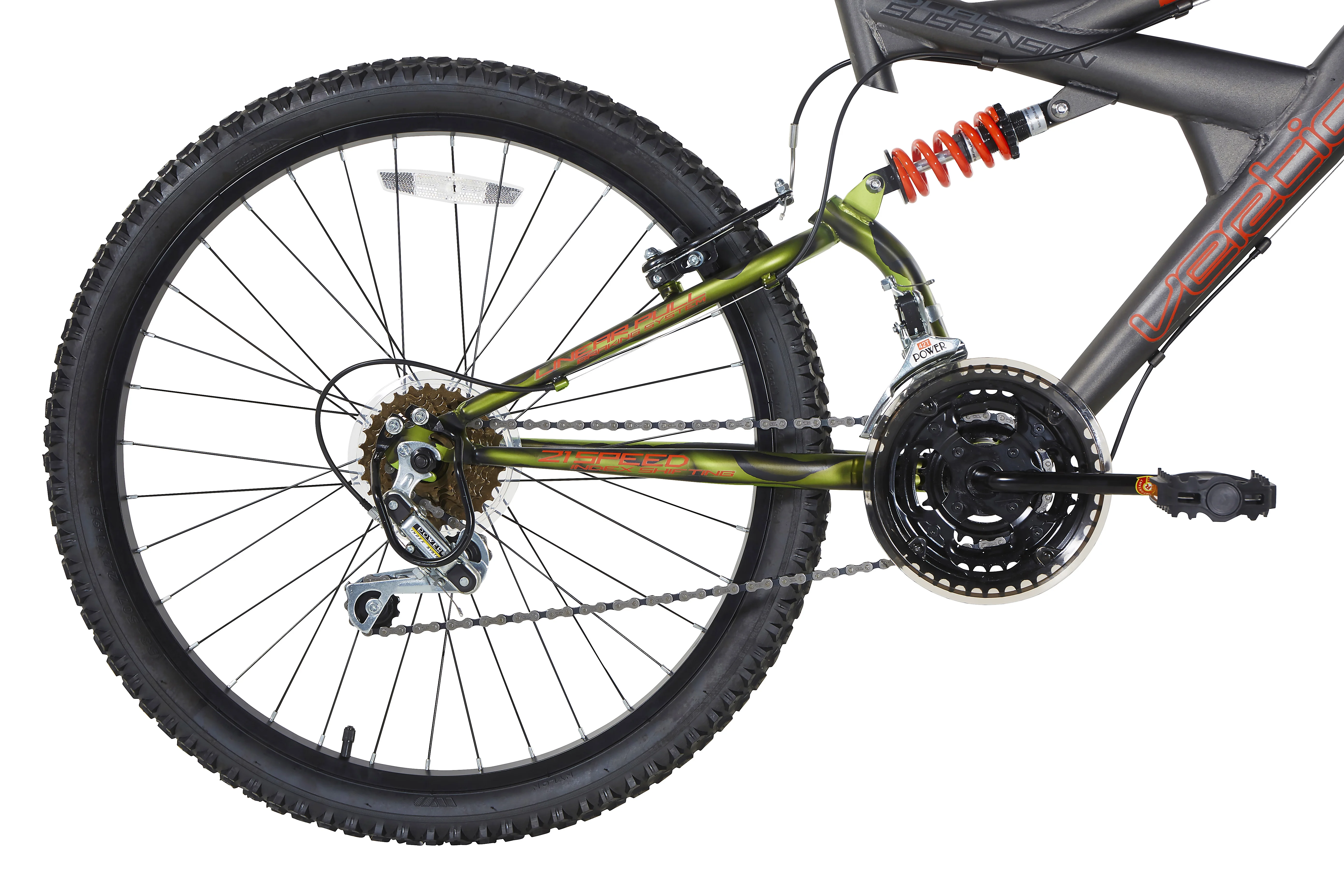 - Front and rear V brakes with alloy levers provide reliable stopping power.