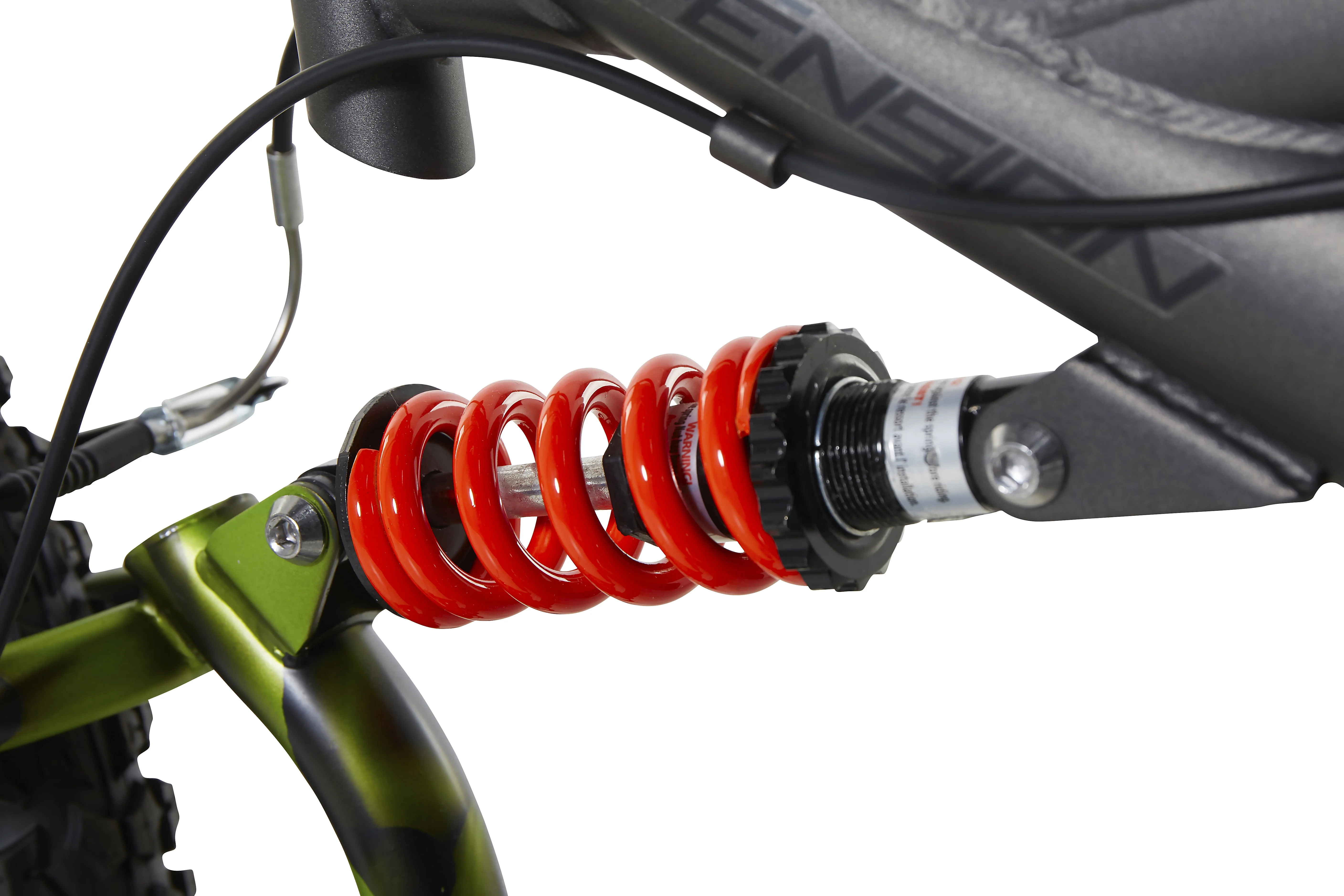 - It features a full-suspension mountain bike frame for a smooth ride.