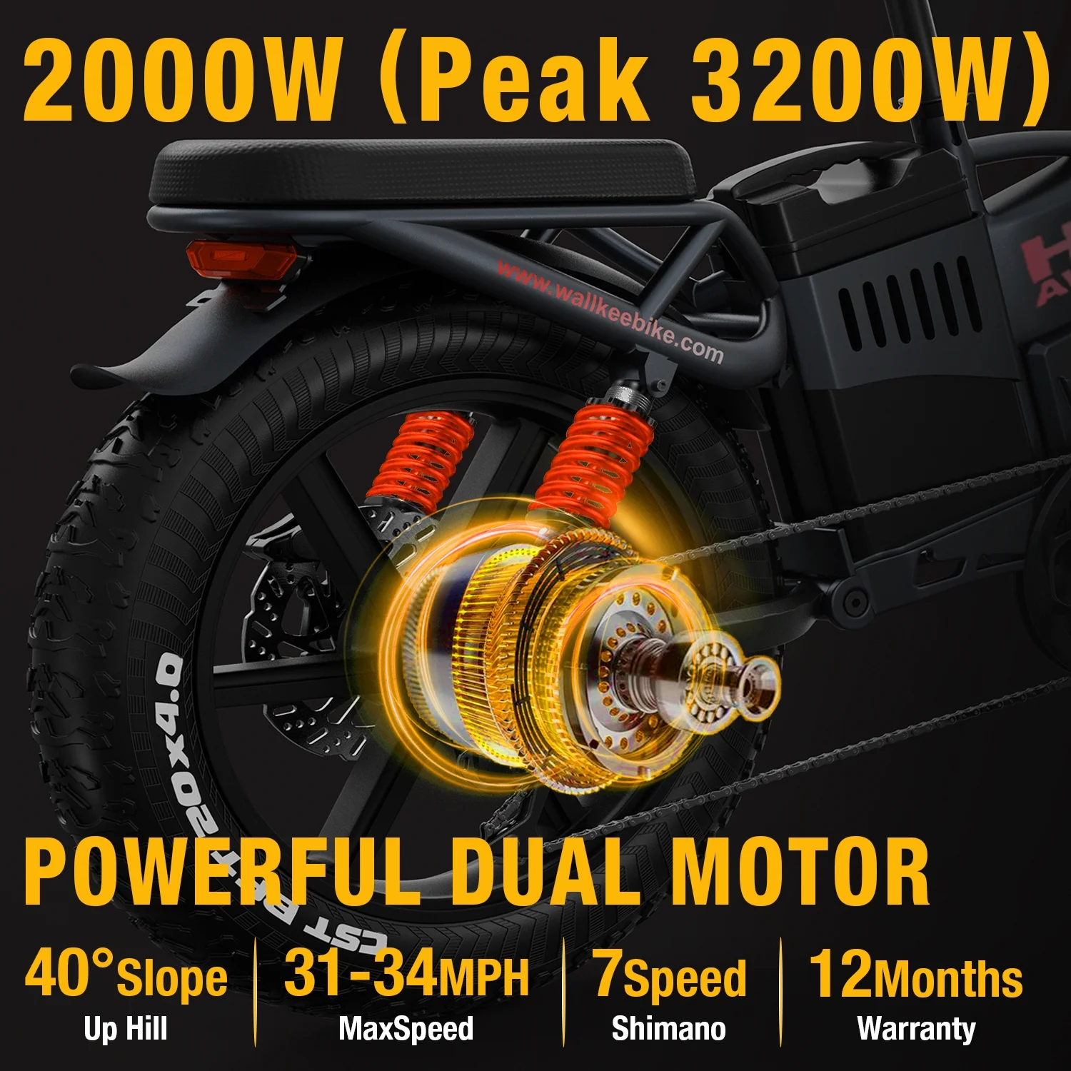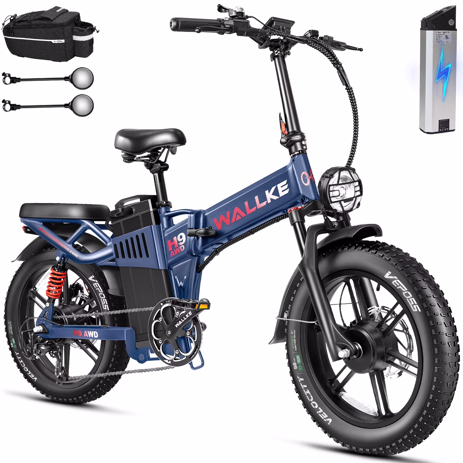 Wallke H9 AWD 3200W Dual Motor Electric Bike for Adult, 82ah 48V Dual Battery Long Range E - Bicycle, 31 - 34MPH Fast Ebike, 20" Fat Tire Offroad Full Suspension Folding, 3mm Aluminum Alloy Frame, UL2849