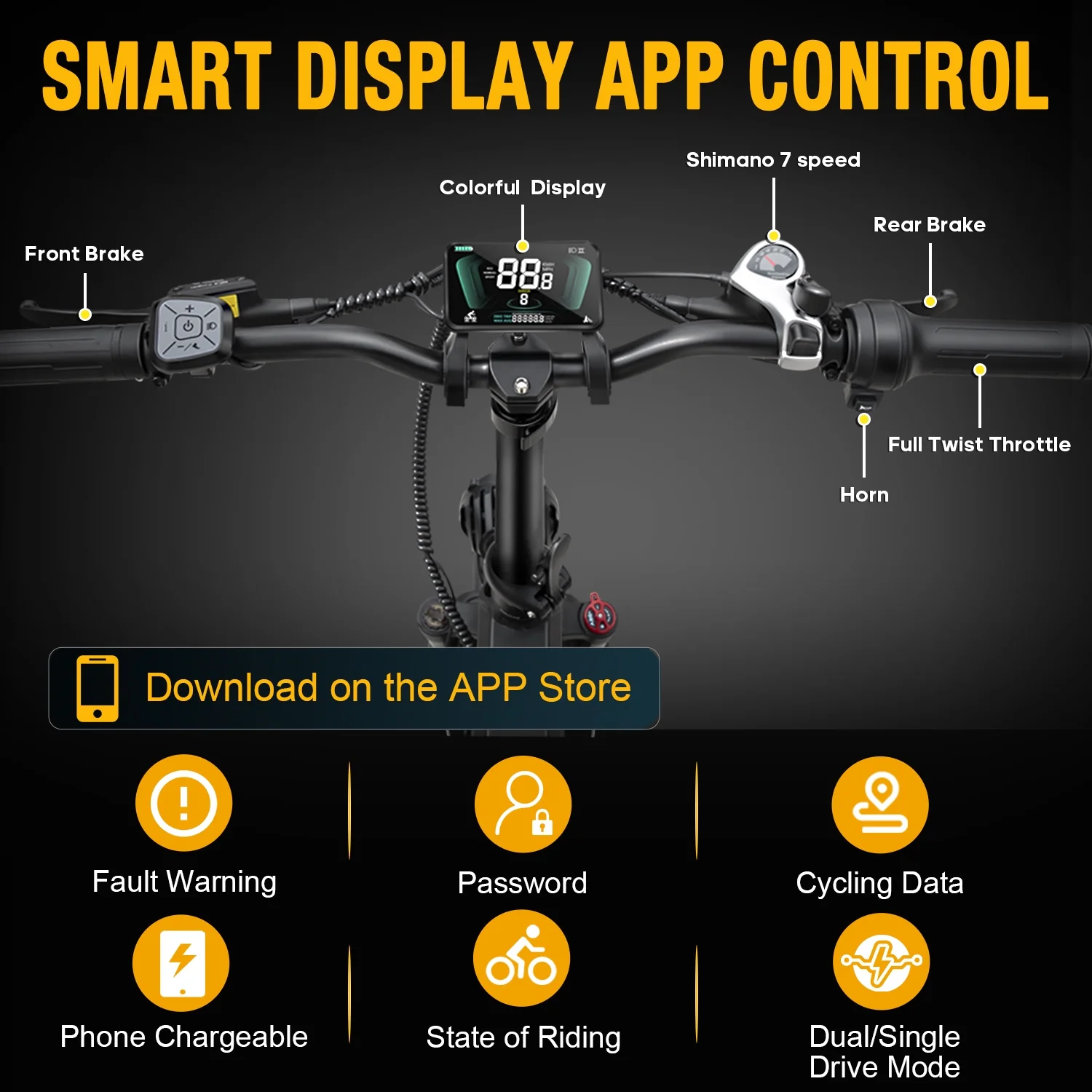 Additionally, the foldable design adds convenience, making it easier to transport and store. Equipped with a smart full-color display, this electric bike allows you to easily monitor essential information such as battery level, distance traveled, speed, and riding mode. Its mobile app compatibility enhances your riding experience with convenient and intelligent functionalities.
